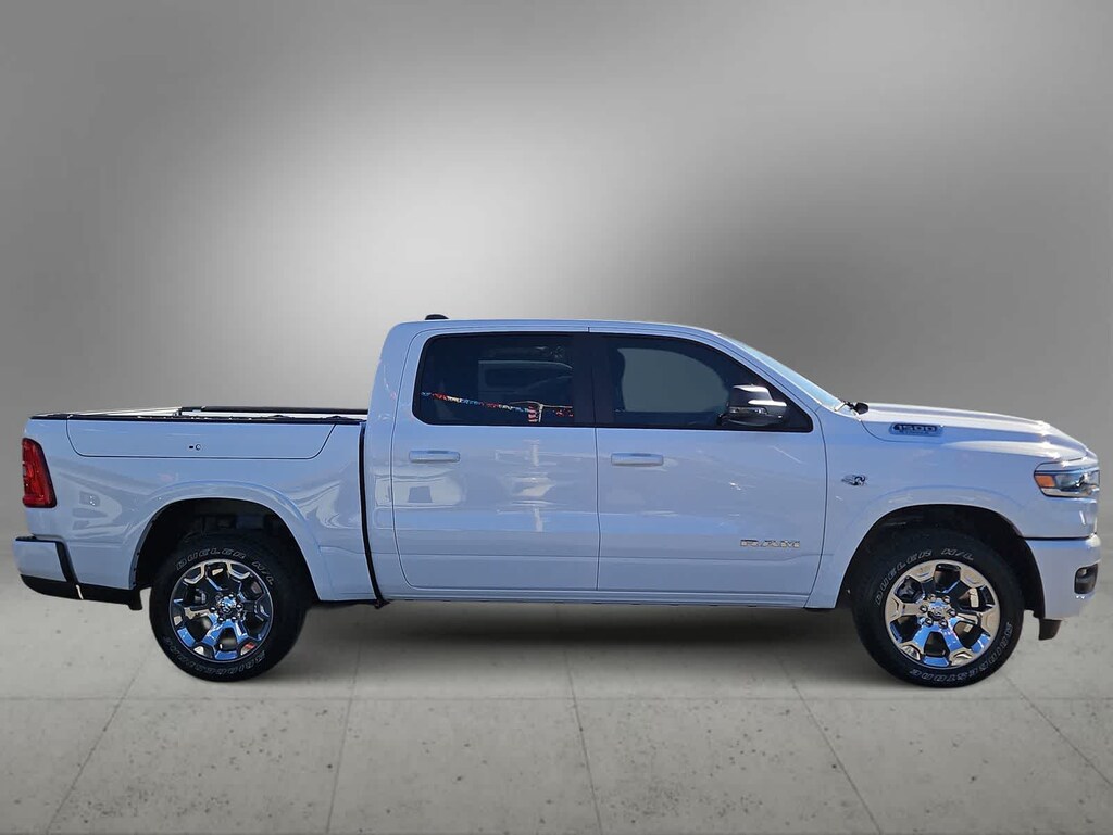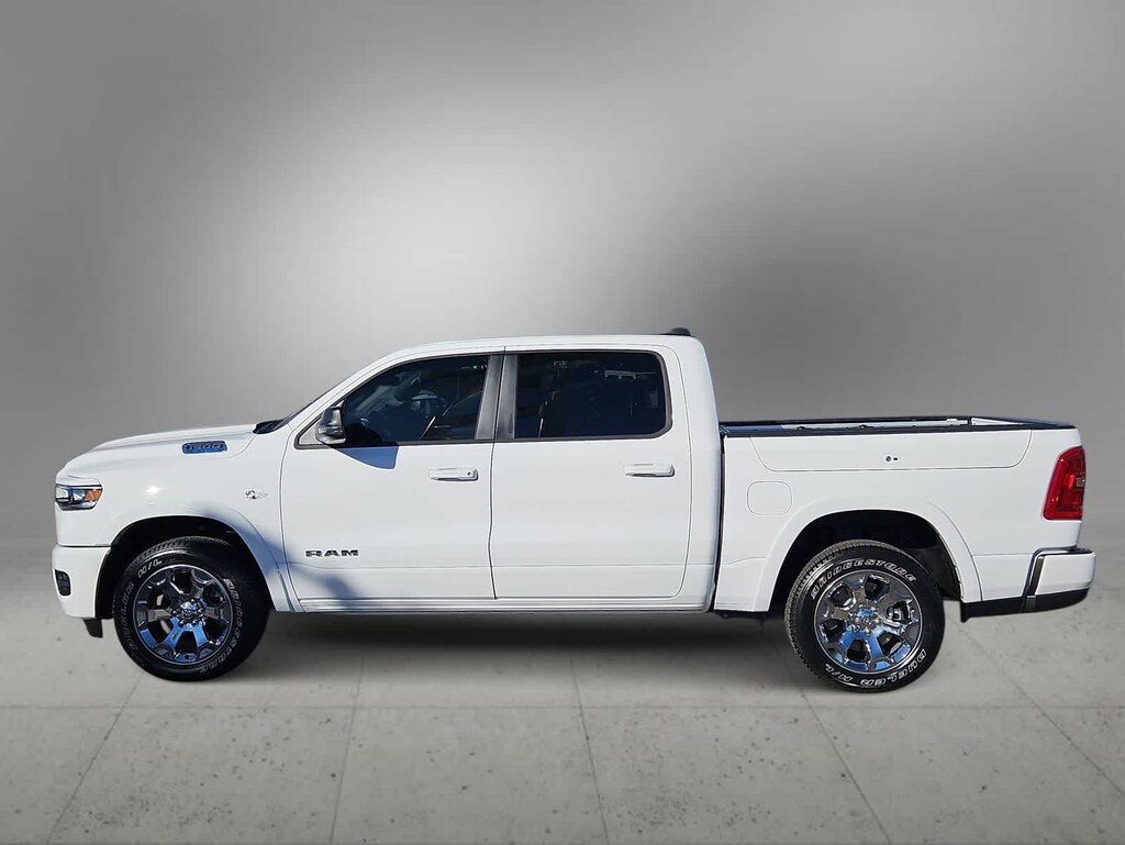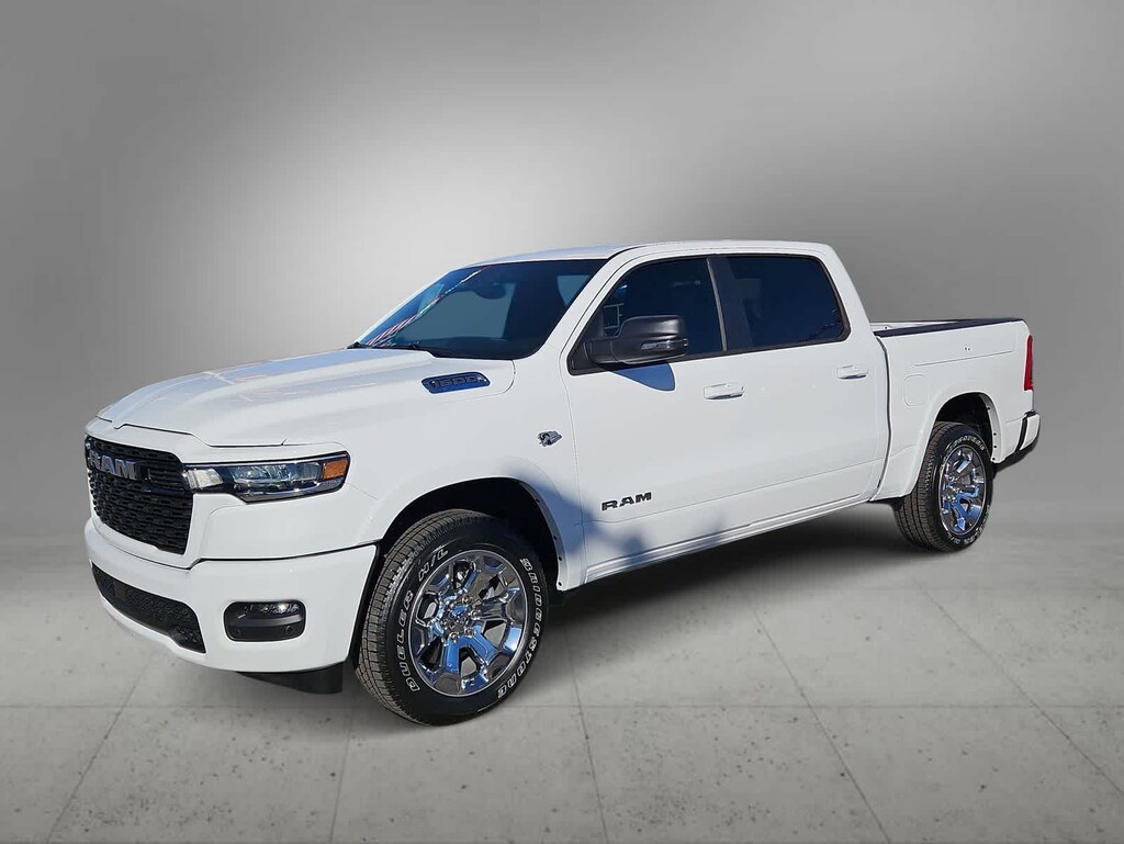 Smart and versatile, our 2026 RAM 1500 Big Horn Crew Cab 4X4 in Bright White combines advanced features with dependable everyday utility. Powered by a 5.7 Liter HEMI eTorque V8 with a 48V Mild-Hybrid system providing 395hp to an 8 Speed Automatic transmission for smart capability plus impressive towing. This Four Wheel Drive truck features responsive handling at work or play, and it sees nearly 22mpg on the highway with a rugged design. Our RAM 1500 stands strong and looks great with bright bumpers, chrome grille accents, and alloy wheels.