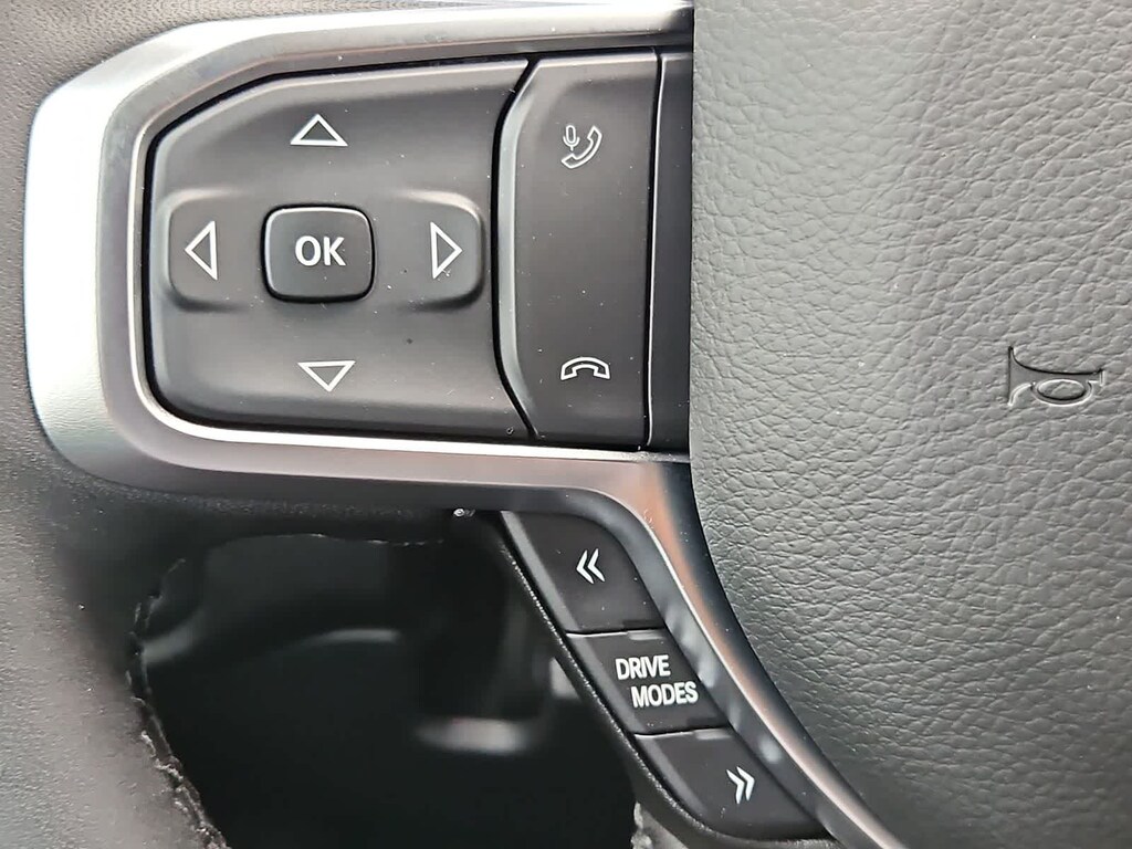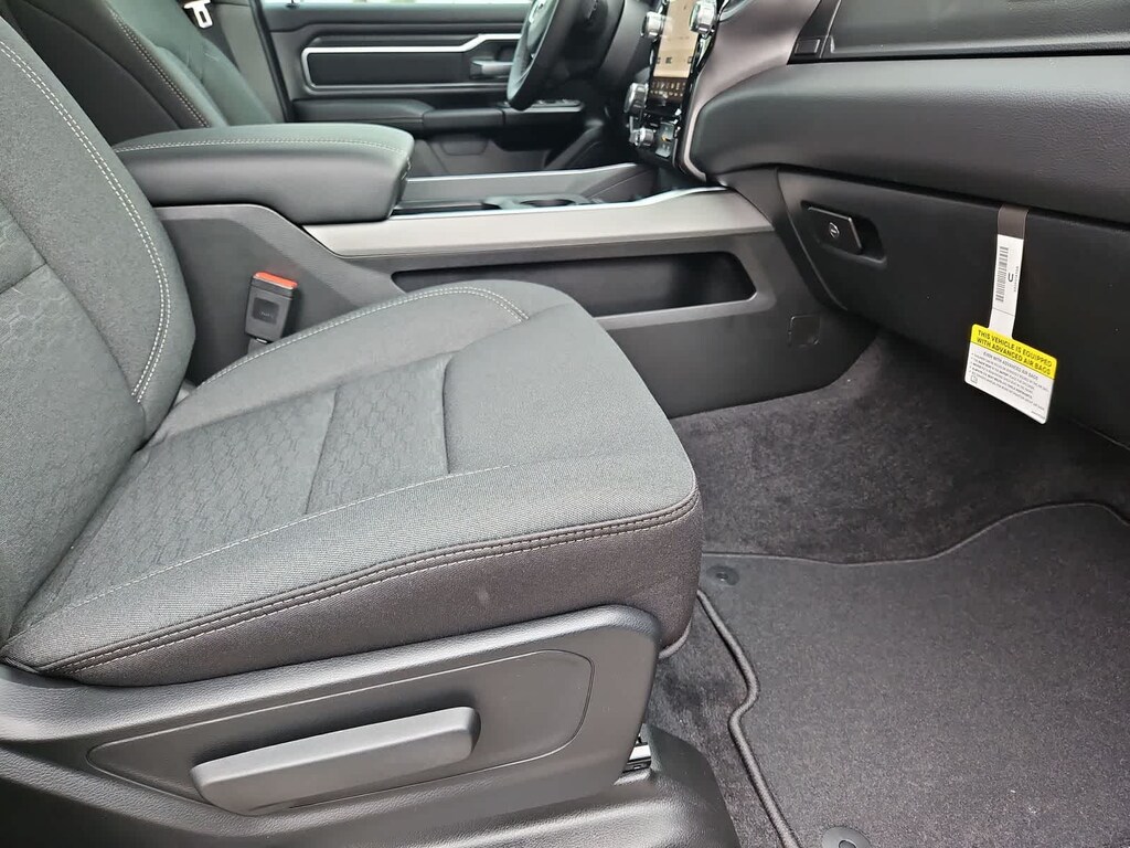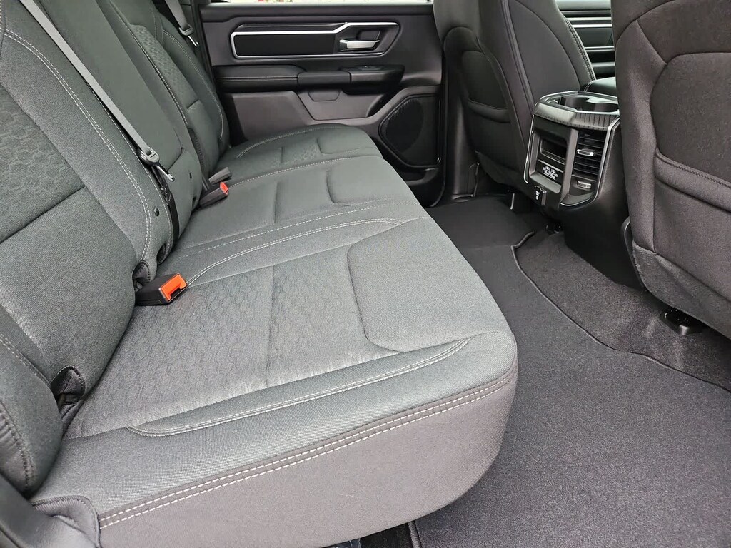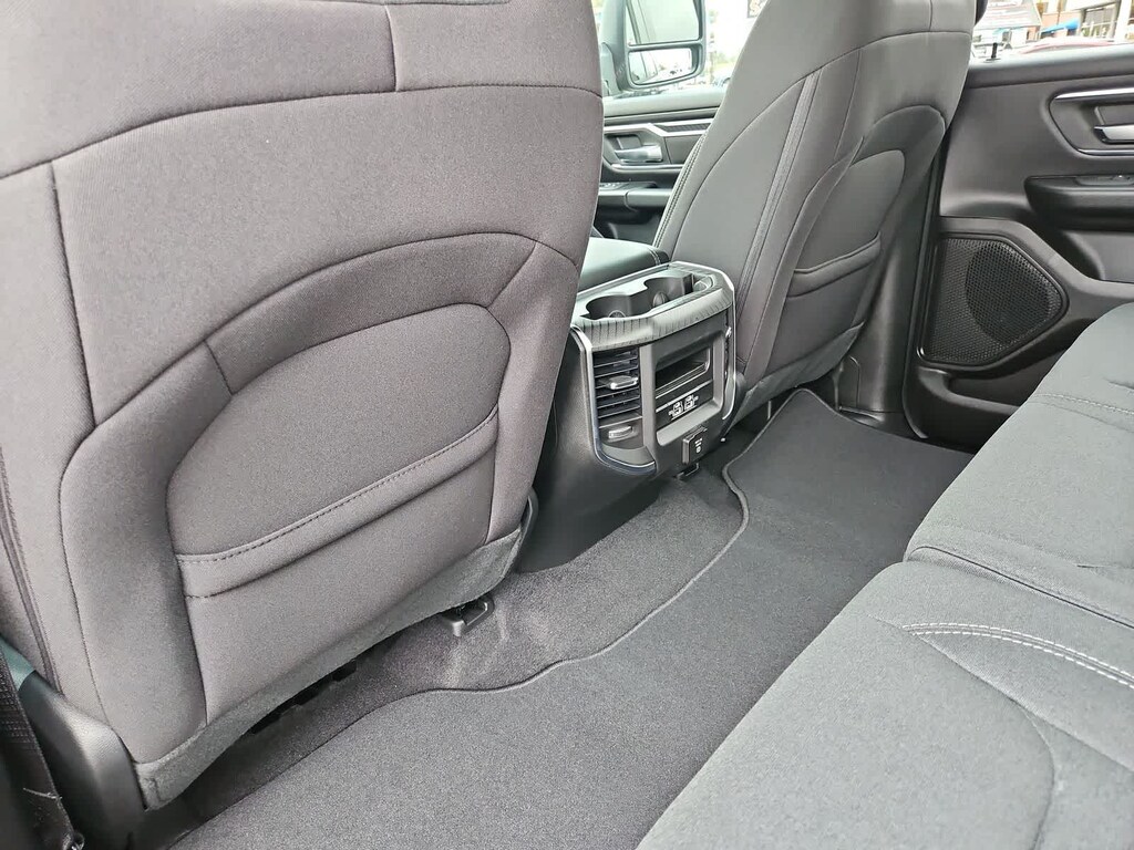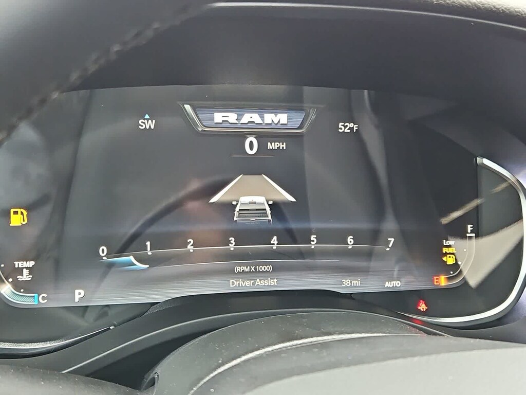 Our Big Horn cabin has been tailored to fit your needs, with the Level 2 Equipment Packages heated deluxe cloth seats, a heated leather-wrapped steering wheel, universal home remote, power adjustable pedals, power sliding rear window, dual climate control, a RAM Clean-Air System, keyless access, push-button ignition, cruise control, door-sill scuff plates, and clever cargo space, and a Uconnect 5 with 12.0-inch touchscreen features voice control, Bluetooth, and a nine-speaker sound system for intelligent infotainment.