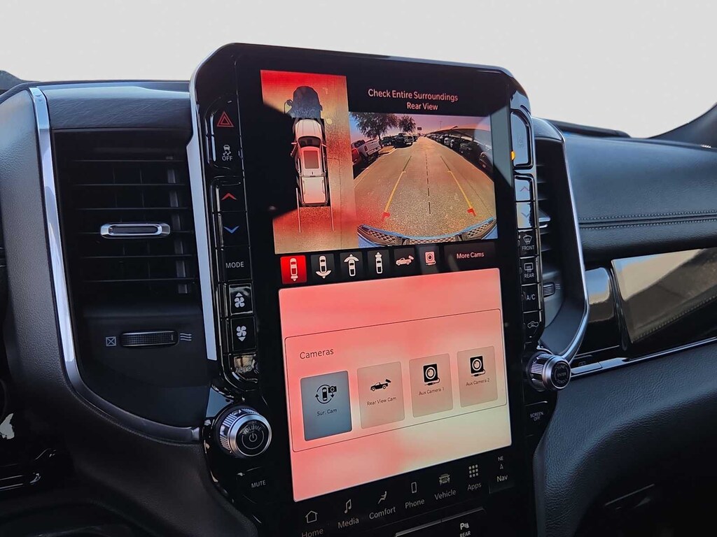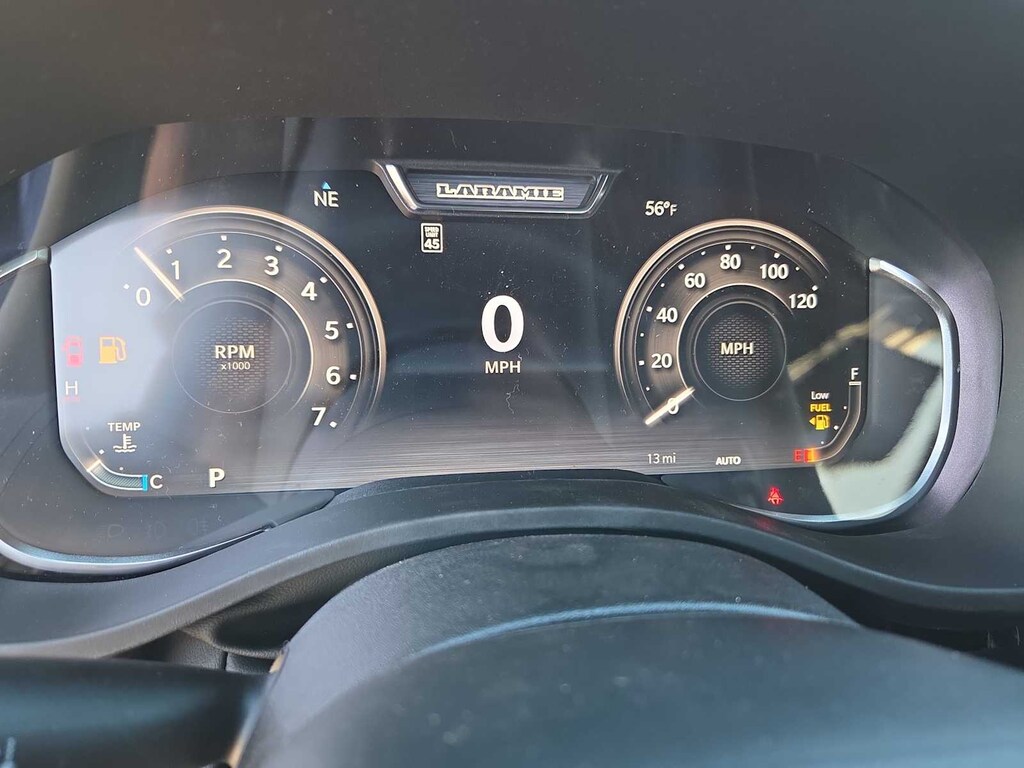 NIGHT EDITION Black Headlamp Bezels, Wheels: 22 x 9 Forged Aluminum, Tires: 285/45R22XL BSW All Season, Pirelli Brand Tires, Proximity Approach/Departure Lamps, Anti-Spin Differential Rear Axle, Accent Color Door Handles, Black Interior Accents, Body Color Front Bumper, Grille Surround 3 Black Texture 2 Black, Body Color Rear Bumper w/Step Pads, RAM Grille Badge - Black, Black Painted Exterior Mirrors Caps, Exterior Mirrors Approach Lamps, Accent Color Premium Power Mirrors, Sport Performance Hood, Black Exterior Truck Badging, Accent Color Tailgate Handle, Dual Exhaust w/Black Tips, Black Tail Lamp Bezels, ADVANCED SAFETY GROUP II Exterior Mirrors Approach Lamps, Active Driving Assist System, Surround View Camera System, Evasive Steer Assist, Drowsy Driver Detection, Intersection Collision Assist System, Traffic Sign Recognition, 12-Way/1-Way Trailer Connector, LARAMIE LEVEL 2 EQUIPMENT GROUP Rain Sensitive Windshield Wipers, 14.4 Touchscreen Display, Front Passenger Interactive Display, Radio: Uconnect 5 Nav w/14.4 Display, harman/kardon® 19 Speaker Premium Sound, Cluster 12 TFT Color Display, Power Tailgate, DUAL-PANE PANORAMIC SUNROOF LED Dome/Reading Lamp, Dome Dual LED Reading Lamp, ENGINE: 5.7L V8 HEMI MDS VVT ETORQUE 48V Belt Starter Generator, Heavy Duty Engine Cooling, Passive Tuned Mass Damper, Delete Alternator, Passive Cold End Exhaust, 18 Aluminum Spare Wheel, MOPAR FRONT & REAR RUBBER FLOOR MATS, TRANSMISSION: 8-SPEED AUTOMATIC (8HP75) (STD). Ram Laramie with Hydro Blue Pearlcoat exterior and Black interior features a 8 Cylinder Engine with 395 HP at 5600 RPM*.
