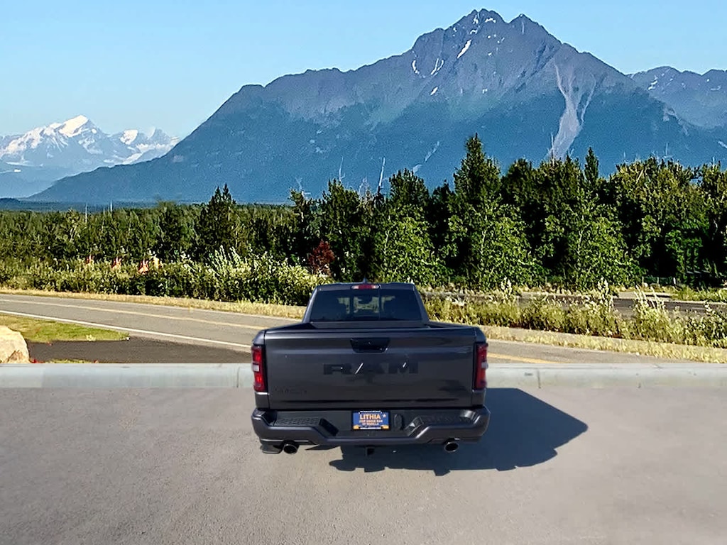 NIGHT EDITION Black Headlamp Bezels, Wheels: 22 x 9 Forged Aluminum, Tires: 285/45R22XL BSW All Season, Pirelli Brand Tires, Proximity Approach/Departure Lamps, Anti-Spin Differential Rear Axle, Accent Color Door Handles, Black Interior Accents, Body Color Front Bumper, Grille Surround 3 Black Texture 2 Black, Body Color Rear Bumper w/Step Pads, RAM Grille Badge - Black, Black Painted Exterior Mirrors Caps, Exterior Mirrors Approach Lamps, Accent Color Premium Power Mirrors, Sport Performance Hood, Black Exterior Truck Badging, Accent Color Tailgate Handle, Dual Exhaust w/Black Tips, Black Tail Lamp Bezels, LARAMIE LEVEL 2 EQUIPMENT GROUP Rain Sensitive Windshield Wipers, 14.4 Touchscreen Display, Front Passenger Interactive Display, Radio: Uconnect 5 Nav w/14.4 Display, harman/kardon® 19 Speaker Premium Sound, Cluster 12 TFT Color Display, Power Tailgate, DUAL-PANE PANORAMIC SUNROOF LED Dome/Reading Lamp, Dome Dual LED Reading Lamp, ENGINE: 5.7L V8 HEMI MDS VVT ETORQUE 48V Belt Starter Generator, Heavy Duty Engine Cooling, Passive Tuned Mass Damper, Delete Alternator, Passive Cold End Exhaust, 18 Aluminum Spare Wheel, BED UTILITY GROUP MOPAR Spray In Bedliner, MOPAR 4 Adjustable Cargo Tie-Down Hooks, Exterior 115V AC Outlet, TRANSMISSION: 8-SPEED AUTOMATIC (8HP75) (STD). Ram Laramie with Granite Crystal Metallic Clearcoat exterior and Black interior features a 8 Cylinder Engine with 395 HP at 5600 RPM*.