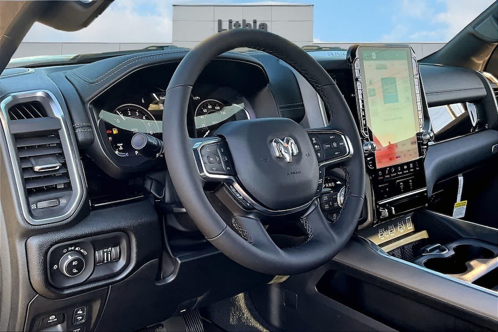 ADVANCED SAFETY GROUP II Exterior Mirrors Approach Lamps, Active Driving Assist System, Surround View Camera System, Evasive Steer Assist, Drowsy Driver Detection, Intersection Collision Assist System, Traffic Sign Recognition, 12-Way/1-Way Trailer Connector, LARAMIE LEVEL 2 EQUIPMENT GROUP Rain Sensitive Windshield Wipers, Front Passenger Interactive Display, Secondary Active Grille Shutters, Smartphone As A Key Capable, 14.4 Touchscreen Display, Dual Wireless Charging Pad, Radio: Uconnect 5 Nav w/14.4 Display, harman/kardon® 19 Speaker Premium Sound, Cluster 12 TFT Color Display, Power Tailgate, DUAL-PANE PANORAMIC SUNROOF LED Dome/Reading Lamp, Dome Dual LED Reading Lamp, BED UTILITY GROUP MOPAR Spray In Bedliner, MOPAR 4 Adjustable Cargo Tie-Down Hooks, Exterior 115V AC Outlet, MOPAR FRONT & REAR RUBBER FLOOR MATS, TRANSMISSION: 8-SPEED AUTOMATIC (8HP75) (STD), ANTI-SPIN DIFFERENTIAL REAR AXLE. Ram Laramie with Diamond Black Crystal Pearlcoat exterior and Black interior features a Straight 6 Cylinder Engine with 420 HP at 5200 RPM*.