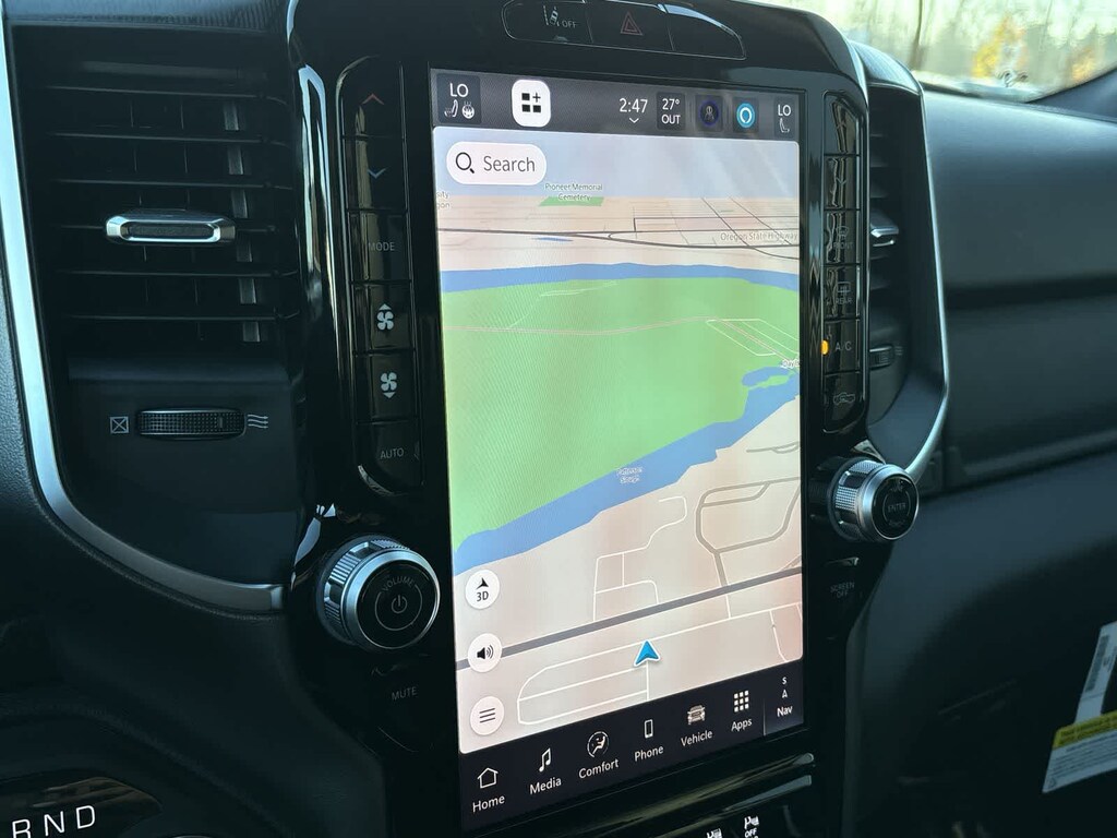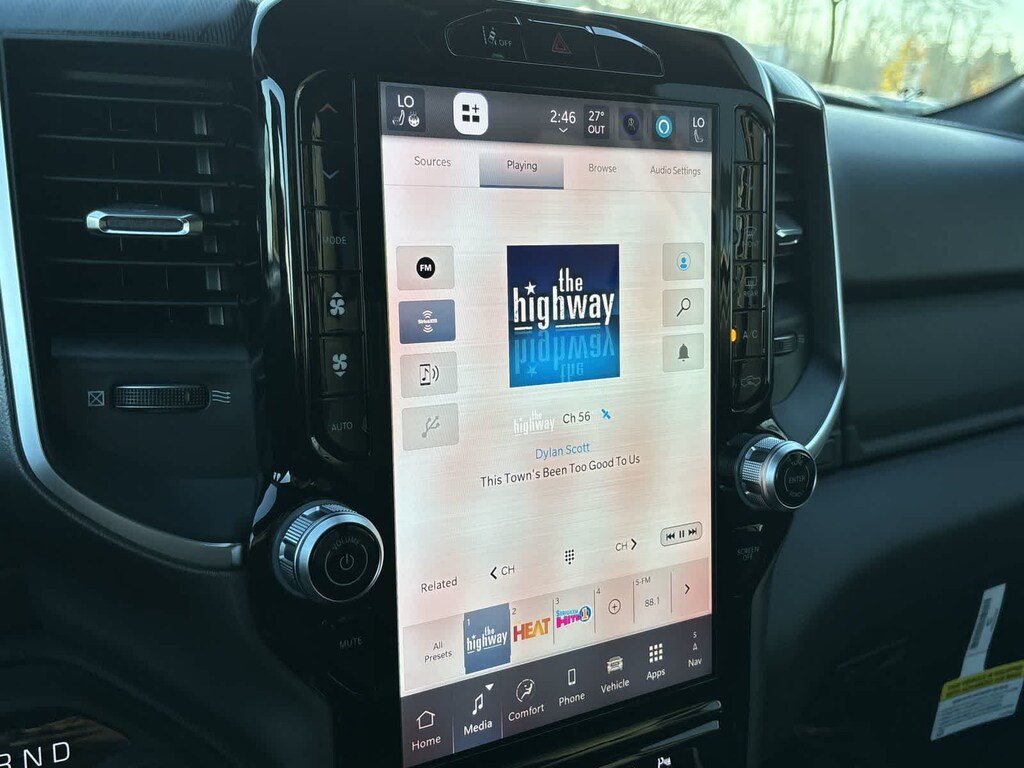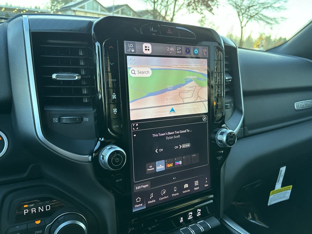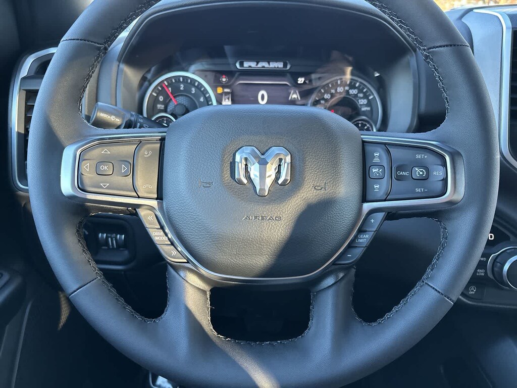 ENGINE: 5.7L V8 HEMI MDS VVT ETORQUE Active Noise Control System, Heavy Duty Engine Cooling, Passive Tuned Mass Damper, GVWR: 7,100 lbs, Dual Rear Exhaust w/Bright Tips, G/T Exhaust, 18 Aluminum Spare Wheel, BIG HORN LEVEL 2 EQUIPMENT GROUP SiriusXM Radio Service, Power Adjustable Pedals, Leather Wrapped Steering Wheel, 12 Touchscreen Display, Glove Box Lamp, Auto Power-Folding Mirrors, 115V Auxiliary Rear Power Outlet, Media Hub w/2 Charge Only USBs, Heated Front Seats, Security Alarm, Black Premium Power Mirrors, Premium Overhead Console, 9 Amplified Speakers w/Subwoofer, Disassociated Touchscreen Display, Body Color Fender Flares, Remote Tailgate Release, 115V Auxiliary Power Outlet, LED Dome Lamp w/On/Off Switch, Universal Garage Door Opener, 2nd Row In Floor Storage Bins, Sun Visors w/Illuminated Vanity Mirrors, LED Footwell Lighting, Rear Window Defroster, Rear View Auto Dim Mirror, Rear Power Sliding Window, GPS Navigation, Overhead LED Lamps, Wheels: 20 x 9 Aluminum Chrome Clad, NIGHT EDITION Tires: 275/55R20 OWL All Season, Bridgestone Brand Tires, Accent Color Premium Power Mirrors, Exterior Mirrors w/Supplemental Signals, Black Headlamp Bezels, Exterior Mirrors Courtesy Lamps, Grille Black Surround Black Mesh, Auto Power-Folding Mirrors, Wheels: 20 x 9.0 Aluminum Painted Clad, Auto Dim Exterior Driver Mirror, Black Exterior Truck Badging, Anti-Spin Differential Rear Axle, Accent Color Door Handles, Accent Color Tailgate Handle, Black Interior Accents, Dual Exhaust w/Black Tips, Body Color Front Bumper, Body Color Rear Bumper w/Step Pads, Black Tail Lamp Bezels, RAM Grille Badge - Black, Black Painted Exterior Mirrors Caps, PROTECTION GROUP Transfer Case Skid Plate, Steering Gear Skid Plate, Fuel Tank Skid Plate, Tow Hooks, MOPAR FRONT & REAR RUBBER FLOOR MATS, TRANSMISSION: 8-SPEED AUTOMATIC (8HP75). Ram Big Horn with Granite Crystal Metallic Clearcoat exterior and Black interior features a 8 Cylinder Engine with 395 HP at 5600 RPM*.
