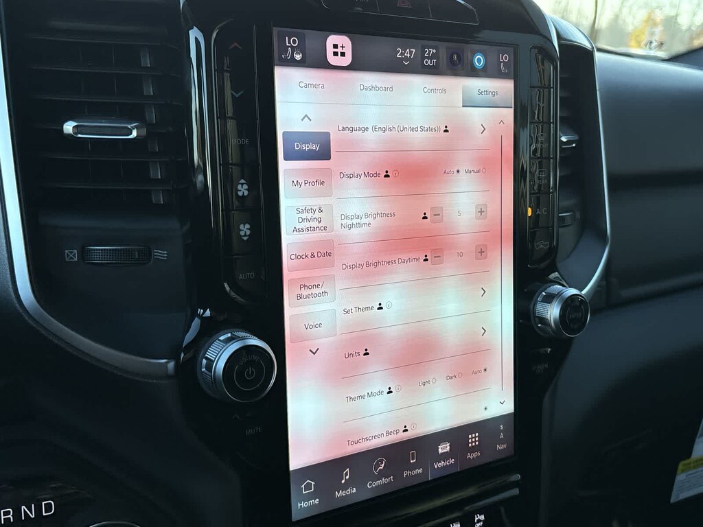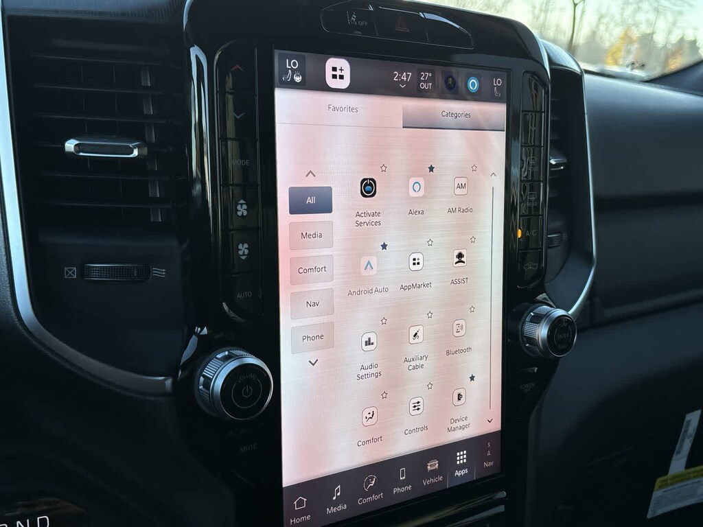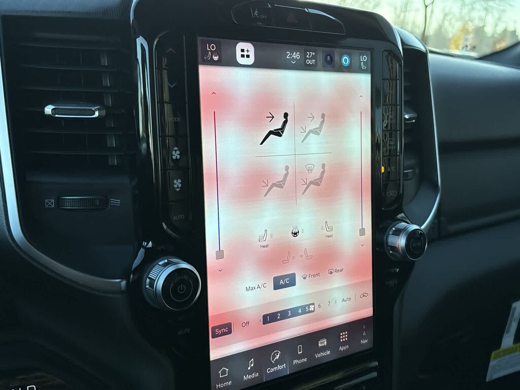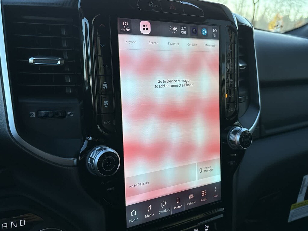 ENGINE: 5.7L V8 HEMI MDS VVT ETORQUE Active Noise Control System, Heavy Duty Engine Cooling, Passive Tuned Mass Damper, GVWR: 7,100 lbs, Dual Rear Exhaust w/Bright Tips, G/T Exhaust, 18 Aluminum Spare Wheel, BIG HORN LEVEL 2 EQUIPMENT GROUP SiriusXM Radio Service, Power Adjustable Pedals, Leather Wrapped Steering Wheel, 12 Touchscreen Display, Glove Box Lamp, Auto Power-Folding Mirrors, 115V Auxiliary Rear Power Outlet, Media Hub w/2 Charge Only USBs, Heated Front Seats, Security Alarm, Black Premium Power Mirrors, Premium Overhead Console, 9 Amplified Speakers w/Subwoofer, Disassociated Touchscreen Display, Body Color Fender Flares, Remote Tailgate Release, 115V Auxiliary Power Outlet, LED Dome Lamp w/On/Off Switch, Universal Garage Door Opener, 2nd Row In Floor Storage Bins, Sun Visors w/Illuminated Vanity Mirrors, LED Footwell Lighting, Rear Window Defroster, Rear View Auto Dim Mirror, Rear Power Sliding Window, GPS Navigation, Overhead LED Lamps, Wheels: 20 x 9 Aluminum Chrome Clad, NIGHT EDITION Tires: 275/55R20 OWL All Season, Bridgestone Brand Tires, Accent Color Premium Power Mirrors, Exterior Mirrors w/Supplemental Signals, Black Headlamp Bezels, Exterior Mirrors Courtesy Lamps, Grille Black Surround Black Mesh, Auto Power-Folding Mirrors, Wheels: 20 x 9.0 Aluminum Painted Clad, Auto Dim Exterior Driver Mirror, Black Exterior Truck Badging, Anti-Spin Differential Rear Axle, Accent Color Door Handles, Accent Color Tailgate Handle, Black Interior Accents, Dual Exhaust w/Black Tips, Body Color Front Bumper, Body Color Rear Bumper w/Step Pads, Black Tail Lamp Bezels, RAM Grille Badge - Black, Black Painted Exterior Mirrors Caps, PROTECTION GROUP Transfer Case Skid Plate, Steering Gear Skid Plate, Fuel Tank Skid Plate, Tow Hooks, MOPAR FRONT & REAR RUBBER FLOOR MATS, TRANSMISSION: 8-SPEED AUTOMATIC (8HP75). Ram Big Horn with Granite Crystal Metallic Clearcoat exterior and Black interior features a 8 Cylinder Engine with 395 HP at 5600 RPM*.