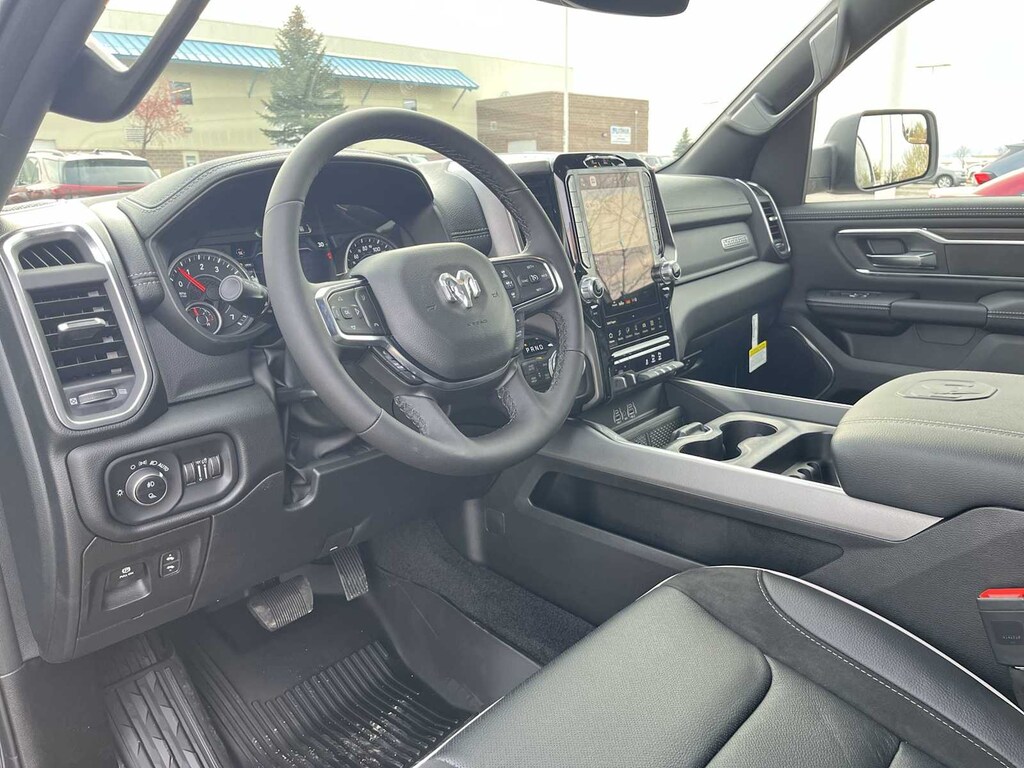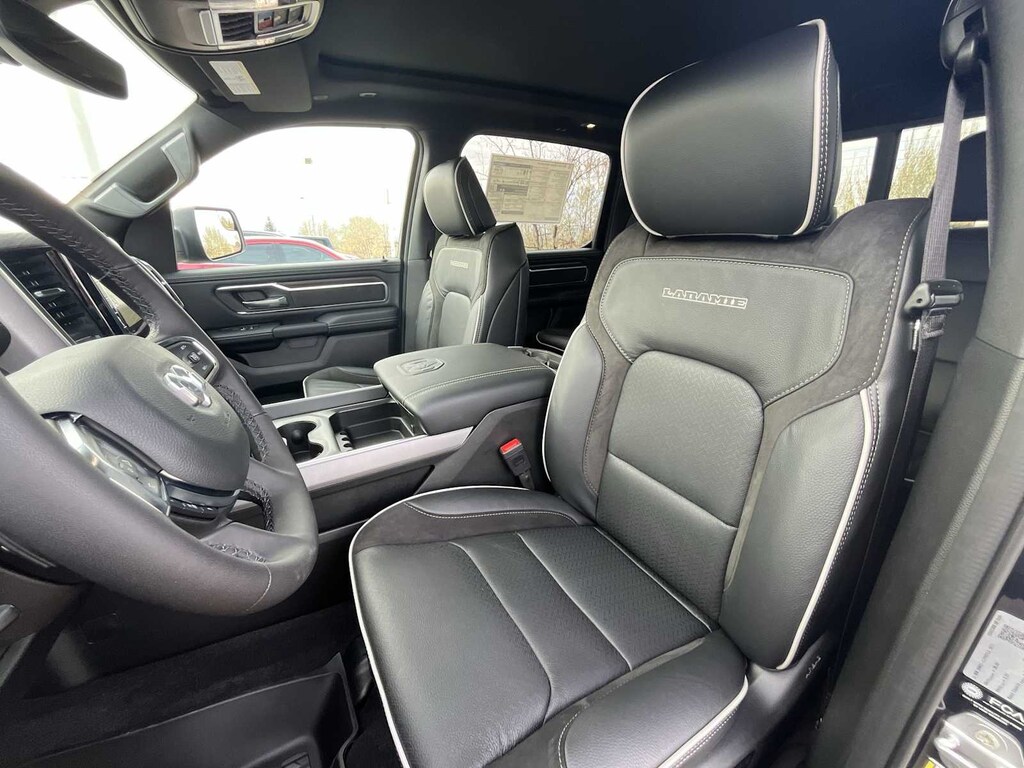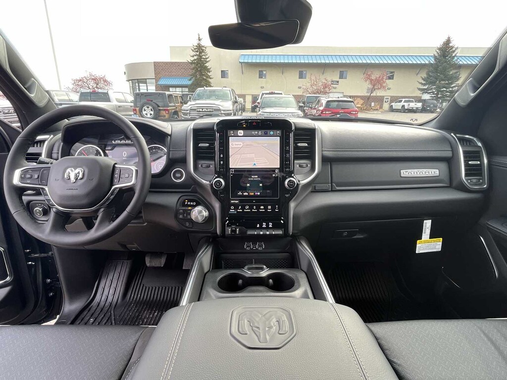 LARAMIE PREFERRED PACKAGE Accent Color Premium Power Mirrors, Power Deployable Running Boards, Grille Surround 3 Body Color Tex 4 Chrome, Trailer Brake Control, Tow Hooks, Body Color Front Bumper, Dual-Pane Panoramic Sunroof, LED Dome/Reading Lamp, Dome Dual LED Reading Lamp, Body Color Rear Bumper w/Step Pads, Black Painted Exterior Mirrors Caps, ENGINE: 5.7L V8 HEMI MDS VVT ETORQUE 48V Belt Starter Generator, Heavy Duty Engine Cooling, Passive Tuned Mass Damper, Delete Alternator, Passive Cold End Exhaust, 18 Aluminum Spare Wheel, ANTI-SPIN DIFFERENTIAL REAR AXLE, LARAMIE LEVEL 1 EQUIPMENT GROUP Remote Tailgate Release, Rain Sensitive Windshield Wipers, MOPAR FRONT & REAR RUBBER FLOOR MATS, TRANSMISSION: 8-SPEED AUTOMATIC (8HP75) (STD). Ram Laramie with Forged Blue Metallic exterior and Black interior features a 8 Cylinder Engine with 395 HP at 5600 RPM*.