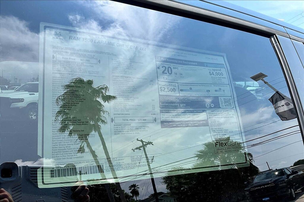 Forged Blue Metallic 2026 Ram 1500 Laramie 4WD 8-Speed Automatic 3.0L I6 FRESH OIL CHANGE, 10 Speakers, 4-Wheel Disc Brakes, 4G LTE Wi-Fi Hot Spot, ABS brakes, Accent Color Premium Power Mirrors, Active Noise Control System, Air Conditioning, Alloy wheels, AM/FM radio: SiriusXM with 360L, Apple CarPlay/Android Auto, Audio memory, Auto High-beam Headlights, Auto Power-Folding Mirrors, Auto-dimming door mirrors, Auto-Dimming Exterior Driver Mirror, Auto-dimming Rear-View mirror, Automatic temperature control, Black Painted Exterior Mirrors Caps, Body Color Front Bumper, Body Color Rear Bumper with Step Pads, Brake assist, Bumpers: chrome, Chrome Exterior Mirrors, Compass, Connected Travel and Traffic Services, Connectivity - US/Canada, Convex Wide-Angle Exterior Mirror Insert, Delay-off headlights, Dome Dual LED Reading Lamp, Driver door bin, Driver vanity mirror, Dual front impact airbags, Dual front side impact airbags, Dual-Pane Panoramic Sunroof, Electronic Stability Control, Exterior 115V AC Outlet, Exterior Mirrors Courtesy Lamps, Exterior Mirrors with Heating Element, Exterior Mirrors with Memory, Exterior Mirrors with Supplemental Signals, Front anti-roll bar, Front Bucket Seats, Front Center Armrest w/Storage, Front dual zone A/C, Front fog lights, Front License Plate Bracket, Front reading lights, Front wheel independent suspension, Fully automatic headlights, Garage door transmitter, GPS Navigation, Grille Surround 3 Body Color Tex 4 Chrome, Heated door mirrors, Heated front seats, Heated rear seats, Heated steering wheel, Illuminated entry, Integrated Center Stack Radio, Integrated Voice Command with Bluetooth, Laramie Level 1 Equipment Group, Laramie Southwest Edition, Leather steering wheel, Leather Trimmed Bucket Seats, LED Dome/Reading Lamp, Low tire pressure warning, Manufacturers Statement of Origin, Memory seat, MOPAR Front and Rear Rubber Floor Mats, MOPAR Lockable Console Storage, Navigation System, Occupant sensing airbag, Off-Road Information Pages, Outside temperature display, Overhead airbag, Overhead console, Panic alarm, ParkView Rear Back-Up Camera, Passenger door bin, Passenger vanity mirror, Power Deployable Running Boards, Power door mirrors, Power driver seat, Power passenger seat, Power steering, Power windows, Quick Order Package 21H Laramie, Radio data system, Radio: Uconnect 5 Navigation with 12.0 Display, Rain Sensitive Windshield Wipers, RAM Grille Badge - Chrome, RamBox Cargo Management System, Rear anti-roll bar, Rear reading lights, Rear seat center armrest, Rear step bumper, Remote keyless entry, Remote Tailgate Release, Security system, SiriusXM Radio Service, SiriusXM with 360L, Speed control, Split folding rear seat, Steering wheel mounted audio controls, Tachometer, Telescoping steering wheel, Tilt steering wheel, Tow Hooks, Traction control, Trailer Brake Control, Trip computer, Turn signal indicator mirrors, USB Host Flip, Variably intermittent wipers, Ventilated front seats, Voltmeter, Wheels: 20 x 9 Premium Paint/Polish. Price includes: $1000 - 2026 Southwest BC SFS Retail Bonus Cash . Exp. 02/02/2026 $3500 - 2026 National Retail Consumer Cash . Exp. 02/02/2026