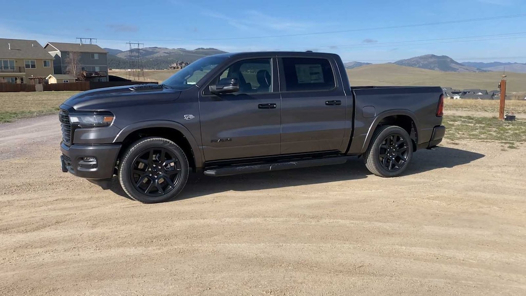 NIGHT EDITION Black Headlamp Bezels, Wheels: 22 x 9 Forged Aluminum, Tires: 285/45R22XL BSW All Season, Pirelli Brand Tires, Proximity Approach/Departure Lamps, Anti-Spin Differential Rear Axle, Accent Color Door Handles, Black Interior Accents, Body Color Front Bumper, Grille Surround 3 Black Texture 2 Black, Body Color Rear Bumper w/Step Pads, RAM Grille Badge - Black, Black Painted Exterior Mirrors Caps, Exterior Mirrors Approach Lamps, Accent Color Premium Power Mirrors, Sport Performance Hood, Black Exterior Truck Badging, Accent Color Tailgate Handle, Dual Exhaust w/Black Tips, Black Tail Lamp Bezels, ENGINE: 5.7L V8 HEMI MDS VVT ETORQUE 48V Belt Starter Generator, Heavy Duty Engine Cooling, Passive Tuned Mass Damper, Delete Alternator, Passive Cold End Exhaust, 18 Aluminum Spare Wheel, BED UTILITY GROUP MOPAR Spray In Bedliner, MOPAR 4 Adjustable Cargo Tie-Down Hooks, Exterior 115V AC Outlet, MOPAR BLACK TUBULAR SIDE STEPS, LARAMIE LEVEL 1 EQUIPMENT GROUP Remote Tailgate Release, Rain Sensitive Windshield Wipers, MOPAR FRONT & REAR RUBBER FLOOR MATS, TRANSMISSION: 8-SPEED AUTOMATIC (8HP75) (STD). Ram Laramie with Granite Crystal Metallic Clearcoat exterior and Black interior features a 8 Cylinder Engine with 395 HP at 5600 RPM*.