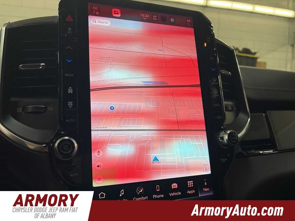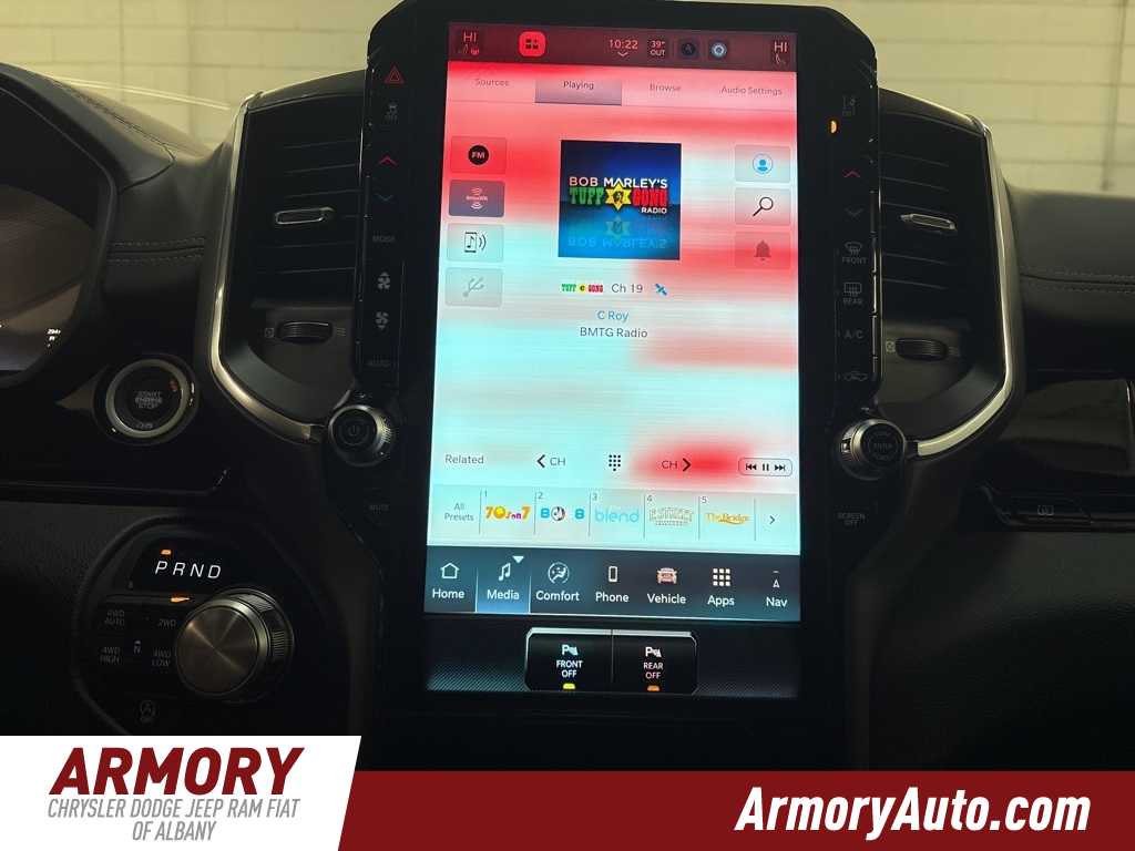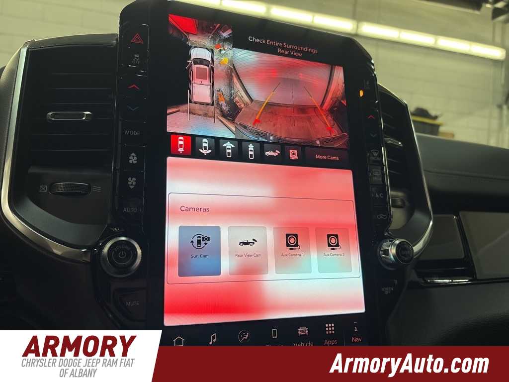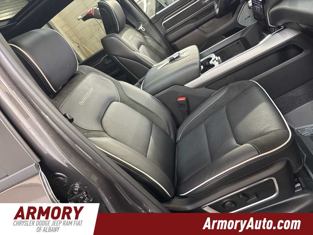 1500 Laramie is nicely equipped with Advanced Safety Group II (12-Way/1-Way Trailer Connector, Active Driving Assist System, Drowsy Driver Detection, Evasive Steer Assist, Exterior Mirrors Approach Lamps, Intersection Collision Assist System, Surround View Camera System, and Traffic Sign Recognition), Bed Utility Group (Exterior 115V AC Outlet, MOPAR 4 Adjustable Cargo Tie-Down Hooks, and MOPAR Spray in Bedliner), Laramie Level 2 Equipment Group (14.4 Touchscreen Display, 4G LTE Wi-Fi Hot Spot, Cluster 12 TFT Color Display, Connected Travel and Traffic Services, Connectivity - US/Canada, Front Passenger Interactive Display, GPS Navigation, Harman/Kardon 19 Speaker Premium Sound, Integrated Center Stack Radio, Integrated Voice Command with Bluetooth, Power Tailgate, Radio: Uconnect 5 Nav with 14.4 Display, Rain Sensitive Windshield Wipers, SiriusXM Radio Service, SiriusXM with 360L, and USB Host Flip), Night Edition (Accent Color Door Handles, Accent Color Premium Power Mirrors, Accent Color Tailgate Handle, Anti-Spin Differential Rear Axle, Auto Power-Folding Mirrors, Auto-Dimming Exterior Driver Mirror, Black Exterior Truck Badging, Black Headlamp Bezels, Black Interior Accents, Black Painted Exterior Mirrors Caps, Black Tail Lamp Bezels, Body Color Front Bumper, Body Color Rear Bumper with Step Pads, Convex Wide-Angle Exterior Mirror Insert, Dual Exhaust with Black Tips, Exterior Mirrors Courtesy Lamps, Exterior Mirrors with Heating Element, Exterior Mirrors with Memory, Exterior Mirrors with Supplemental Signals, Grille Surround 3 Black Texture 2 Black, Pirelli Brand Tires, Proximity Approach/Departure Lamps, RAM Grille Badge - Black, Sport Performance Hood, and Wheels: 22 x 9 Forged Aluminum), Quick Order Package 21H Laramie, Technology Group (Heads-Up Display and LED CHMSL Lamp), 10 Speakers, 3.55 Rear Axle Ratio, 4-Wheel Disc Brakes, ABS brakes, Active Noise Control System, Adjustable pedals, Air Conditioning, Alloy wheels, AM/FM radio: SiriusXM with 360L, Apple CarPlay/Android Auto, Audio memory, Auto High-beam Headlights, Auto-dimming door mirrors, Auto-dimming Rear-View mirror, Automatic temperature control, Brake assist, Bumpers: chrome, Chrome Exterior Mirrors, Compass, Delay-off headlights, Dome Dual LED Reading Lamp, Driver door bin, Driver vanity mirror, Dual front impact airbags, Dual front side impact airbags, Dual-Pane Panoramic Sunroof, Electronic Stability Control, Front anti-roll bar, Front Bucket Seats, Front Center Armrest w/Storage, Front dual zone A/C, Front fog lights, Front License Plate Bracket, Front reading lights, Front wheel independent suspension, Fully automatic headlights, Garage door transmitter, Heated door mirrors, Heated front seats, Heated rear seats, Heated steering wheel, Illuminated entry, Leather steering wheel, Leather Trimmed Bucket Seats, LED Dome/Reading Lamp, Low tire pressure warning, Manufacturers Statement of Origin, Memory seat, MOPAR Front and Rear Rubber Floor Mats, Navigation System, Occupant sensing airbag, Off-Road Information Pages, Outside temperature display, Overhead airbag, Overhead console, Panic alarm, ParkView Rear Back-Up Camera, Passenger door bin, Passenger vanity mirror, Pedal memory, Power Deployable Running Boards, Power door mirrors, Power driver seat, Power passenger seat, Power steering, Power windows, Radio data system, Radio: Uconnect 5 Navigation with 12.0 Display, RAM Grille Badge - Chrome, Rear anti-roll bar, Rear reading lights, Rear seat center armrest, Rear step bumper, Remote keyless entry, Security system, Speed control, Split folding rear seat, Steering wheel mounted audio controls, Tachometer, Telescoping steering wheel, Tilt steering wheel, Traction control, Trip computer, Turn signal indicator mirrors, Variably Price includes: $1000 - 2026 National Bonus Cash . Exp. 03/02/2026 $2000 - 2026 National Select Inventory Bonus Cash. Exp. 03/0