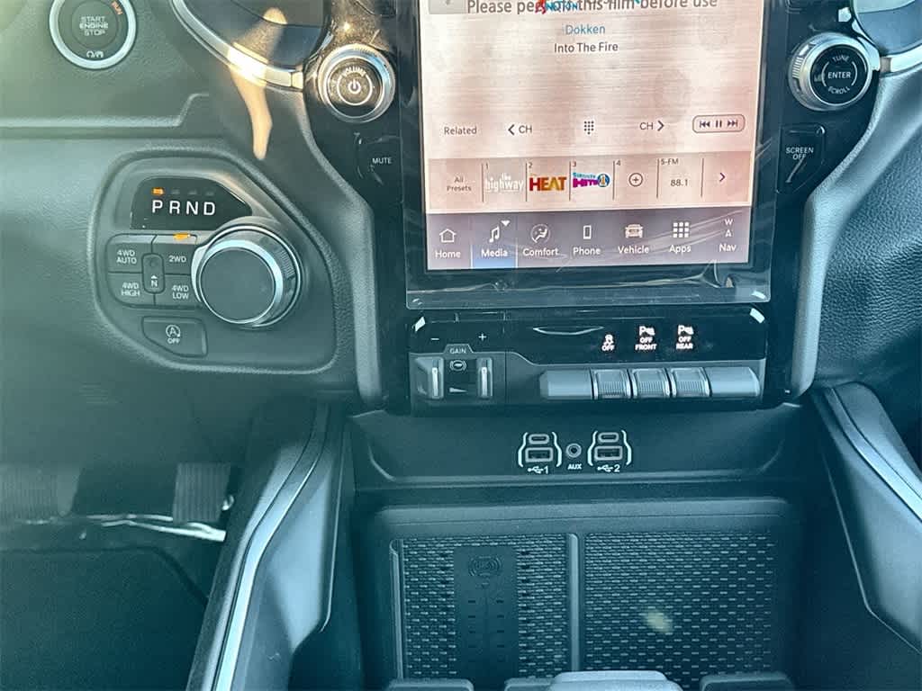 BIG HORN LEVEL 2 EQUIPMENT GROUP SiriusXM Radio Service, Power Adjustable Pedals, Leather Wrapped Steering Wheel, 12 Touchscreen Display, Glove Box Lamp, Auto Power-Folding Mirrors, 115V Auxiliary Rear Power Outlet, Media Hub w/2 Charge Only USBs, Heated Front Seats, Security Alarm, Black Premium Power Mirrors, Premium Overhead Console, 9 Amplified Speakers w/Subwoofer, Disassociated Touchscreen Display, Body Color Fender Flares, Remote Tailgate Release, 115V Auxiliary Power Outlet, LED Dome Lamp w/On/Off Switch, Universal Garage Door Opener, 2nd Row In Floor Storage Bins, Sun Visors w/Illuminated Vanity Mirrors, LED Footwell Lighting, Rear Window Defroster, Rear View Auto Dim Mirror, Rear Power Sliding Window, GPS Navigation, Overhead LED Lamps, Wheels: 20 x 9 Aluminum Chrome Clad, ENGINE: 3.0L I6 HURRICANE SO TWIN TURBO ESS Aux Battery, 700 Amp Maintenance Free Battery, Active Noise Control System, GVWR: 7,100 lbs, 3.55 Rear Axle Ratio, Dual Rear Exhaust w/Bright Tips, Start-Stop Dual Battery System, 230 Amp Alternator, NIGHT EDITION Tires: 275/55R20 OWL All Season, Bridgestone Brand Tires, Accent Color Premium Power Mirrors, Exterior Mirrors w/Supplemental Signals, Black Headlamp Bezels, Exterior Mirrors Courtesy Lamps, Grille Black Surround Black Mesh, Auto Power-Folding Mirrors, Wheels: 20 x 9.0 Aluminum Painted Clad, Auto Dim Exterior Driver Mirror, Black Exterior Truck Badging, Anti-Spin Differential Rear Axle, Accent Color Door Handles, Accent Color Tailgate Handle, Black Interior Accents, Dual Exhaust w/Black Tips, Body Color Front Bumper, Body Color Rear Bumper w/Step Pads, Black Tail Lamp Bezels, RAM Grille Badge - Black, Black Painted Exterior Mirrors Caps, MOPAR BLACK TUBULAR SIDE STEPS, TRANSMISSION: 8-SPEED AUTOMATIC (8HP75).