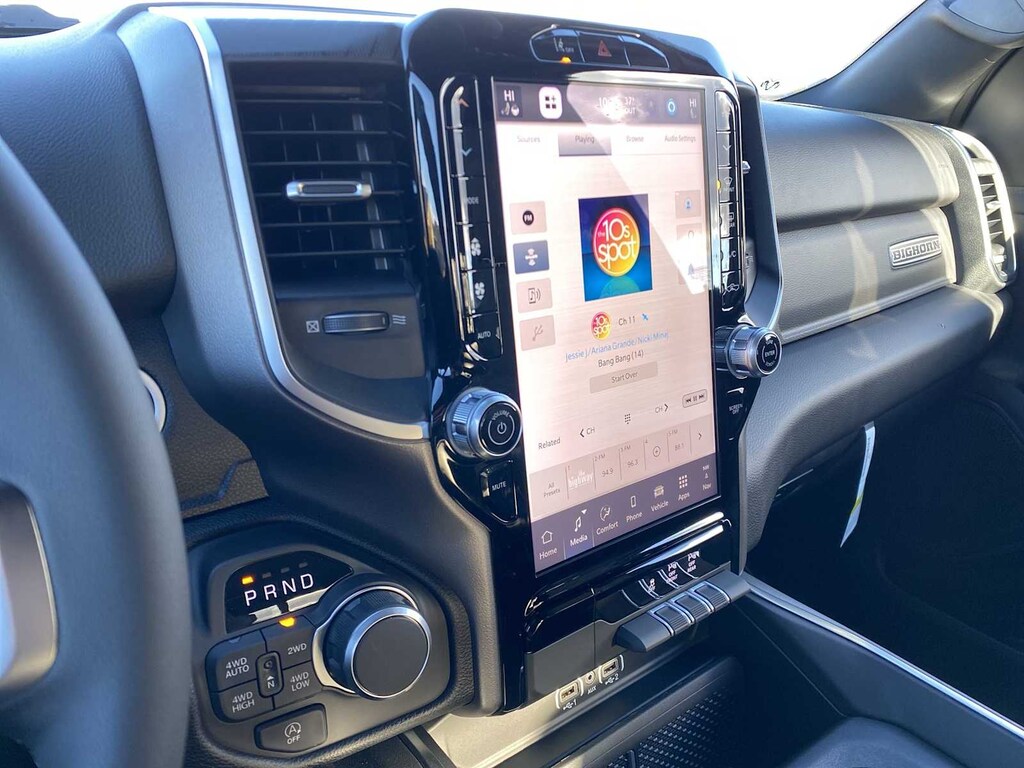 ENGINE: 5.7L V8 HEMI MDS VVT ETORQUE Active Noise Control System, Heavy Duty Engine Cooling, Passive Tuned Mass Damper, GVWR: 7,100 lbs, Dual Rear Exhaust w/Bright Tips, G/T Exhaust, 18 Aluminum Spare Wheel, 33 Gallon Fuel Tank, BIG HORN LEVEL 2 EQUIPMENT GROUP SiriusXM Radio Service, Power Adjustable Pedals, Leather Wrapped Steering Wheel, 12 Touchscreen Display, Glove Box Lamp, Auto Power-Folding Mirrors, 115V Auxiliary Rear Power Outlet, Media Hub w/2 Charge Only USBs, Heated Front Seats, Security Alarm, Black Premium Power Mirrors, Premium Overhead Console, 9 Amplified Speakers w/Subwoofer, Disassociated Touchscreen Display, Secondary Active Grille Shutters, Wireless Charging Pad, Body Color Fender Flares, Remote Tailgate Release, 115V Auxiliary Power Outlet, LED Dome Lamp w/On/Off Switch, Universal Garage Door Opener, 2nd Row In Floor Storage Bins, Sun Visors w/Illuminated Vanity Mirrors, LED Footwell Lighting, Rear Window Defroster, Rear View Auto Dim Mirror, Rear Power Sliding Window, GPS Navigation, MOPAR FRONT & REAR RUBBER FLOOR MATS, TRANSMISSION: 8-SPEED AUTOMATIC (8HP75). Ram Big Horn with Billet Silver Metallic Clearcoat exterior and Black interior features a 8 Cylinder Engine with 305 HP at 6400 RPM*.