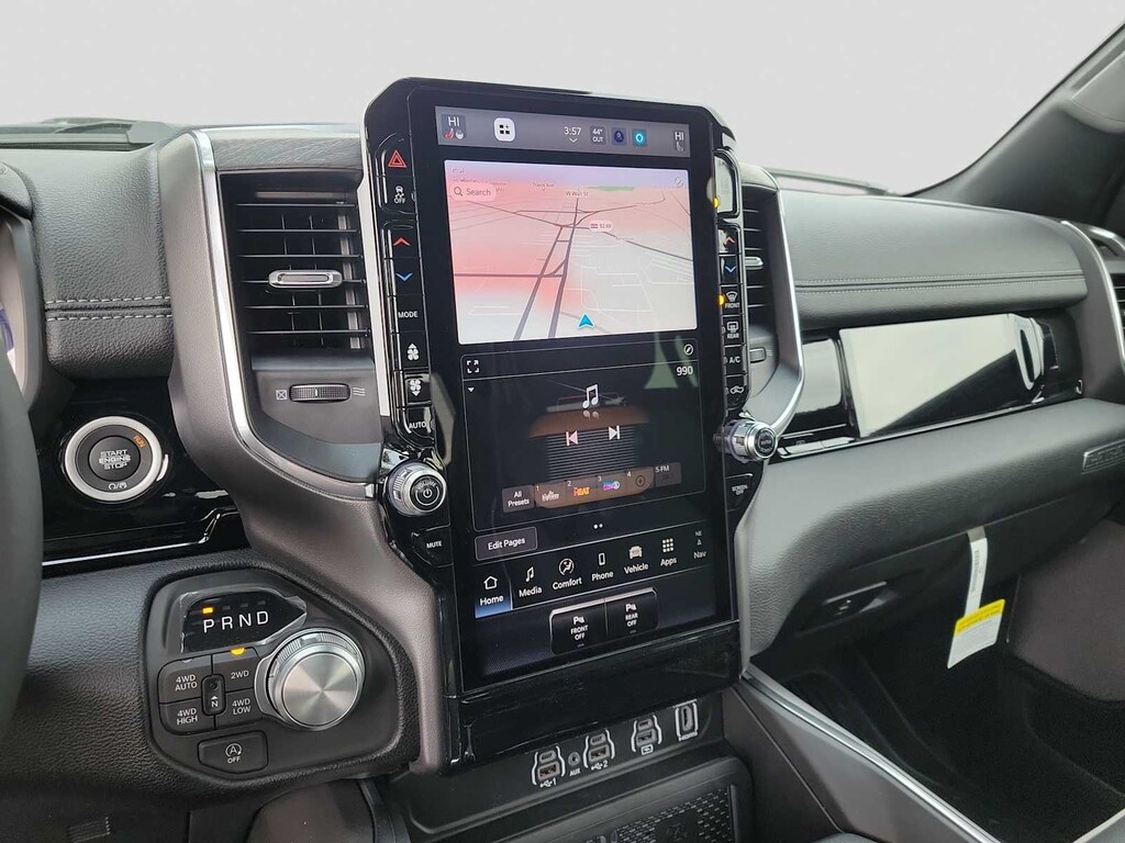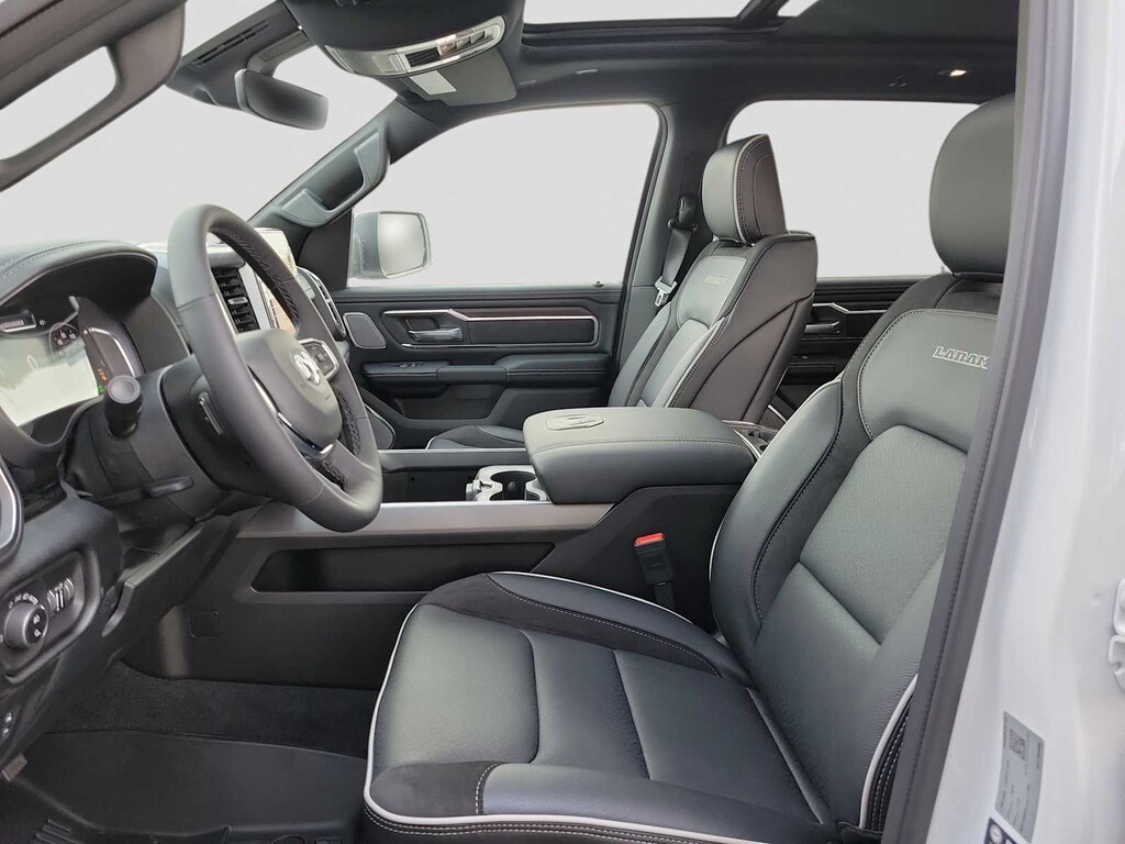 NIGHT EDITION Black Headlamp Bezels, Wheels: 22 x 9 Forged Aluminum, Tires: 285/45R22XL BSW All Season, Pirelli Brand Tires, Proximity Approach/Departure Lamps, Anti-Spin Differential Rear Axle, Accent Color Door Handles, Black Interior Accents, Body Color Front Bumper, Grille Surround 3 Black Texture 2 Black, Body Color Rear Bumper w/Step Pads, RAM Grille Badge - Black, Black Painted Exterior Mirrors Caps, Exterior Mirrors Approach Lamps, Accent Color Premium Power Mirrors, Sport Performance Hood, Black Exterior Truck Badging, Accent Color Tailgate Handle, Dual Exhaust w/Black Tips, Black Tail Lamp Bezels, ADVANCED SAFETY GROUP II Exterior Mirrors Approach Lamps, Active Driving Assist System, Surround View Camera System, Evasive Steer Assist, Drowsy Driver Detection, Intersection Collision Assist System, Traffic Sign Recognition, 12-Way/1-Way Trailer Connector, LARAMIE LEVEL 2 EQUIPMENT GROUP Rain Sensitive Windshield Wipers, 14.4 Touchscreen Display, Front Passenger Interactive Display, Radio: Uconnect 5 Nav w/14.4 Display, harman/kardon® 19 Speaker Premium Sound, Cluster 12 TFT Color Display, Power Tailgate, DUAL-PANE PANORAMIC SUNROOF LED Dome/Reading Lamp, Dome Dual LED Reading Lamp, ENGINE: 5.7L V8 HEMI MDS VVT ETORQUE 48V Belt Starter Generator, Heavy Duty Engine Cooling, Passive Tuned Mass Damper, Delete Alternator, Passive Cold End Exhaust, 18 Aluminum Spare Wheel, MOPAR FRONT & REAR RUBBER FLOOR MATS, TRANSMISSION: 8-SPEED AUTOMATIC (8HP75) (STD). Ram Laramie with Bright White Clearcoat exterior and Black interior features a 8 Cylinder Engine with 395 HP at 5600 RPM*.