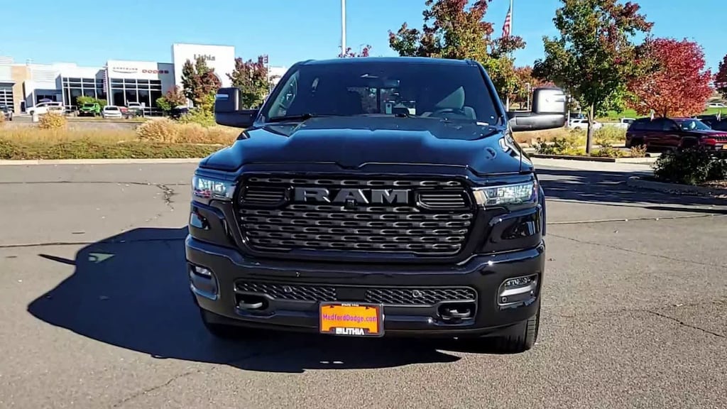 NIGHT EDITION Tires: 275/55R20 OWL All Season, Bridgestone Brand Tires, Accent Color Premium Power Mirrors, Exterior Mirrors w/Supplemental Signals, Black Headlamp Bezels, Exterior Mirrors Courtesy Lamps, Grille Black Surround Black Mesh, Auto Power-Folding Mirrors, Wheels: 20 x 9.0 Aluminum Painted Clad, Auto Dim Exterior Driver Mirror, Black Exterior Truck Badging, Anti-Spin Differential Rear Axle, Accent Color Door Handles, Accent Color Tailgate Handle, Black Interior Accents, Dual Exhaust w/Black Tips, Body Color Front Bumper, Body Color Rear Bumper w/Step Pads, Black Tail Lamp Bezels, RAM Grille Badge - Black, Black Painted Exterior Mirrors Caps, BIG HORN LEVEL 1 EQUIPMENT GROUP SiriusXM Radio Service, Rear Window Defroster, Rear View Auto Dim Mirror, Power Adjustable Pedals, Leather Wrapped Steering Wheel, Rear Power Sliding Window, Rear Dome w/On/Off Switch Lamp, Glove Box Lamp, Auto Power-Folding Mirrors, Auto Dim Exterior Driver Mirror, Heated Front Seats, Heated Steering Wheel, Black Premium Power Mirrors, SiriusXM Satellite Radio, 400W Inverter, Secondary Active Grille Shutters, Exterior Mirrors w/Supplemental Signals, Steering Wheel Mounted Audio Controls, Exterior Mirrors Courtesy Lamps, Body Color Fender Flares, 115V Auxiliary Power Outlet, Universal Garage Door Opener, 2nd Row In Floor Storage Bins, Sun Visors w/Illuminated Vanity Mirrors, 9 AMPLIFIED SPEAKERS W/SUBWOOFER, PROTECTION GROUP Transfer Case Skid Plate, Steering Gear Skid Plate, Fuel Tank Skid Plate, Tow Hooks, MOPAR FRONT & REAR RUBBER FLOOR MATS, TRANSMISSION: 8-SPEED AUTOMATIC (8HP75), ENGINE: 5.7L V8 HEMI MDS VVT ETORQUE Active Noise Control System, Heavy Duty Engine Cooling, Passive Tuned Mass Damper, GVWR: 7,100 lbs, Dual Rear Exhaust w/Bright Tips, G/T Exhaust, 18 Aluminum Spare Wheel, 33 Gallon Fuel Tank. Ram Big Horn with Diamond Black Crystal Pearlcoat exterior and Black interior features a 8 Cylinder Engine with 305 HP at 6400 RPM*.