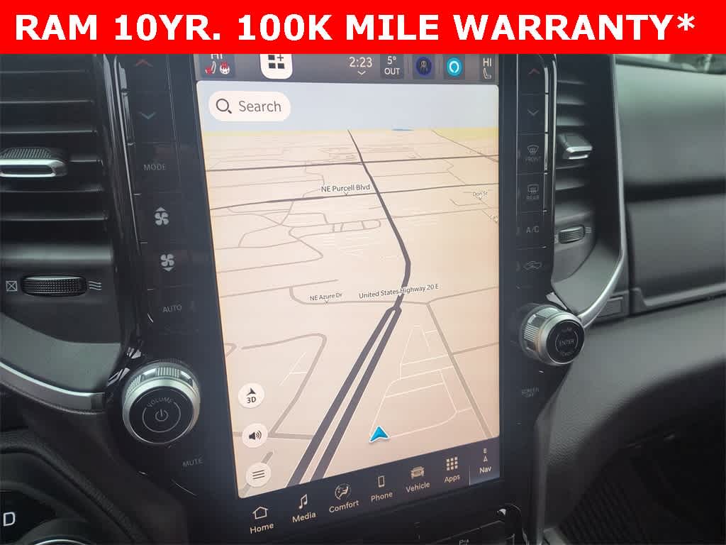 ENGINE: 5.7L V8 HEMI MDS VVT ETORQUE Active Noise Control System, Heavy Duty Engine Cooling, Passive Tuned Mass Damper, GVWR: 7,100 lbs, Dual Rear Exhaust w/Bright Tips, G/T Exhaust, 18 Aluminum Spare Wheel, BIG HORN LEVEL 2 EQUIPMENT GROUP SiriusXM Radio Service, Power Adjustable Pedals, Leather Wrapped Steering Wheel, 12 Touchscreen Display, Glove Box Lamp, Auto Power-Folding Mirrors, 115V Auxiliary Rear Power Outlet, Media Hub w/2 Charge Only USBs, Heated Front Seats, Security Alarm, Black Premium Power Mirrors, Premium Overhead Console, 9 Amplified Speakers w/Subwoofer, Disassociated Touchscreen Display, Body Color Fender Flares, Remote Tailgate Release, 115V Auxiliary Power Outlet, LED Dome Lamp w/On/Off Switch, Universal Garage Door Opener, 2nd Row In Floor Storage Bins, Sun Visors w/Illuminated Vanity Mirrors, LED Footwell Lighting, Rear Window Defroster, Rear View Auto Dim Mirror, Rear Power Sliding Window, GPS Navigation, Overhead LED Lamps, Wheels: 20 x 9 Aluminum Chrome Clad, DUAL-PANE PANORAMIC SUNROOF Dome Dual LED Reading Lamp, NIGHT EDITION Tires: 275/55R20 OWL All Season, Bridgestone Brand Tires, Accent Color Premium Power Mirrors, Exterior Mirrors w/Supplemental Signals, Black Headlamp Bezels, Exterior Mirrors Courtesy Lamps, Grille Black Surround Black Mesh, Auto Power-Folding Mirrors, Wheels: 20 x 9.0 Aluminum Painted Clad, Auto Dim Exterior Driver Mirror, Black Exterior Truck Badging, Anti-Spin Differential Rear Axle, Accent Color Door Handles, Accent Color Tailgate Handle, Black Interior Accents, Dual Exhaust w/Black Tips, Body Color Front Bumper, Body Color Rear Bumper w/Step Pads, Black Tail Lamp Bezels, RAM Grille Badge - Black, Black Painted Exterior Mirrors Caps, BED UTILITY GROUP MOPAR Spray In Bedliner, MOPAR 4 Adjustable Cargo Tie-Down Hooks, Pick-Up Box Lighting, Exterior 115V AC Outlet, MOPAR FRONT & REAR RUBBER FLOOR MATS, TRANSMISSION: 8-SPEED AUTOMATIC (8HP75).