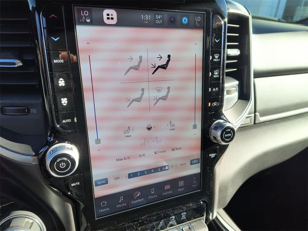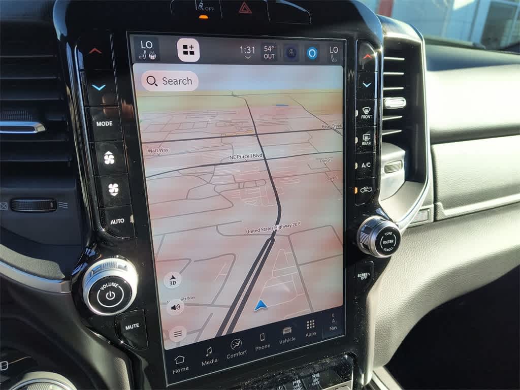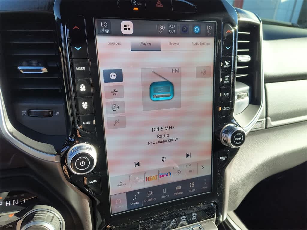BIG HORN LEVEL 2 EQUIPMENT GROUP SiriusXM Radio Service, Power Adjustable Pedals, Leather Wrapped Steering Wheel, 12 Touchscreen Display, Glove Box Lamp, Auto Power-Folding Mirrors, 115V Auxiliary Rear Power Outlet, Media Hub w/2 Charge Only USBs, Heated Front Seats, Security Alarm, Black Premium Power Mirrors, Premium Overhead Console, 9 Amplified Speakers w/Subwoofer, Disassociated Touchscreen Display, Body Color Fender Flares, Remote Tailgate Release, 115V Auxiliary Power Outlet, LED Dome Lamp w/On/Off Switch, Universal Garage Door Opener, 2nd Row In Floor Storage Bins, Sun Visors w/Illuminated Vanity Mirrors, LED Footwell Lighting, Rear Window Defroster, Rear View Auto Dim Mirror, Rear Power Sliding Window, GPS Navigation, Overhead LED Lamps, Wheels: 20 x 9 Aluminum Chrome Clad, ENGINE: 3.0L I6 HURRICANE SO TWIN TURBO ESS Aux Battery, 700 Amp Maintenance Free Battery, Active Noise Control System, GVWR: 7,100 lbs, 3.55 Rear Axle Ratio, Dual Rear Exhaust w/Bright Tips, Start-Stop Dual Battery System, 230 Amp Alternator, NIGHT EDITION Tires: 275/55R20 OWL All Season, Bridgestone Brand Tires, Accent Color Premium Power Mirrors, Exterior Mirrors w/Supplemental Signals, Black Headlamp Bezels, Exterior Mirrors Courtesy Lamps, Grille Black Surround Black Mesh, Auto Power-Folding Mirrors, Wheels: 20 x 9.0 Aluminum Painted Clad, Auto Dim Exterior Driver Mirror, Black Exterior Truck Badging, Anti-Spin Differential Rear Axle, Accent Color Door Handles, Accent Color Tailgate Handle, Black Interior Accents, Dual Exhaust w/Black Tips, Body Color Front Bumper, Body Color Rear Bumper w/Step Pads, Black Tail Lamp Bezels, RAM Grille Badge - Black, Black Painted Exterior Mirrors Caps, BED UTILITY GROUP MOPAR Spray In Bedliner, MOPAR 4 Adjustable Cargo Tie-Down Hooks, Pick-Up Box Lighting, Exterior 115V AC Outlet, MOPAR FRONT & REAR RUBBER FLOOR MATS, TRANSMISSION: 8-SPEED AUTOMATIC (8HP75).