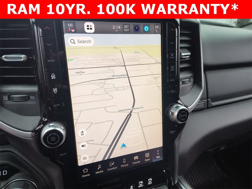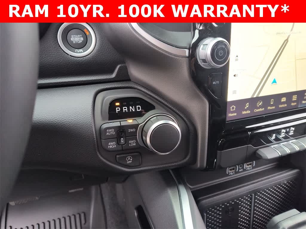 BIG HORN LEVEL 2 EQUIPMENT GROUP SiriusXM Radio Service, Power Adjustable Pedals, Leather Wrapped Steering Wheel, 12 Touchscreen Display, Glove Box Lamp, Auto Power-Folding Mirrors, 115V Auxiliary Rear Power Outlet, Media Hub w/2 Charge Only USBs, Heated Front Seats, Security Alarm, Black Premium Power Mirrors, Premium Overhead Console, 9 Amplified Speakers w/Subwoofer, Disassociated Touchscreen Display, Body Color Fender Flares, Remote Tailgate Release, 115V Auxiliary Power Outlet, LED Dome Lamp w/On/Off Switch, Universal Garage Door Opener, 2nd Row In Floor Storage Bins, Sun Visors w/Illuminated Vanity Mirrors, LED Footwell Lighting, Rear Window Defroster, Rear View Auto Dim Mirror, Rear Power Sliding Window, GPS Navigation, Overhead LED Lamps, Wheels: 20 x 9 Aluminum Chrome Clad, ENGINE: 3.0L I6 HURRICANE SO TWIN TURBO ESS Aux Battery, 700 Amp Maintenance Free Battery, Active Noise Control System, GVWR: 7,100 lbs, 3.55 Rear Axle Ratio, Dual Rear Exhaust w/Bright Tips, Start-Stop Dual Battery System, 230 Amp Alternator, NIGHT EDITION Tires: 275/55R20 OWL All Season, Bridgestone Brand Tires, Accent Color Premium Power Mirrors, Exterior Mirrors w/Supplemental Signals, Black Headlamp Bezels, Exterior Mirrors Courtesy Lamps, Grille Black Surround Black Mesh, Auto Power-Folding Mirrors, Wheels: 20 x 9.0 Aluminum Painted Clad, Auto Dim Exterior Driver Mirror, Black Exterior Truck Badging, Anti-Spin Differential Rear Axle, Accent Color Door Handles, Accent Color Tailgate Handle, Black Interior Accents, Dual Exhaust w/Black Tips, Body Color Front Bumper, Body Color Rear Bumper w/Step Pads, Black Tail Lamp Bezels, RAM Grille Badge - Black, Black Painted Exterior Mirrors Caps, MOPAR FRONT & REAR RUBBER FLOOR MATS, TRANSMISSION: 8-SPEED AUTOMATIC (8HP75).