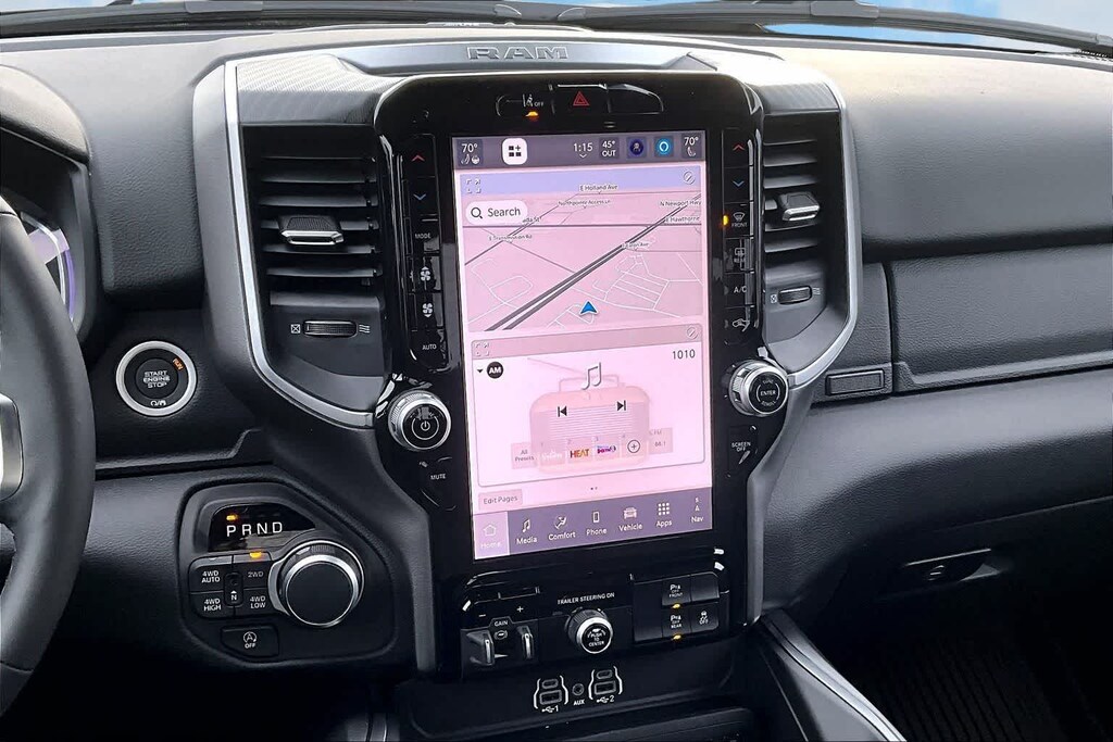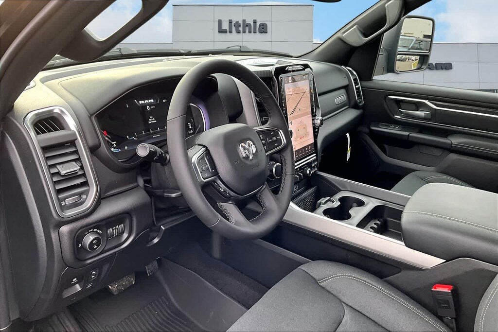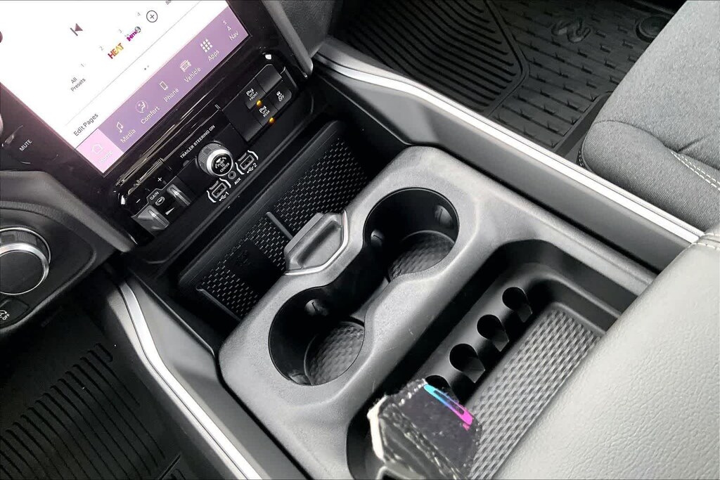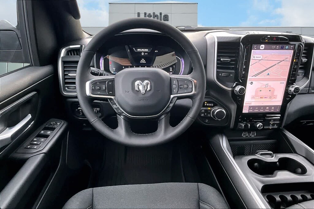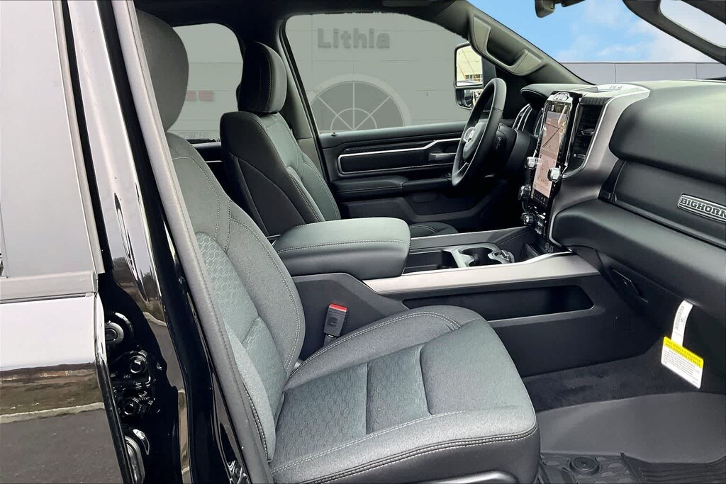 ENGINE: 5.7L V8 HEMI MDS VVT ETORQUE Active Noise Control System, Heavy Duty Engine Cooling, Passive Tuned Mass Damper, GVWR: 7,100 lbs, Dual Rear Exhaust w/Bright Tips, G/T Exhaust, 18 Aluminum Spare Wheel, BIG HORN LEVEL 2 EQUIPMENT GROUP SiriusXM Radio Service, Power Adjustable Pedals, Leather Wrapped Steering Wheel, 12 Touchscreen Display, Glove Box Lamp, Auto Power-Folding Mirrors, 115V Auxiliary Rear Power Outlet, Media Hub w/2 Charge Only USBs, Heated Front Seats, Security Alarm, Black Premium Power Mirrors, Premium Overhead Console, 9 Amplified Speakers w/Subwoofer, Disassociated Touchscreen Display, Body Color Fender Flares, Remote Tailgate Release, 115V Auxiliary Power Outlet, LED Dome Lamp w/On/Off Switch, Universal Garage Door Opener, 2nd Row In Floor Storage Bins, Sun Visors w/Illuminated Vanity Mirrors, LED Footwell Lighting, Rear Window Defroster, Rear View Auto Dim Mirror, Rear Power Sliding Window, GPS Navigation, Overhead LED Lamps, Wheels: 20 x 9 Aluminum Chrome Clad, DUAL-PANE PANORAMIC SUNROOF Dome Dual LED Reading Lamp, NIGHT EDITION Tires: 275/55R20 OWL All Season, Bridgestone Brand Tires, Accent Color Premium Power Mirrors, Exterior Mirrors w/Supplemental Signals, Black Headlamp Bezels, Exterior Mirrors Courtesy Lamps, Grille Black Surround Black Mesh, Auto Power-Folding Mirrors, Wheels: 20 x 9.0 Aluminum Painted Clad, Auto Dim Exterior Driver Mirror, Black Exterior Truck Badging, Anti-Spin Differential Rear Axle, Accent Color Door Handles, Accent Color Tailgate Handle, Black Interior Accents, Dual Exhaust w/Black Tips, Body Color Front Bumper, Body Color Rear Bumper w/Step Pads, Black Tail Lamp Bezels, RAM Grille Badge - Black, Black Painted Exterior Mirrors Caps, BED UTILITY GROUP MOPAR Spray In Bedliner, MOPAR 4 Adjustable Cargo Tie-Down Hooks, Pick-Up Box Lighting, Exterior 115V AC Outlet, PROTECTION GROUP Transfer Case Skid Plate, Steering Gear Skid Plate, Fuel Tank Skid Plate, Tow Hooks, MOPAR FRONT & REAR RUBBER FLOOR MATS, TRANSMISSION: 8-SPEED AUTOMATIC (8HP75). Ram Big Horn with Diamond Black Crystal Pearlcoat exterior and Black interior features a 8 Cylinder Engine with 395 HP at 5600 RPM*.