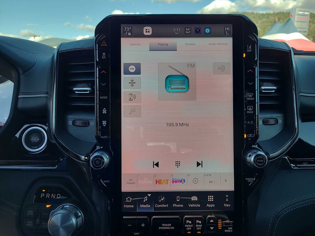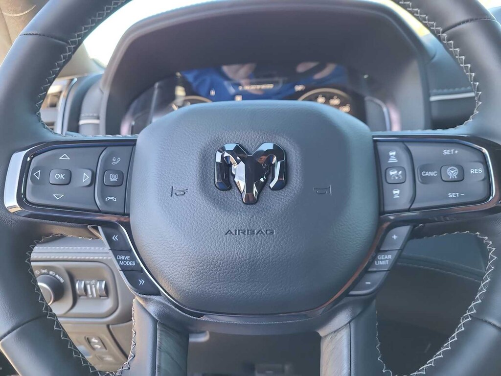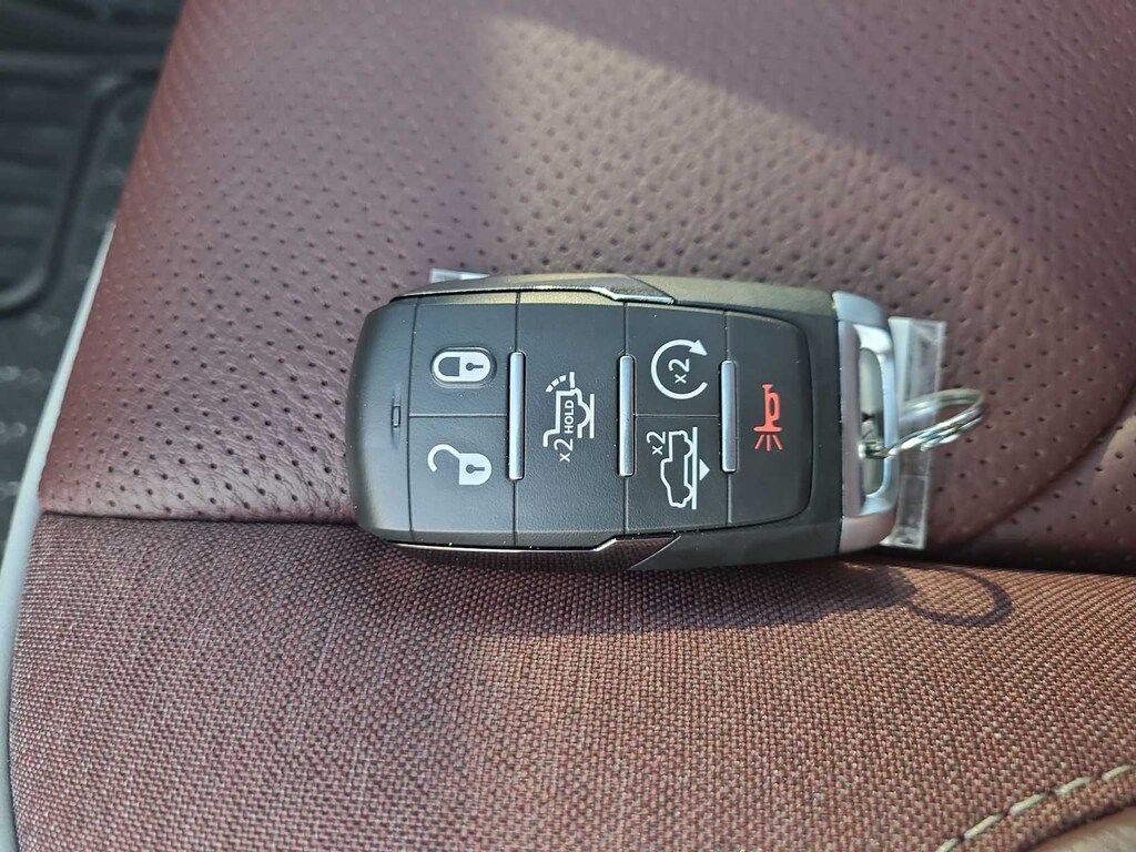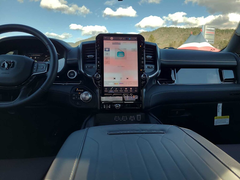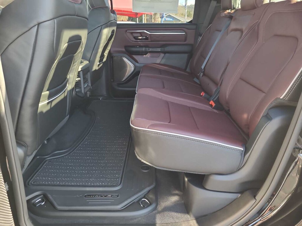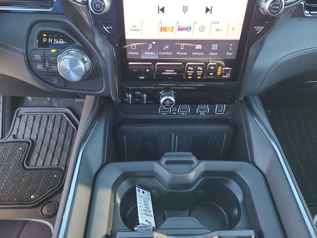 LIMITED LEVEL A EQUIPMENT GROUP Surround View Camera System, LED CHMSL Lamp, Tri-Fold Tonneau Cover, Traffic Sign Recognition, Hands-Free Active Driving Assist System, Head Up Display, Evasive Steer Assist, Drowsy Driver Detection, Intersection Collision Assist System, Smartphone As A Key Capable, 14.4 Touchscreen Display, Radio: Uconnect 5 Nav w/14.4 Display, 240 Amp Alternator, 12-Way/1-Way Trailer Connector, NIGHT EDITION Tires: 285/45R22XL BSW All Season, Black Headlamp Bezels, Wheels: 22 x 9 Premium Black Aluminum, Pirelli Brand Tires, Accent Color Door Handles, Body Color Front Bumper, Body Color Rear Bumper w/Step Pads, RAM Grille Badge - Black, Black Painted Exterior Mirrors Caps, Accent Color Premium Power Mirrors, Sport Performance Hood, Black Exterior Truck Badging, Black Day Light Opening Moldings, Accent Color Tailgate Handle, Dual Exhaust w/Black Tips, Black Grille Surround Texture 7 Black, Black Tail Lamp Bezels, DUAL-PANE PANORAMIC SUNROOF LED Dome/Reading Lamp, Dome Dual LED Reading Lamp, MULTI-FUNCTION TAILGATE Remote Tailgate Release, RAMs Head Badge, TRANSMISSION: 8-SPEED AUTOMATIC (8HP75) (STD), ENGINE: 3.0L I6 HURRICANE HO TWIN TURBO ESS (STD). Ram Limited with Diamond Black Crystal Pearlcoat exterior and Red/Black/Ebony interior features a Straight 6 Cylinder Engine.