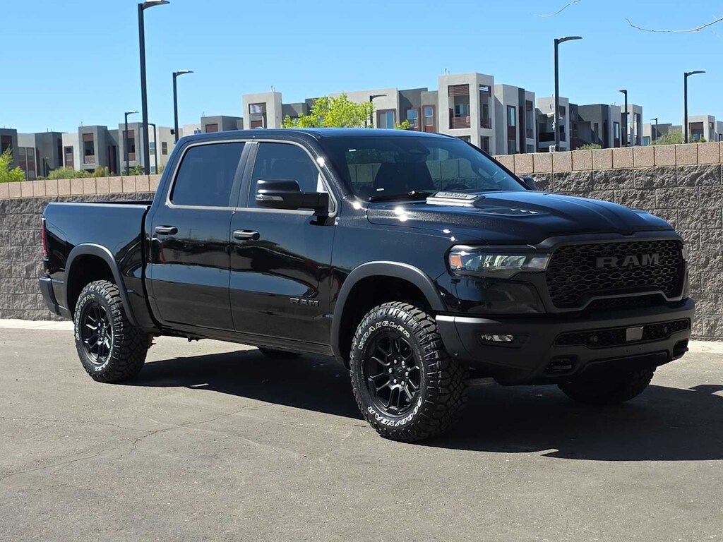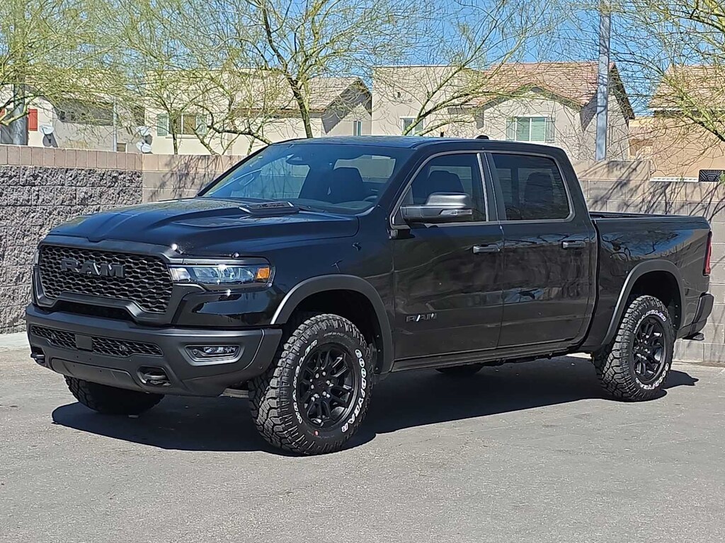With rugged hardware and trail-tuned confidence, our 2026 RAM 1500 Rebel Crew Cab 4X4 in Diamond Black Crystal Pearl dares you to push past limits. Motivated by a Twin-TurboCharged 3.0 Liter Hurricane 6 Cylinder delivering 420hp to an 8 Speed Automatic transmission engineered for off-road domination. A raised ride height, performance shocks, and a shift-on-demand transfer case can take this Four Wheel Drive truck further down the trail, and it achieves nearly 24mpg on the highway. Our fierce and stylish RAM features LED lighting, fog lamps, a sport performance hood, bold graphics, lower two-tone paint, alloy wheels, off-road fender flares, a spray-on bedliner, and robust skid plates.