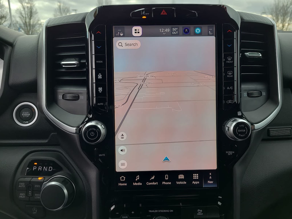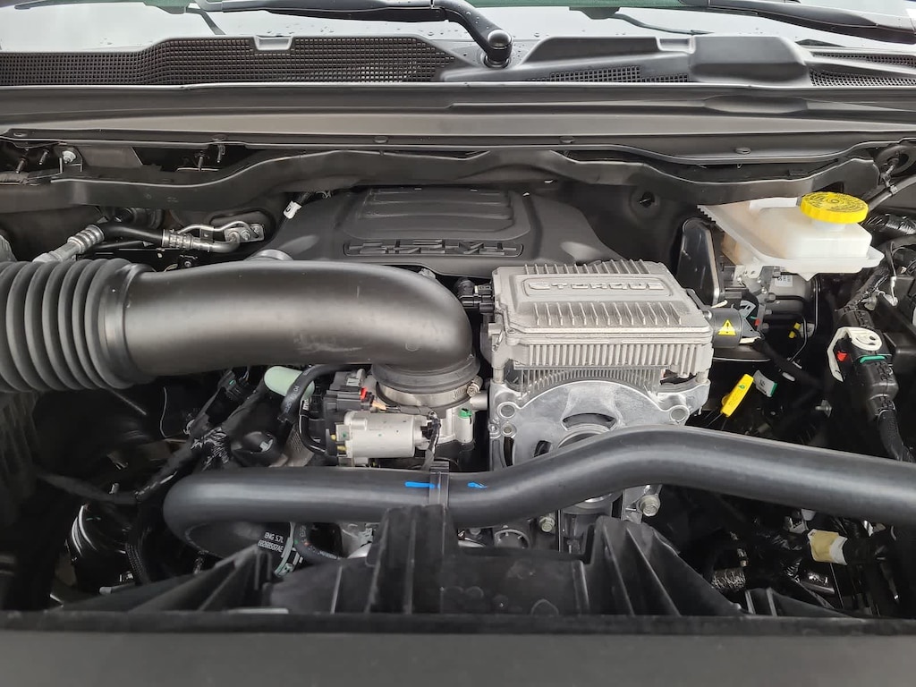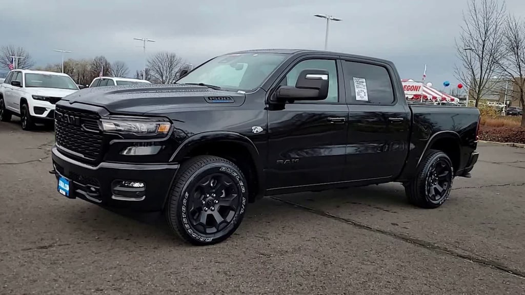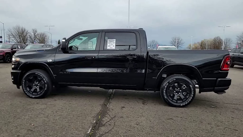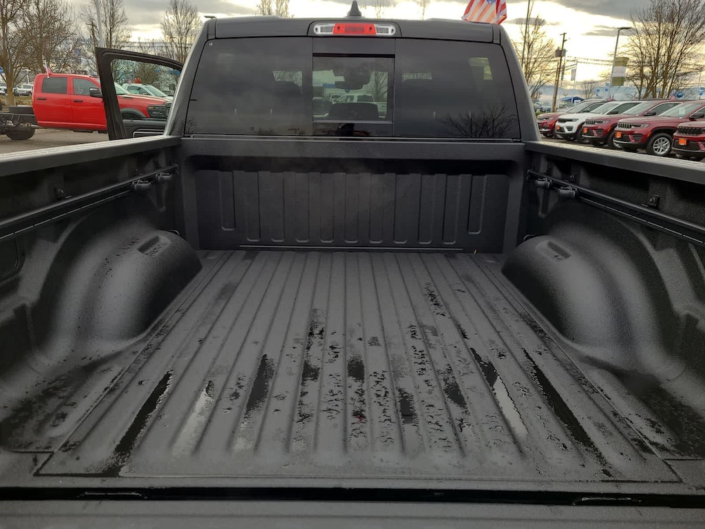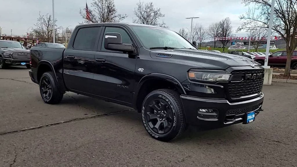 ENGINE: 5.7L V8 HEMI MDS VVT ETORQUE Active Noise Control System, Heavy Duty Engine Cooling, Passive Tuned Mass Damper, GVWR: 7,100 lbs, Dual Rear Exhaust w/Bright Tips, G/T Exhaust, 18 Aluminum Spare Wheel, BIG HORN LEVEL 2 EQUIPMENT GROUP SiriusXM Radio Service, Power Adjustable Pedals, Leather Wrapped Steering Wheel, 12 Touchscreen Display, Glove Box Lamp, Auto Power-Folding Mirrors, 115V Auxiliary Rear Power Outlet, Media Hub w/2 Charge Only USBs, Heated Front Seats, Security Alarm, Black Premium Power Mirrors, Premium Overhead Console, 9 Amplified Speakers w/Subwoofer, Disassociated Touchscreen Display, Body Color Fender Flares, Remote Tailgate Release, 115V Auxiliary Power Outlet, LED Dome Lamp w/On/Off Switch, Universal Garage Door Opener, 2nd Row In Floor Storage Bins, Sun Visors w/Illuminated Vanity Mirrors, LED Footwell Lighting, Rear Window Defroster, Rear View Auto Dim Mirror, Rear Power Sliding Window, GPS Navigation, Overhead LED Lamps, Wheels: 20 x 9 Aluminum Chrome Clad, DUAL-PANE PANORAMIC SUNROOF Dome Dual LED Reading Lamp, NIGHT EDITION Tires: 275/55R20 OWL All Season, Bridgestone Brand Tires, Accent Color Premium Power Mirrors, Exterior Mirrors w/Supplemental Signals, Black Headlamp Bezels, Exterior Mirrors Courtesy Lamps, Grille Black Surround Black Mesh, Auto Power-Folding Mirrors, Wheels: 20 x 9.0 Aluminum Painted Clad, Auto Dim Exterior Driver Mirror, Black Exterior Truck Badging, Anti-Spin Differential Rear Axle, Accent Color Door Handles, Accent Color Tailgate Handle, Black Interior Accents, Dual Exhaust w/Black Tips, Body Color Front Bumper, Body Color Rear Bumper w/Step Pads, Black Tail Lamp Bezels, RAM Grille Badge - Black, Black Painted Exterior Mirrors Caps, BED UTILITY GROUP MOPAR Spray In Bedliner, MOPAR 4 Adjustable Cargo Tie-Down Hooks, Pick-Up Box Lighting, Exterior 115V AC Outlet, PROTECTION GROUP Transfer Case Skid Plate, Steering Gear Skid Plate, Fuel Tank Skid Plate, Tow Hooks, SURROUND VIEW CAMERA SYSTEM 12-Way/1-Way Trailer Connector, TRANSMISSION: 8-SPEED AUTOMATIC (8HP75). Ram Big Horn with Diamond Black Crystal Pearlcoat exterior and Black interior features a 8 Cylinder Engine with 395 HP at 5600 RPM*.