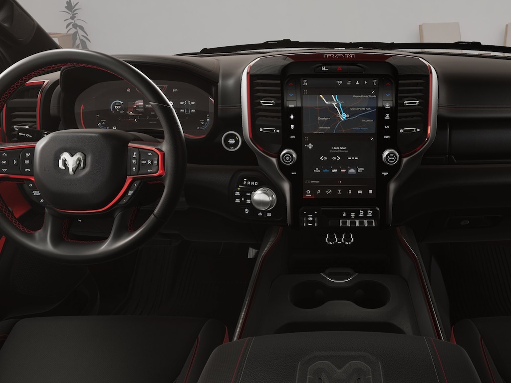 BED UTILITY GROUP MOPAR Spray In Bedliner, MOPAR 4 Adjustable Cargo Tie-Down Hooks, Exterior 115V AC Outlet, REBEL LEVEL 1 EQUIPMENT GROUP Rear Window Defroster, Wireless Charging Pad, Power Adjustable Pedals, Exterior Mirrors w/Supplemental Signals, Exterior Mirrors Courtesy Lamps, Auto Power-Folding Mirrors, Remote Tailgate Release, Auto Dim Exterior Driver Mirror, Black Premium Power Mirrors, TRANSMISSION: 8-SPEED AUTOMATIC (8HP75) (STD), ENGINE: 3.0L I6 HURRICANE SO TWIN TURBO ESS (STD). Ram Rebel with Billet Silver Metallic Clearcoat exterior and Red/Black interior features a Straight 6 Cylinder Engine with 420 HP at 5200 RPM*.