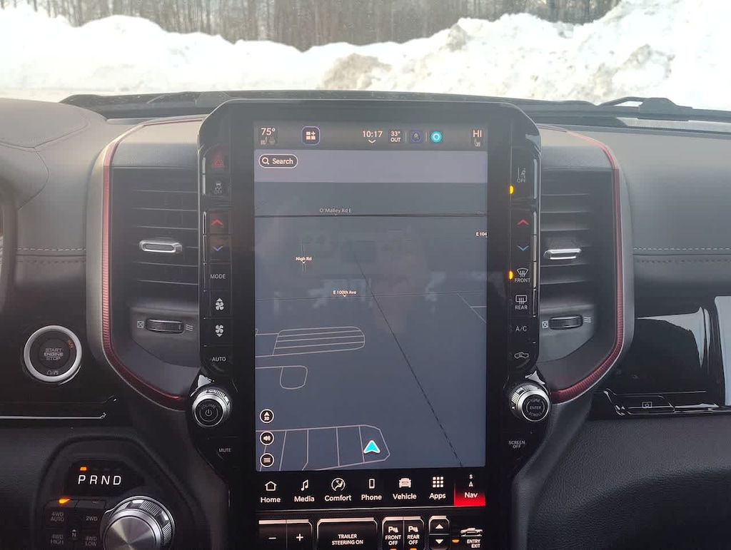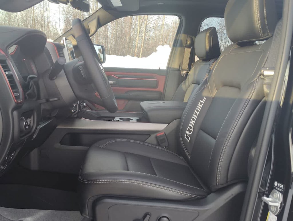 REBEL LEVEL 2 EQUIPMENT GROUP Power Adjustable Pedals w/Memory, Front Passenger Interactive Display, Power 2-Way Passenger Lumbar Adjust, Auto Power-Folding Mirrors, 115V Auxiliary Rear Power Outlet, Media Hub w/2 Charge Only USBs, Proximity Approach/Departure Lamps, Power Adjust 8-Way Front Passenger Seat, Security Alarm, Dual Wireless Charging Pad, harman/kardon® 19 Speaker Premium Sound, Rear Window Defroster, Rain Sensitive Windshield Wipers, Auto Dim Exterior Driver Mirror, Accent Color Door Handles, Heated Second Row Seats, Black Painted Exterior Mirrors Caps, Exterior Mirrors Approach Lamps, Smartphone As A Key Capable, 14.4 Touchscreen Display, Accent Color Premium Power Mirrors, Exterior Mirrors w/Supplemental Signals, Exterior Mirrors Courtesy Lamps, Radio: Uconnect 5 Nav w/14.4, 4-CORNER AIR SUSPENSION, DUAL-PANE PANORAMIC SUNROOF Dome Dual LED Reading Lamp, RED/BLACK, LUX LEATHER TRIMMED BUCKET SEATS Power 2-Way Passenger Lumbar Adjust, Ventilated Front Seats, Power Adjust 8-Way Front Passenger Seat, TECHNOLOGY GROUP Head Up Display, LED CHMSL Lamp, 12-Way/1-Way Trailer Connector, BED UTILITY GROUP MOPAR Spray In Bedliner, MOPAR 4 Adjustable Cargo Tie-Down Hooks, Exterior 115V AC Outlet, TRANSMISSION: 8-SPEED AUTOMATIC (8HP75) (STD), ENGINE: 3.0L I6 HURRICANE SO TWIN TURBO ESS (STD). Ram Rebel with Diamond Black Crystal Pearlcoat exterior and Red/Black interior features a Straight 6 Cylinder Engine with 420 HP at 5200 RPM*.