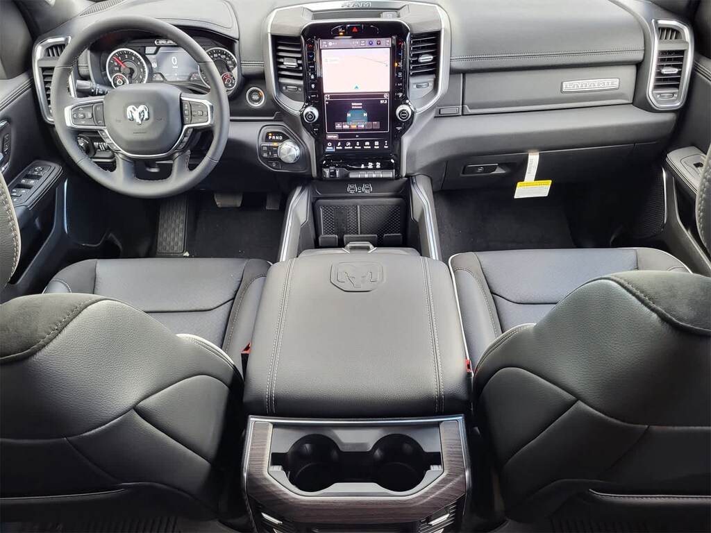 NIGHT EDITION Black Headlamp Bezels, Wheels: 22 x 9 Forged Aluminum, Tires: 285/45R22XL BSW All Season, Pirelli Brand Tires, Proximity Approach/Departure Lamps, Anti-Spin Differential Rear Axle, Accent Color Door Handles, Black Interior Accents, Body Color Front Bumper, Grille Surround 3 Black Texture 2 Black, Body Color Rear Bumper w/Step Pads, RAM Grille Badge - Black, Black Painted Exterior Mirrors Caps, Exterior Mirrors Approach Lamps, Accent Color Premium Power Mirrors, Sport Performance Hood, Black Exterior Truck Badging, Accent Color Tailgate Handle, Dual Exhaust w/Black Tips, Black Tail Lamp Bezels, BED UTILITY GROUP MOPAR Spray In Bedliner, MOPAR 4 Adjustable Cargo Tie-Down Hooks, Exterior 115V AC Outlet, LARAMIE LEVEL 1 EQUIPMENT GROUP Remote Tailgate Release, Rain Sensitive Windshield Wipers, MOPAR FRONT & REAR RUBBER FLOOR MATS, TRANSMISSION: 8-SPEED AUTOMATIC (8HP75) (STD), ENGINE: 3.0L I6 HURRICANE SO TWIN TURBO ESS (STD). Ram Laramie with Bright White Clearcoat exterior and Black interior features a Straight 6 Cylinder Engine with 420 HP at 5200 RPM*.