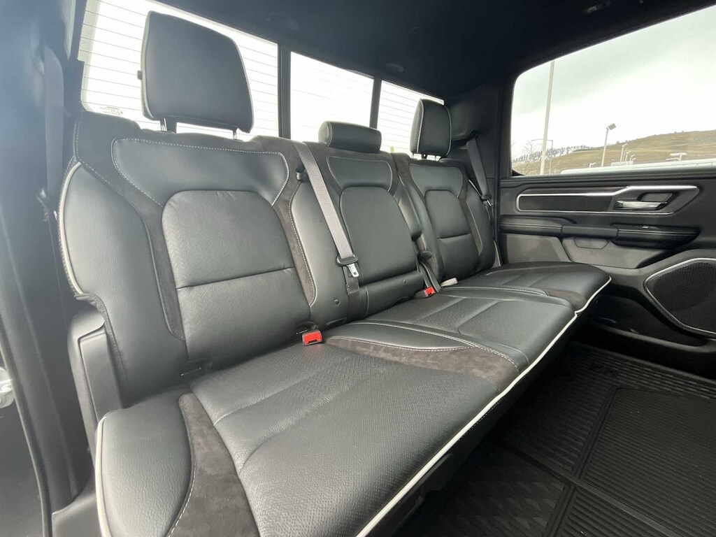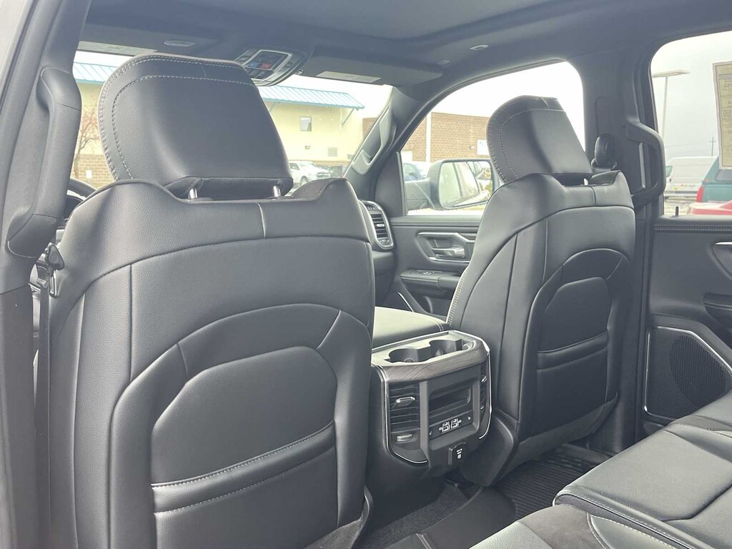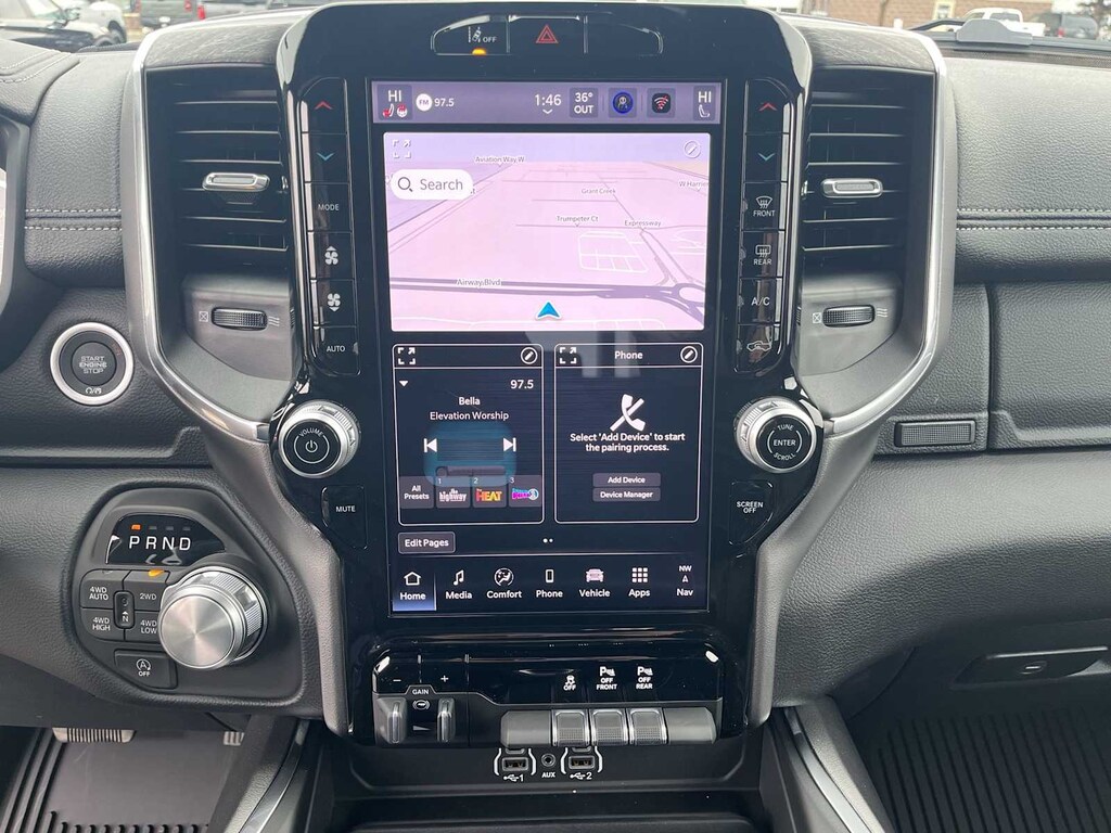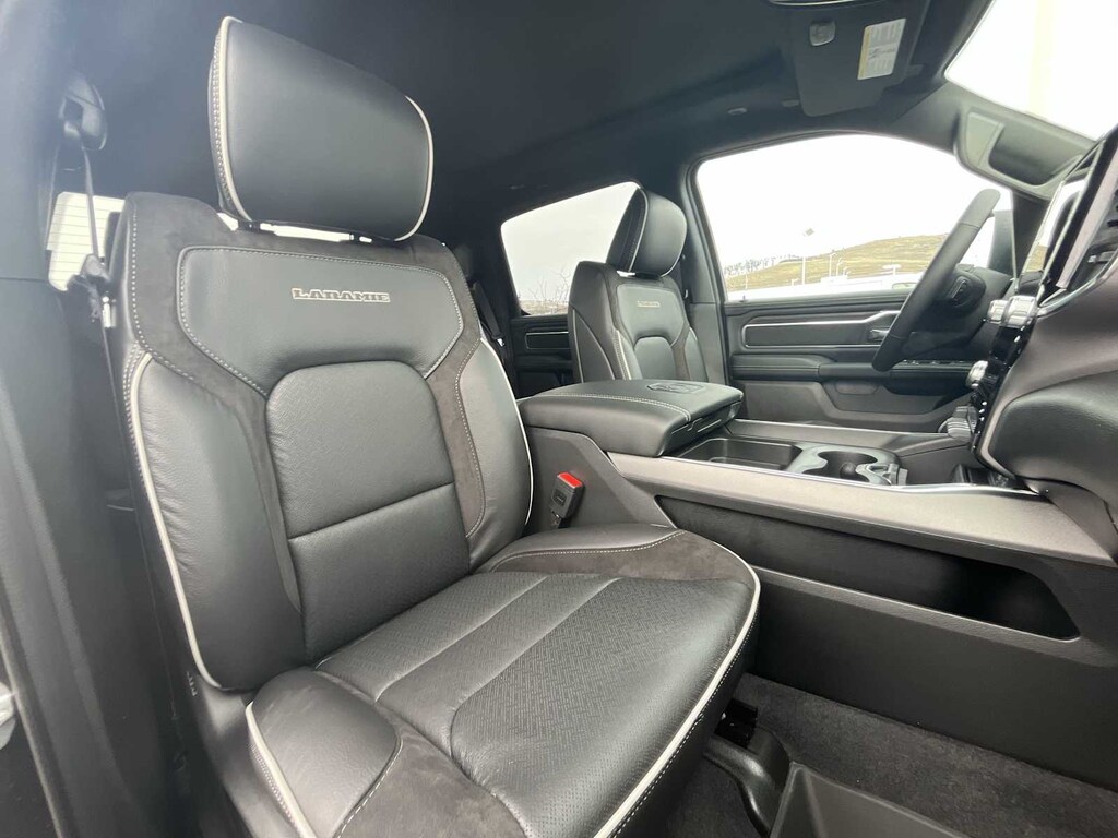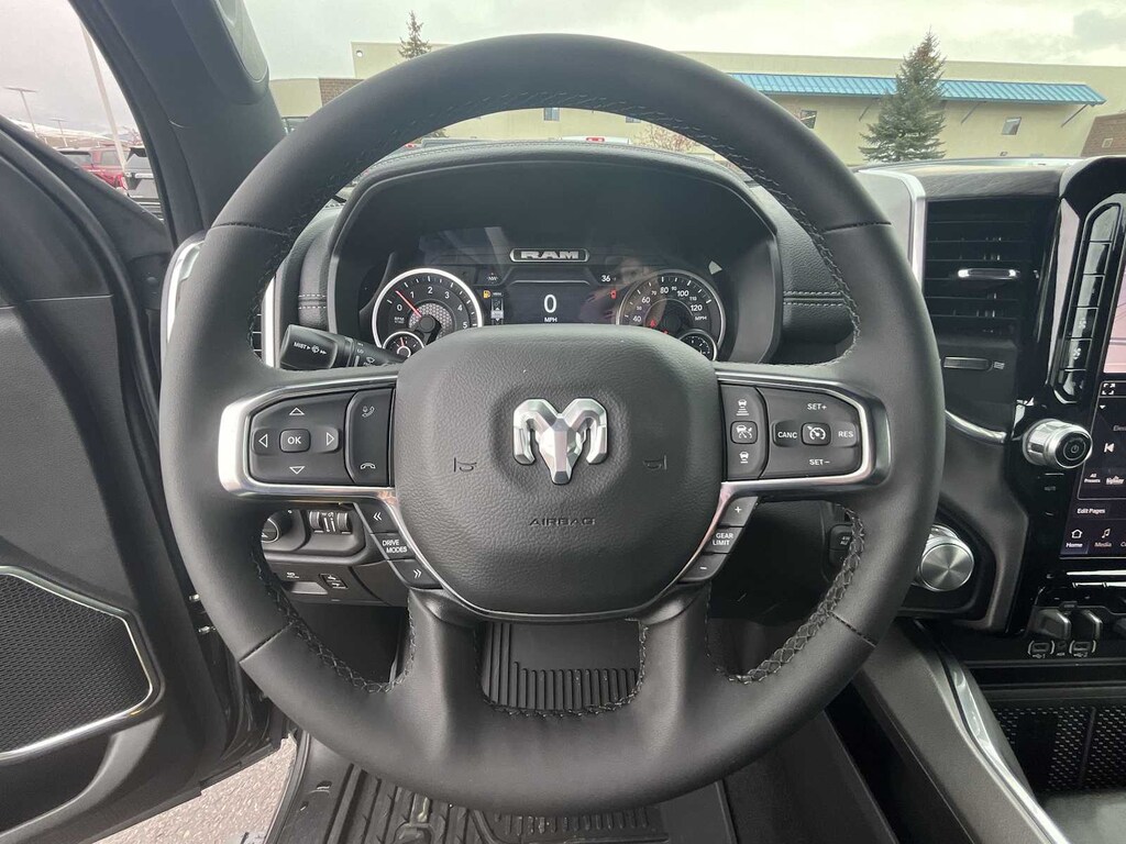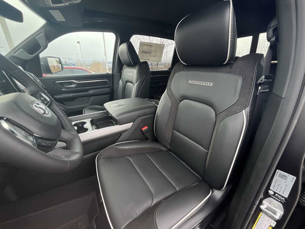 LARAMIE PREFERRED PACKAGE Accent Color Premium Power Mirrors, Power Deployable Running Boards, Grille Surround 3 Body Color Tex 4 Chrome, Trailer Brake Control, Tow Hooks, Body Color Front Bumper, Dual-Pane Panoramic Sunroof, LED Dome/Reading Lamp, Dome Dual LED Reading Lamp, Body Color Rear Bumper w/Step Pads, Black Painted Exterior Mirrors Caps, ENGINE: 5.7L V8 HEMI MDS VVT ETORQUE 48V Belt Starter Generator, Heavy Duty Engine Cooling, Passive Tuned Mass Damper, Delete Alternator, Passive Cold End Exhaust, 18 Aluminum Spare Wheel, LARAMIE LEVEL 1 EQUIPMENT GROUP Remote Tailgate Release, Rain Sensitive Windshield Wipers, MOPAR FRONT & REAR RUBBER FLOOR MATS, TRANSMISSION: 8-SPEED AUTOMATIC (8HP75) (STD). Ram Laramie with Granite Crystal Metallic Clearcoat exterior and Black interior features a 8 Cylinder Engine with 395 HP at 5600 RPM*.