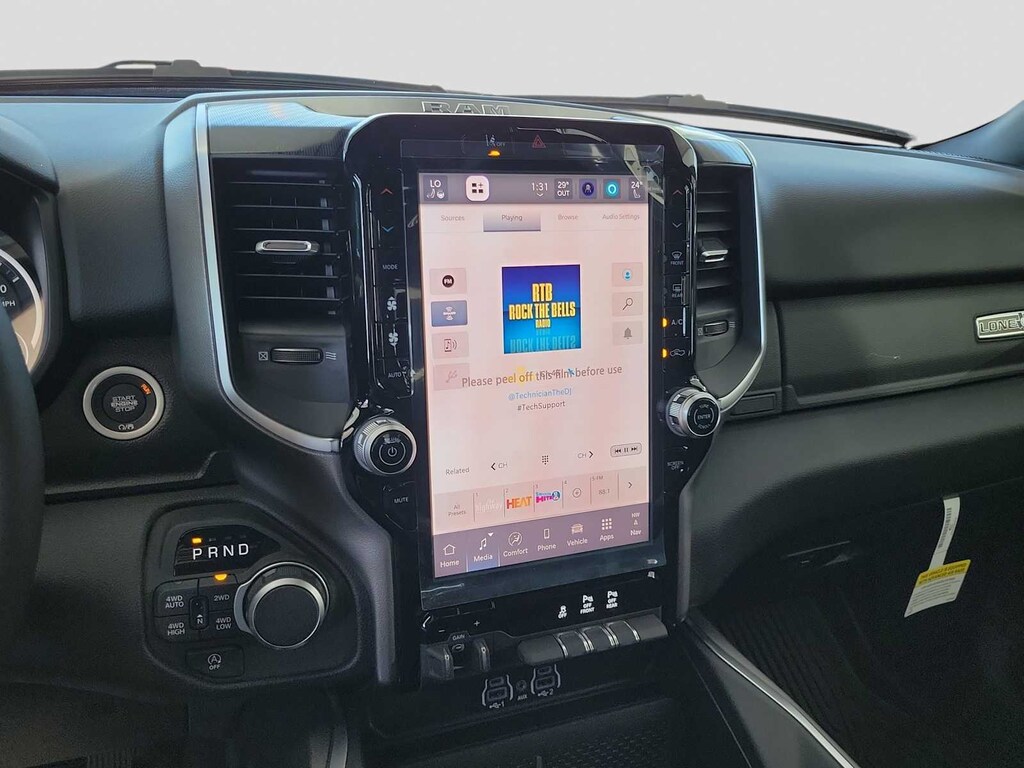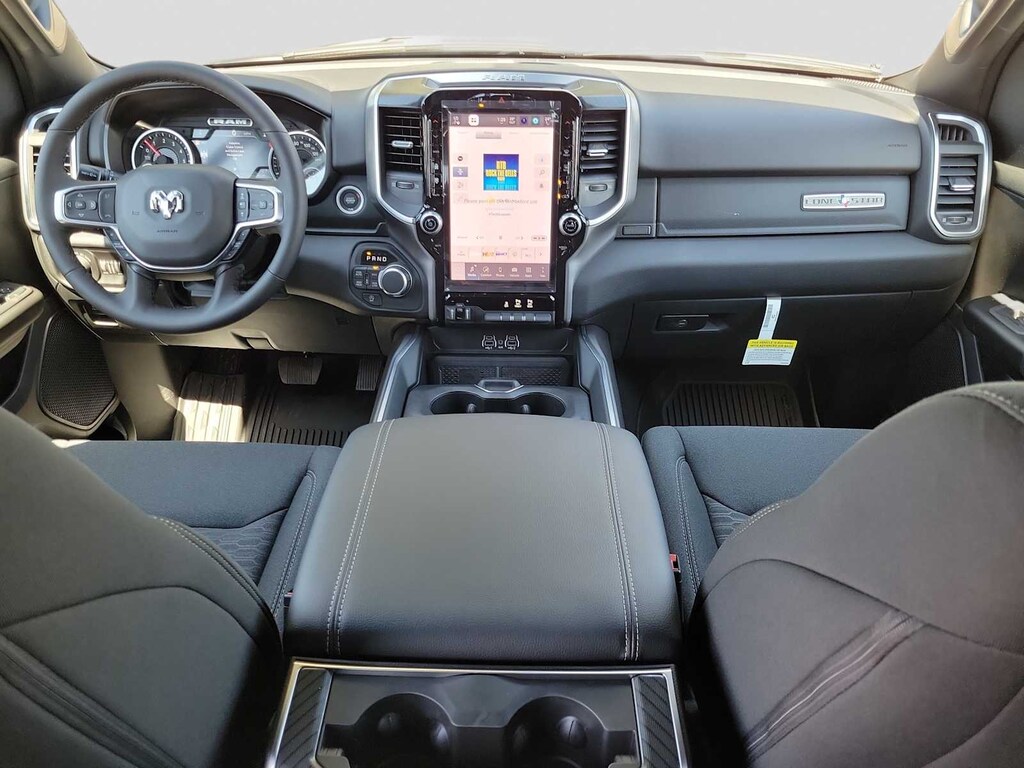 BIG HORN LEVEL 2 EQUIPMENT GROUP SiriusXM Radio Service, Power Adjustable Pedals, Leather Wrapped Steering Wheel, 12 Touchscreen Display, Glove Box Lamp, Auto Power-Folding Mirrors, 115V Auxiliary Rear Power Outlet, Media Hub w/2 Charge Only USBs, Heated Front Seats, Security Alarm, Black Premium Power Mirrors, Premium Overhead Console, 9 Amplified Speakers w/Subwoofer, Disassociated Touchscreen Display, Body Color Fender Flares, Remote Tailgate Release, 115V Auxiliary Power Outlet, LED Dome Lamp w/On/Off Switch, Universal Garage Door Opener, 2nd Row In Floor Storage Bins, Sun Visors w/Illuminated Vanity Mirrors, LED Footwell Lighting, Rear Window Defroster, Rear View Auto Dim Mirror, Rear Power Sliding Window, GPS Navigation, Overhead LED Lamps, Wheels: 20 x 9 Aluminum Chrome Clad, ENGINE: 5.7L V8 HEMI MDS VVT ETORQUE Active Noise Control System, Heavy Duty Engine Cooling, Passive Tuned Mass Damper, GVWR: 7,100 lbs, Dual Rear Exhaust w/Bright Tips, G/T Exhaust, 18 Aluminum Spare Wheel, NIGHT EDITION Tires: 275/55R20 OWL All Season, Bridgestone Brand Tires, Accent Color Premium Power Mirrors, Exterior Mirrors w/Supplemental Signals, Black Headlamp Bezels, Exterior Mirrors Courtesy Lamps, Grille Black Surround Black Mesh, Auto Power-Folding Mirrors, Wheels: 20 x 9.0 Aluminum Painted Clad, Auto Dim Exterior Driver Mirror, Black Exterior Truck Badging, Anti-Spin Differential Rear Axle, Accent Color Door Handles, Accent Color Tailgate Handle, Black Interior Accents, Dual Exhaust w/Black Tips, Body Color Front Bumper, Body Color Rear Bumper w/Step Pads, Black Tail Lamp Bezels, RAM Grille Badge - Black, Black Painted Exterior Mirrors Caps, BED UTILITY GROUP MOPAR Spray In Bedliner, MOPAR 4 Adjustable Cargo Tie-Down Hooks, Pick-Up Box Lighting, Exterior 115V AC Outlet, MOPAR FRONT & REAR RUBBER FLOOR MATS, TRANSMISSION: 8-SPEED AUTOMATIC (8HP75). Ram Lone Star with Diamond Black Crystal Pearlcoat exterior and Black interior features a 8 Cylinder Engine with 395 HP at 5600 RPM*.