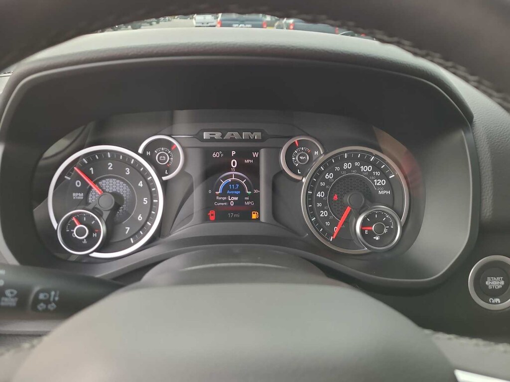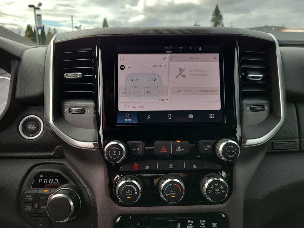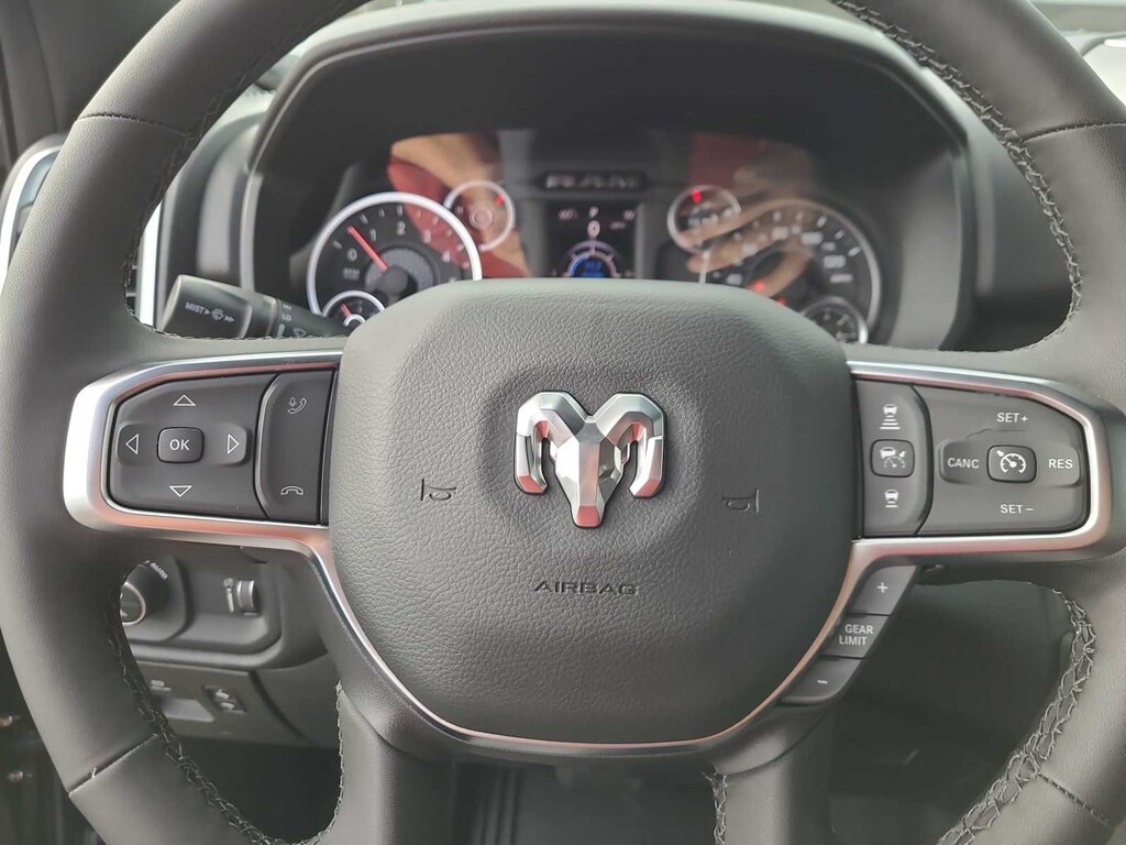 BIG HORN LEVEL 1 EQUIPMENT GROUP SiriusXM Radio Service, Rear Window Defroster, Rear View Auto Dim Mirror, Power Adjustable Pedals, Leather Wrapped Steering Wheel, Rear Power Sliding Window, Rear Dome w/On/Off Switch Lamp, Glove Box Lamp, Auto Power-Folding Mirrors, Auto Dim Exterior Driver Mirror, Heated Front Seats, Heated Steering Wheel, Black Premium Power Mirrors, SiriusXM Satellite Radio, 400W Inverter, Secondary Active Grille Shutters, Exterior Mirrors w/Supplemental Signals, Steering Wheel Mounted Audio Controls, Exterior Mirrors Courtesy Lamps, Body Color Fender Flares, 115V Auxiliary Power Outlet, Universal Garage Door Opener, 2nd Row In Floor Storage Bins, Sun Visors w/Illuminated Vanity Mirrors, MOPAR FRONT & REAR RUBBER FLOOR MATS, TRANSMISSION: 8-SPEED AUTOMATIC (8HP75), ENGINE: 5.7L V8 HEMI MDS VVT ETORQUE Active Noise Control System, Heavy Duty Engine Cooling, Passive Tuned Mass Damper, GVWR: 7,100 lbs, Dual Rear Exhaust w/Bright Tips, G/T Exhaust, 18 Aluminum Spare Wheel, 33 Gallon Fuel Tank. Ram Big Horn with Granite Crystal Metallic Clearcoat exterior and Black interior features a 8 Cylinder Engine with 305 HP at 6400 RPM*.