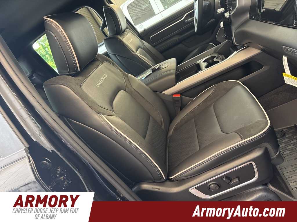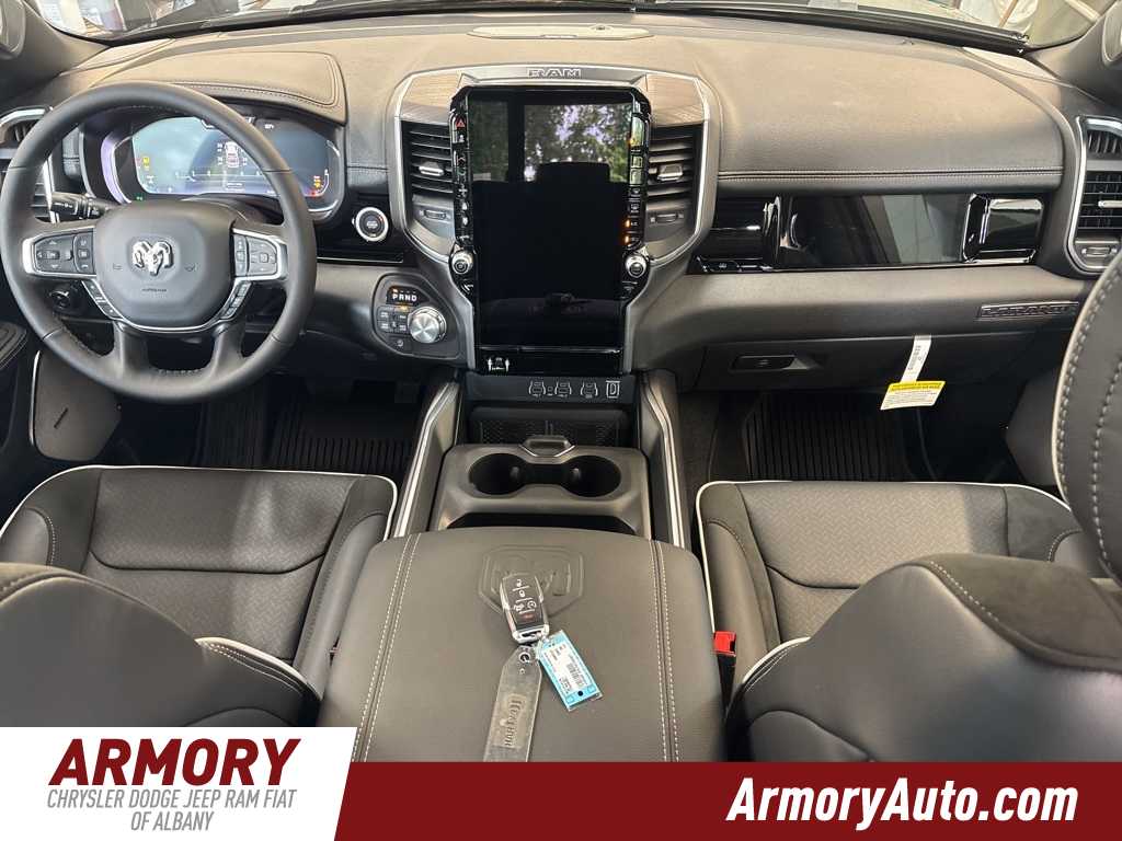 1500 Laramie is nicely equipped with Bed Utility Group (Exterior 115V AC Outlet, MOPAR 4 Adjustable Cargo Tie-Down Hooks, and MOPAR Spray in Bedliner), Laramie Level 2 Equipment Group (14.4 Touchscreen Display, 4G LTE Wi-Fi Hot Spot, Cluster 12 TFT Color Display, Connected Travel and Traffic Services, Connectivity - US/Canada, Front Passenger Interactive Display, GPS Navigation, Harman/Kardon 19 Speaker Premium Sound, Integrated Center Stack Radio, Integrated Voice Command with Bluetooth, Power Tailgate, Radio: Uconnect 5 Nav with 14.4 Display, Rain Sensitive Windshield Wipers, SiriusXM Radio Service, SiriusXM with 360L, and USB Host Flip), Night Edition (Accent Color Door Handles, Accent Color Premium Power Mirrors, Accent Color Tailgate Handle, Anti-Spin Differential Rear Axle, Auto Power-Folding Mirrors, Auto-Dimming Exterior Driver Mirror, Black Exterior Truck Badging, Black Headlamp Bezels, Black Interior Accents, Black Painted Exterior Mirrors Caps, Black Tail Lamp Bezels, Body Color Front Bumper, Body Color Rear Bumper with Step Pads, Convex Wide-Angle Exterior Mirror Insert, Dual Exhaust with Black Tips, Exterior Mirrors Approach Lamps, Exterior Mirrors Courtesy Lamps, Exterior Mirrors with Heating Element, Exterior Mirrors with Memory, Exterior Mirrors with Supplemental Signals, Grille Surround 3 Black Texture 2 Black, Pirelli Brand Tires, Proximity Approach/Departure Lamps, RAM Grille Badge - Black, Sport Performance Hood, and Wheels: 22 x 9 Forged Aluminum), Quick Order Package 21H Laramie, 10 Speakers, 4-Wheel Disc Brakes, ABS brakes, Active Noise Control System, Adjustable pedals, Air Conditioning, Alloy wheels, AM/FM radio: SiriusXM with 360L, Apple CarPlay/Android Auto, Audio memory, Auto High-beam Headlights, Auto-dimming door mirrors, Auto-dimming Rear-View mirror, Automatic temperature control, Brake assist, Bumpers: chrome, Chrome Exterior Mirrors, Compass, Delay-off headlights, Driver door bin, Driver vanity mirror, Dual front impact airbags, Dual front side impact airbags, Electronic Stability Control, Front anti-roll bar, Front Bucket Seats, Front Center Armrest w/Storage, Front dual zone A/C, Front fog lights, Front License Plate Bracket, Front reading lights, Front wheel independent suspension, Fully automatic headlights, Garage door transmitter, Heated door mirrors, Heated front seats, Heated rear seats, Heated steering wheel, Illuminated entry, Leather steering wheel, Leather Trimmed Bucket Seats, Low tire pressure warning, Manufacturers Statement of Origin, Memory seat, Mopar Black Tubular Side Steps, MOPAR Front and Rear Rubber Floor Mats, Navigation System, Occupant sensing airbag, Off-Road Information Pages, Outside temperature display, Overhead airbag, Overhead console, Panic alarm, ParkView Rear Back-Up Camera, Passenger door bin, Passenger vanity mirror, Pedal memory, Power door mirrors, Power driver seat, Power passenger seat, Power steering, Power windows, Radio data system, Radio: Uconnect 5 Navigation with 12.0 Display, RAM Grille Badge - Chrome, Rear anti-roll bar, Rear reading lights, Rear seat center armrest, Rear step bumper, Remote keyless entry, Security system, Speed control, Split folding rear seat, Steering wheel mounted audio controls, Tachometer, Telescoping steering wheel, Tilt steering wheel, Traction control, Trailer Brake Control, Trip computer, Turn signal indicator mirrors, Variably intermittent wipers, Ventilated front seats, Voltmeter, and Wheels: 20 x 9 Premium Paint/Polish. Price includes: $1000 - 2026 National Bonus Cash . Exp. 03/02/2026 $2000 - 2026 National Select Inventory Bonus Cash. Exp. 03/02/2026