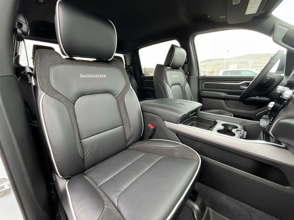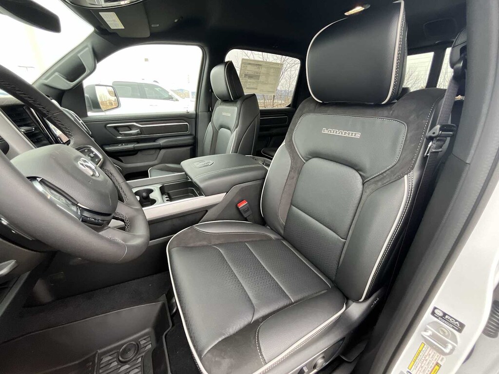 LARAMIE LEVEL 1 EQUIPMENT GROUP Remote Tailgate Release, Rain Sensitive Windshield Wipers, MOPAR FRONT & REAR RUBBER FLOOR MATS, TRANSMISSION: 8-SPEED AUTOMATIC (8HP75) (STD), ENGINE: 3.0L I6 HURRICANE SO TWIN TURBO ESS (STD). Ram Laramie with Bright White Clearcoat exterior and Black interior features a Straight 6 Cylinder Engine with 420 HP at 5200 RPM*.
