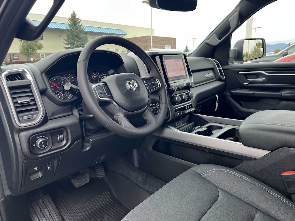 BIG HORN LEVEL 1 EQUIPMENT GROUP SiriusXM Radio Service, Rear Window Defroster, Rear View Auto Dim Mirror, Power Adjustable Pedals, Leather Wrapped Steering Wheel, Rear Power Sliding Window, Rear Dome w/On/Off Switch Lamp, Glove Box Lamp, Auto Power-Folding Mirrors, Auto Dim Exterior Driver Mirror, Heated Front Seats, Heated Steering Wheel, Black Premium Power Mirrors, SiriusXM Satellite Radio, 400W Inverter, Secondary Active Grille Shutters, Exterior Mirrors w/Supplemental Signals, Steering Wheel Mounted Audio Controls, Exterior Mirrors Courtesy Lamps, Body Color Fender Flares, 115V Auxiliary Power Outlet, Universal Garage Door Opener, 2nd Row In Floor Storage Bins, Sun Visors w/Illuminated Vanity Mirrors, MOPAR FRONT & REAR RUBBER FLOOR MATS, TRANSMISSION: 8-SPEED AUTOMATIC (8HP75), ENGINE: 5.7L V8 HEMI MDS VVT ETORQUE Active Noise Control System, Heavy Duty Engine Cooling, Passive Tuned Mass Damper, GVWR: 7,100 lbs, Dual Rear Exhaust w/Bright Tips, G/T Exhaust, 18 Aluminum Spare Wheel, 33 Gallon Fuel Tank. Ram Big Horn with Granite Crystal Metallic Clearcoat exterior and Black interior features a 8 Cylinder Engine with 305 HP at 6400 RPM*.