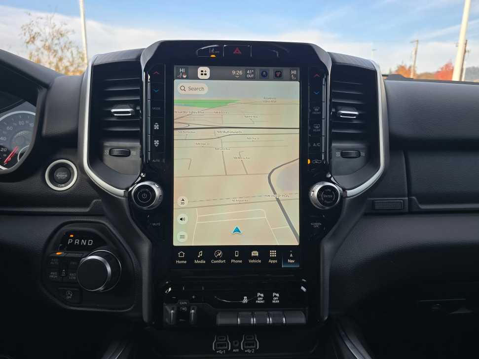 ENGINE: 5.7L V8 HEMI MDS VVT ETORQUE Active Noise Control System, Heavy Duty Engine Cooling, Passive Tuned Mass Damper, GVWR: 7,100 lbs, Dual Rear Exhaust w/Bright Tips, G/T Exhaust, 18 Aluminum Spare Wheel, BIG HORN LEVEL 2 EQUIPMENT GROUP SiriusXM Radio Service, Power Adjustable Pedals, Leather Wrapped Steering Wheel, 12 Touchscreen Display, Glove Box Lamp, Auto Power-Folding Mirrors, 115V Auxiliary Rear Power Outlet, Media Hub w/2 Charge Only USBs, Heated Front Seats, Security Alarm, Black Premium Power Mirrors, Premium Overhead Console, 9 Amplified Speakers w/Subwoofer, Disassociated Touchscreen Display, Body Color Fender Flares, Remote Tailgate Release, 115V Auxiliary Power Outlet, LED Dome Lamp w/On/Off Switch, Universal Garage Door Opener, 2nd Row In Floor Storage Bins, Sun Visors w/Illuminated Vanity Mirrors, LED Footwell Lighting, Rear Window Defroster, Rear View Auto Dim Mirror, Rear Power Sliding Window, GPS Navigation, Overhead LED Lamps, Wheels: 20 x 9 Aluminum Chrome Clad, NIGHT EDITION Tires: 275/55R20 OWL All Season, Bridgestone Brand Tires, Accent Color Premium Power Mirrors, Exterior Mirrors w/Supplemental Signals, Black Headlamp Bezels, Exterior Mirrors Courtesy Lamps, Grille Black Surround Black Mesh, Auto Power-Folding Mirrors, Wheels: 20 x 9.0 Aluminum Painted Clad, Auto Dim Exterior Driver Mirror, Black Exterior Truck Badging, Anti-Spin Differential Rear Axle, Accent Color Door Handles, Accent Color Tailgate Handle, Black Interior Accents, Dual Exhaust w/Black Tips, Body Color Front Bumper, Body Color Rear Bumper w/Step Pads, Black Tail Lamp Bezels, RAM Grille Badge - Black, Black Painted Exterior Mirrors Caps, BED UTILITY GROUP MOPAR Spray In Bedliner, MOPAR 4 Adjustable Cargo Tie-Down Hooks, Pick-Up Box Lighting, Exterior 115V AC Outlet, MOPAR FRONT & REAR RUBBER FLOOR MATS, TRANSMISSION: 8-SPEED AUTOMATIC (8HP75). Ram Big Horn with Granite Crystal Metallic Clearcoat exterior and Black interior features a 8 Cylinder Engine with 395 HP at 5600 RPM*.