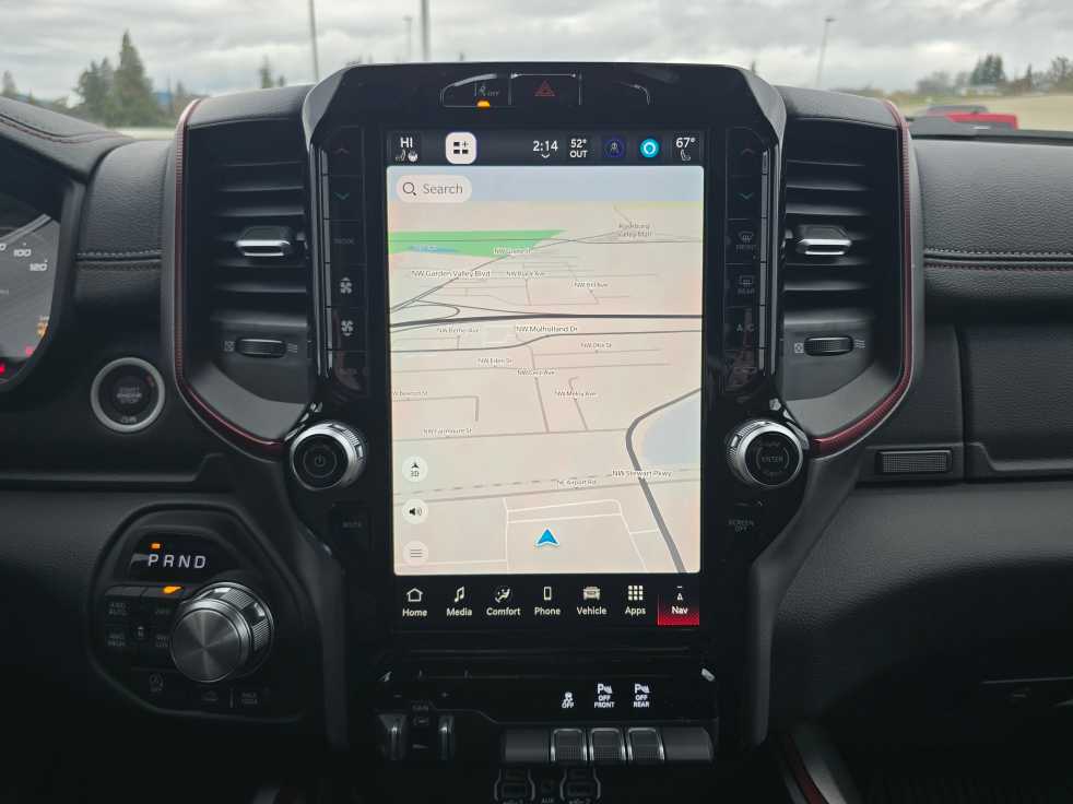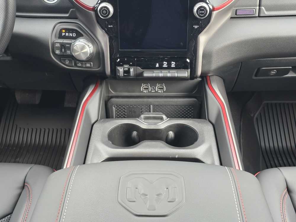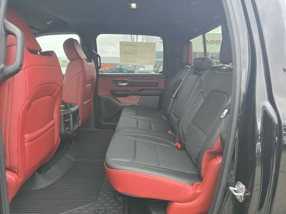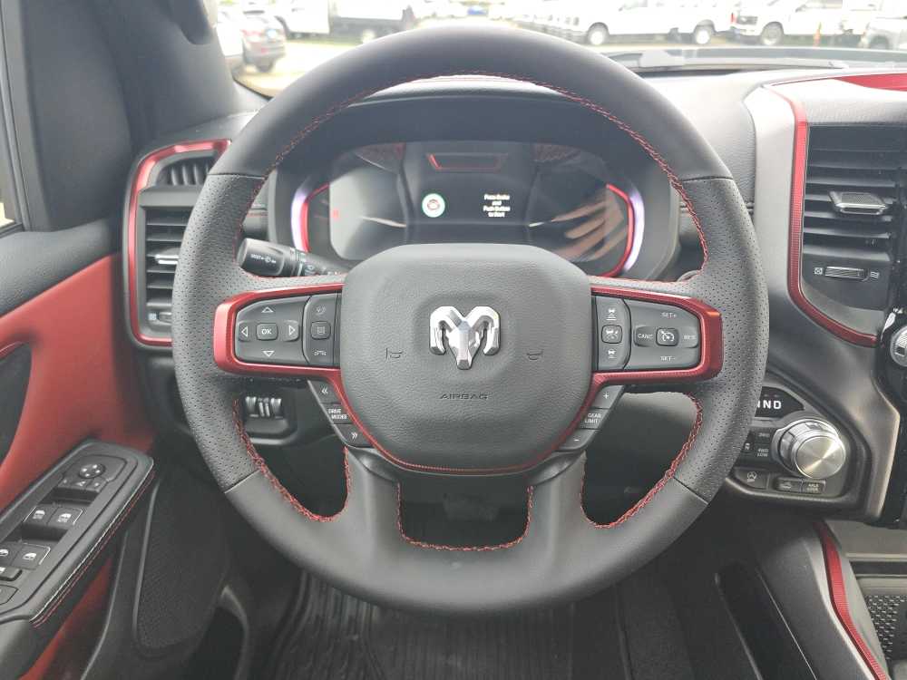 BED UTILITY GROUP MOPAR Spray In Bedliner, MOPAR 4 Adjustable Cargo Tie-Down Hooks, Exterior 115V AC Outlet, REBEL LEVEL 1 EQUIPMENT GROUP Rear Window Defroster, Wireless Charging Pad, Power Adjustable Pedals, Exterior Mirrors w/Supplemental Signals, Exterior Mirrors Courtesy Lamps, Auto Power-Folding Mirrors, Remote Tailgate Release, Auto Dim Exterior Driver Mirror, Black Premium Power Mirrors, TRANSMISSION: 8-SPEED AUTOMATIC (8HP75) (STD), ENGINE: 3.0L I6 HURRICANE SO TWIN TURBO ESS (STD). Ram Rebel with Diamond Black Crystal Pearlcoat exterior and Red/Black interior features a Straight 6 Cylinder Engine with 420 HP at 5200 RPM*.
