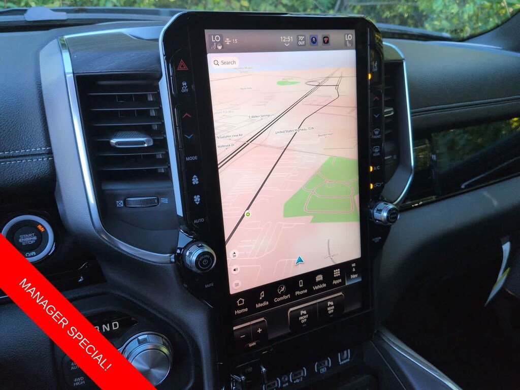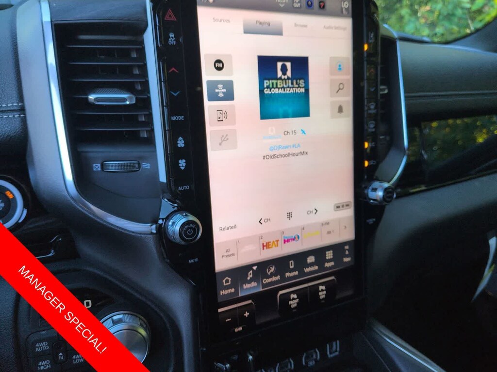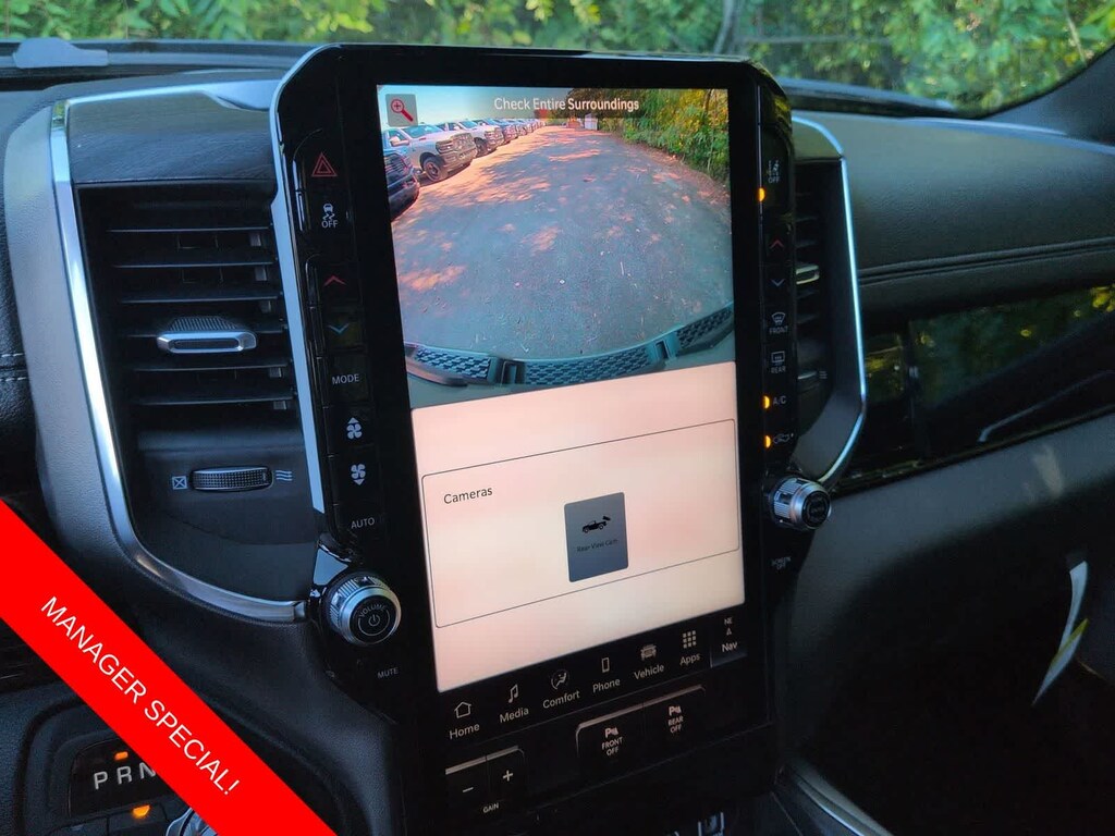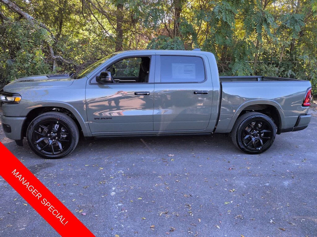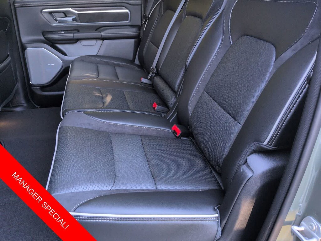 1500 Laramie is nicely equipped with Laramie Level 2 Equipment Group (14.4 Touchscreen Display, 4G LTE Wi-Fi Hot Spot, Cluster 12 TFT Color Display, Connected Travel and Traffic Services, Connectivity - US/Canada, Front Passenger Interactive Display, GPS Navigation, Harman/Kardon 19 Speaker Premium Sound, Integrated Center Stack Radio, Integrated Voice Command with Bluetooth, Power Tailgate, Radio: Uconnect 5 Nav with 14.4 Display, Rain Sensitive Windshield Wipers, SiriusXM Radio Service, SiriusXM with 360L, and USB Host Flip), Night Edition (Accent Color Door Handles, Accent Color Premium Power Mirrors, Accent Color Tailgate Handle, Anti-Spin Differential Rear Axle, Auto Power-Folding Mirrors, Auto-Dimming Exterior Driver Mirror, Black Exterior Truck Badging, Black Headlamp Bezels, Black Interior Accents, Black Painted Exterior Mirrors Caps, Black Tail Lamp Bezels, Body Color Front Bumper, Body Color Rear Bumper with Step Pads, Convex Wide-Angle Exterior Mirror Insert, Dual Exhaust with Black Tips, Exterior Mirrors Approach Lamps, Exterior Mirrors Courtesy Lamps, Exterior Mirrors with Heating Element, Exterior Mirrors with Memory, Exterior Mirrors with Supplemental Signals, Grille Surround 3 Black Texture 2 Black, Pirelli Brand Tires, Proximity Approach/Departure Lamps, RAM Grille Badge - Black, Sport Performance Hood, and Wheels: 22 x 9 Forged Aluminum), Quick Order Package 21H Laramie, 10 Speakers, 3.55 Rear Axle Ratio, 4-Wheel Disc Brakes, ABS brakes, Active Noise Control System, Adjustable pedals, Air Conditioning, Alloy wheels, AM/FM radio: SiriusXM with 360L, Apple CarPlay/Android Auto, Audio memory, Auto High-beam Headlights, Auto-dimming door mirrors, Auto-dimming Rear-View mirror, Automatic temperature control, Brake assist, Bumpers: chrome, Chrome Exterior Mirrors, Compass, Delay-off headlights, Dome Dual LED Reading Lamp, Driver door bin, Driver vanity mirror, Dual front impact airbags, Dual front side impact airbags, Dual-Pane Panoramic Sunroof, Electronic Stability Control, Front anti-roll bar, Front Bucket Seats, Front Center Armrest w/Storage, Front dual zone A/C, Front fog lights, Front reading lights, Front wheel independent suspension, Fully automatic headlights, Garage door transmitter, Heated door mirrors, Heated front seats, Heated rear seats, Heated steering wheel, Illuminated entry, Leather steering wheel, Leather Trimmed Bucket Seats, LED Dome/Reading Lamp, Low tire pressure warning, Memory seat, Navigation System, Occupant sensing airbag, Off-Road Information Pages, Outside temperature display, Overhead airbag, Overhead console, Panic alarm, ParkView Rear Back-Up Camera, Passenger door bin, Passenger vanity mirror, Pedal memory, Power Deployable Running Boards, Power door mirrors, Power driver seat, Power passenger seat, Power steering, Power windows, Radio data system, Radio: Uconnect 5 Navigation with 12.0 Display, RAM Grille Badge - Chrome, Rear anti-roll bar, Rear reading lights, Rear seat center armrest, Rear step bumper, Remote keyless entry, Security system, Speed control, Split folding rear seat, Steering wheel mounted audio controls, Tachometer, Telescoping steering wheel, Tilt steering wheel, Traction control, Trailer Brake Control, Trip computer, Turn signal indicator mirrors, Variably intermittent wipers, Ventilated front seats, Voltmeter, and Wheels: 20 x 9 Premium Paint/Polish.