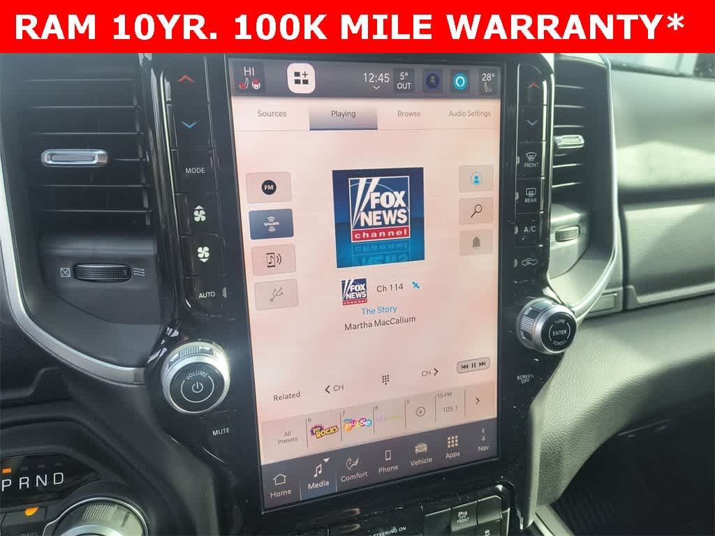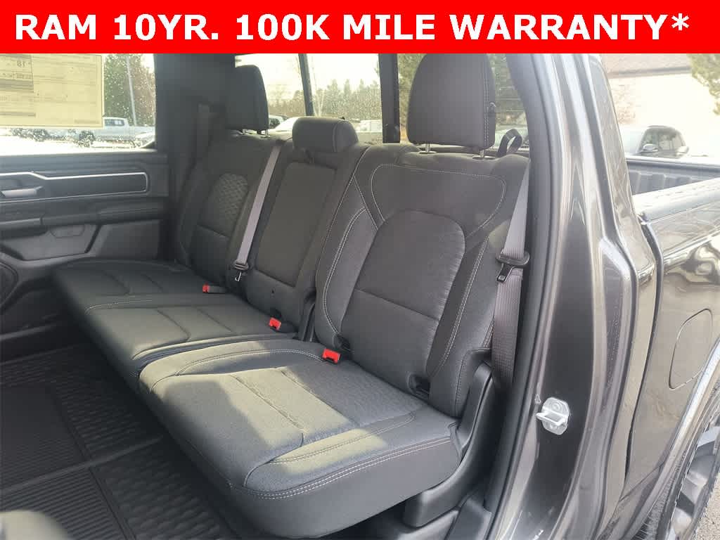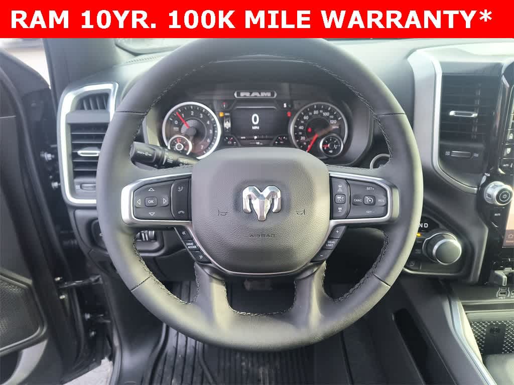 ENGINE: 5.7L V8 HEMI MDS VVT ETORQUE Active Noise Control System, Heavy Duty Engine Cooling, Passive Tuned Mass Damper, GVWR: 7,100 lbs, Dual Rear Exhaust w/Bright Tips, G/T Exhaust, 18 Aluminum Spare Wheel, BIG HORN LEVEL 2 EQUIPMENT GROUP SiriusXM Radio Service, Power Adjustable Pedals, Leather Wrapped Steering Wheel, 12 Touchscreen Display, Glove Box Lamp, Auto Power-Folding Mirrors, 115V Auxiliary Rear Power Outlet, Media Hub w/2 Charge Only USBs, Heated Front Seats, Security Alarm, Black Premium Power Mirrors, Premium Overhead Console, 9 Amplified Speakers w/Subwoofer, Disassociated Touchscreen Display, Body Color Fender Flares, Remote Tailgate Release, 115V Auxiliary Power Outlet, LED Dome Lamp w/On/Off Switch, Universal Garage Door Opener, 2nd Row In Floor Storage Bins, Sun Visors w/Illuminated Vanity Mirrors, LED Footwell Lighting, Rear Window Defroster, Rear View Auto Dim Mirror, Rear Power Sliding Window, GPS Navigation, Overhead LED Lamps, Wheels: 20 x 9 Aluminum Chrome Clad, DUAL-PANE PANORAMIC SUNROOF Dome Dual LED Reading Lamp, NIGHT EDITION Tires: 275/55R20 OWL All Season, Bridgestone Brand Tires, Accent Color Premium Power Mirrors, Exterior Mirrors w/Supplemental Signals, Black Headlamp Bezels, Exterior Mirrors Courtesy Lamps, Grille Black Surround Black Mesh, Auto Power-Folding Mirrors, Wheels: 20 x 9.0 Aluminum Painted Clad, Auto Dim Exterior Driver Mirror, Black Exterior Truck Badging, Anti-Spin Differential Rear Axle, Accent Color Door Handles, Accent Color Tailgate Handle, Black Interior Accents, Dual Exhaust w/Black Tips, Body Color Front Bumper, Body Color Rear Bumper w/Step Pads, Black Tail Lamp Bezels, RAM Grille Badge - Black, Black Painted Exterior Mirrors Caps, BED UTILITY GROUP MOPAR Spray In Bedliner, MOPAR 4 Adjustable Cargo Tie-Down Hooks, Pick-Up Box Lighting, Exterior 115V AC Outlet, MOPAR FRONT & REAR RUBBER FLOOR MATS, TRANSMISSION: 8-SPEED AUTOMATIC (8HP75).