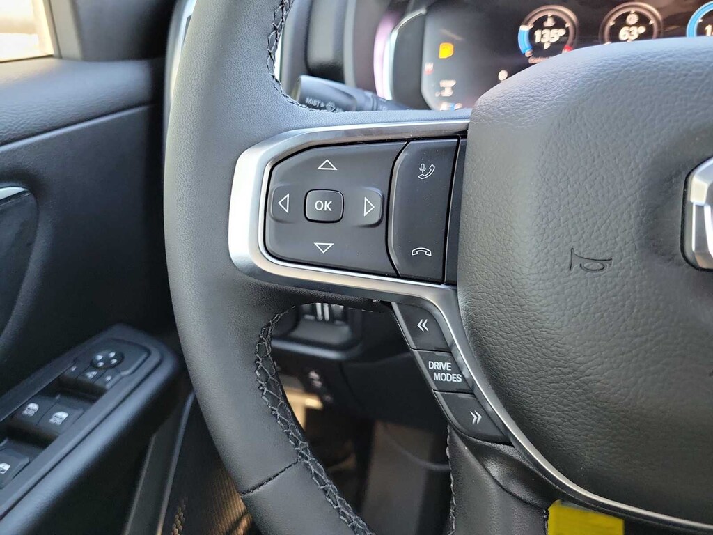 BIG HORN LEVEL 2 EQUIPMENT GROUP SiriusXM Radio Service, Power Adjustable Pedals, Leather Wrapped Steering Wheel, 12 Touchscreen Display, Glove Box Lamp, Auto Power-Folding Mirrors, 115V Auxiliary Rear Power Outlet, Media Hub w/2 Charge Only USBs, Heated Front Seats, Security Alarm, Black Premium Power Mirrors, Premium Overhead Console, 9 Amplified Speakers w/Subwoofer, Disassociated Touchscreen Display, Secondary Active Grille Shutters, Wireless Charging Pad, Body Color Fender Flares, Remote Tailgate Release, 115V Auxiliary Power Outlet, LED Dome Lamp w/On/Off Switch, Universal Garage Door Opener, 2nd Row In Floor Storage Bins, Sun Visors w/Illuminated Vanity Mirrors, LED Footwell Lighting, Rear Window Defroster, Rear View Auto Dim Mirror, Rear Power Sliding Window, GPS Navigation, NIGHT EDITION Tires: 275/55R20 OWL All Season, Bridgestone Brand Tires, Accent Color Premium Power Mirrors, Exterior Mirrors w/Supplemental Signals, Black Headlamp Bezels, Exterior Mirrors Courtesy Lamps, Grille Black Surround Black Mesh, Auto Power-Folding Mirrors, Wheels: 20 x 9.0 Aluminum Painted Clad, Auto Dim Exterior Driver Mirror, Black Exterior Truck Badging, Anti-Spin Differential Rear Axle, Accent Color Door Handles, Accent Color Tailgate Handle, Black Interior Accents, Dual Exhaust w/Black Tips, Body Color Front Bumper, Body Color Rear Bumper w/Step Pads, Black Tail Lamp Bezels, RAM Grille Badge - Black, Black Painted Exterior Mirrors Caps, BED UTILITY GROUP MOPAR Spray In Bedliner, MOPAR 4 Adjustable Cargo Tie-Down Hooks, Pick-Up Box Lighting, Exterior 115V AC Outlet, TRANSMISSION: 8-SPEED AUTOMATIC (8HP75), ENGINE: 5.7L V8 HEMI MDS VVT ETORQUE Active Noise Control System, Heavy Duty Engine Cooling, Passive Tuned Mass Damper, GVWR: 7,100 lbs, Dual Rear Exhaust w/Bright Tips, G/T Exhaust, 18 Aluminum Spare Wheel, 33 Gallon Fuel Tank, DUAL-PANE PANORAMIC SUNROOF Dome Dual LED Reading Lamp. Ram Big Horn with Bright White Clearcoat exterior and Black interior features a 8 Cylinder Engine with 305 HP at 6400 RPM*.