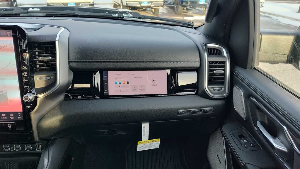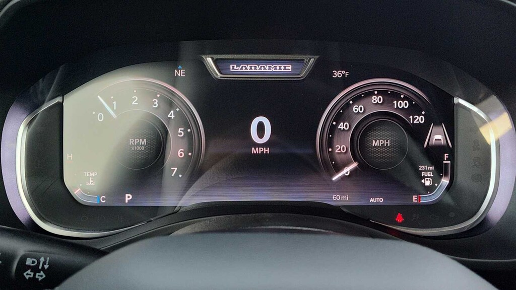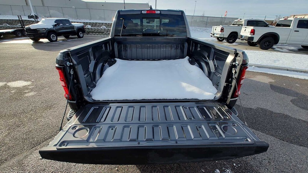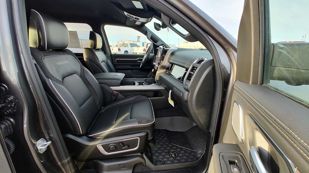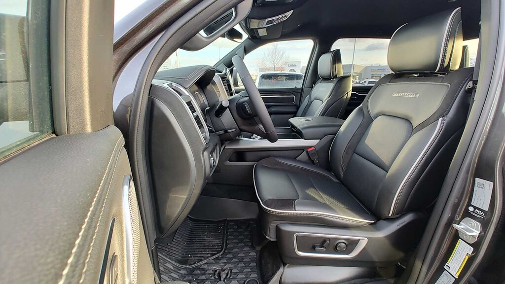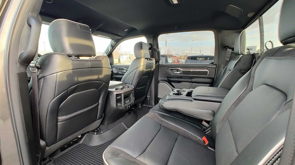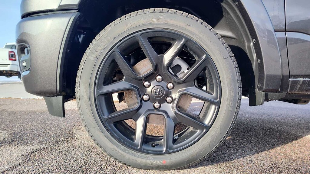 NIGHT EDITION Black Headlamp Bezels, Wheels: 22 x 9 Forged Aluminum, Tires: 285/45R22XL BSW All Season, Pirelli Brand Tires, Proximity Approach/Departure Lamps, Anti-Spin Differential Rear Axle, Accent Color Door Handles, Black Interior Accents, Body Color Front Bumper, Grille Surround 3 Black Texture 2 Black, Body Color Rear Bumper w/Step Pads, RAM Grille Badge - Black, Black Painted Exterior Mirrors Caps, Exterior Mirrors Approach Lamps, Accent Color Premium Power Mirrors, Sport Performance Hood, Black Exterior Truck Badging, Accent Color Tailgate Handle, Dual Exhaust w/Black Tips, Black Tail Lamp Bezels, LARAMIE LEVEL 2 EQUIPMENT GROUP Rain Sensitive Windshield Wipers, 14.4 Touchscreen Display, Front Passenger Interactive Display, Radio: Uconnect 5 Nav w/14.4 Display, harman/kardon® 19 Speaker Premium Sound, Cluster 12 TFT Color Display, Power Tailgate, ENGINE: 5.7L V8 HEMI MDS VVT ETORQUE 48V Belt Starter Generator, Heavy Duty Engine Cooling, Passive Tuned Mass Damper, Delete Alternator, Passive Cold End Exhaust, 18 Aluminum Spare Wheel, MOPAR FRONT & REAR RUBBER FLOOR MATS, TRANSMISSION: 8-SPEED AUTOMATIC (8HP75) (STD). Ram Laramie with Granite Crystal Metallic Clearcoat exterior and Black interior features a 8 Cylinder Engine with 395 HP at 5600 RPM*.