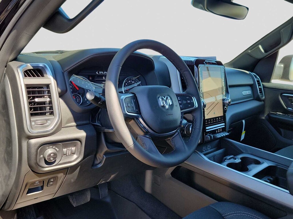 BIG HORN LEVEL 2 EQUIPMENT GROUP SiriusXM Radio Service, Power Adjustable Pedals, Leather Wrapped Steering Wheel, 12 Touchscreen Display, Glove Box Lamp, Auto Power-Folding Mirrors, 115V Auxiliary Rear Power Outlet, Media Hub w/2 Charge Only USBs, Heated Front Seats, Security Alarm, Black Premium Power Mirrors, Premium Overhead Console, 9 Amplified Speakers w/Subwoofer, Disassociated Touchscreen Display, Secondary Active Grille Shutters, Wireless Charging Pad, Body Color Fender Flares, Remote Tailgate Release, 115V Auxiliary Power Outlet, LED Dome Lamp w/On/Off Switch, Universal Garage Door Opener, 2nd Row In Floor Storage Bins, Sun Visors w/Illuminated Vanity Mirrors, LED Footwell Lighting, Rear Window Defroster, Rear View Auto Dim Mirror, Rear Power Sliding Window, GPS Navigation, ENGINE: 3.0L I6 HURRICANE SO TWIN TURBO ESS Aux Battery, 700 Amp Maintenance Free Battery, Active Noise Control System, GVWR: 7,100 lbs, 3.55 Rear Axle Ratio, Dual Rear Exhaust w/Bright Tips, Start-Stop Dual Battery System, 230 Amp Alternator, NIGHT EDITION Tires: 275/55R20 OWL All Season, Bridgestone Brand Tires, Accent Color Premium Power Mirrors, Exterior Mirrors w/Supplemental Signals, Black Headlamp Bezels, Exterior Mirrors Courtesy Lamps, Grille Black Surround Black Mesh, Auto Power-Folding Mirrors, Wheels: 20 x 9.0 Aluminum Painted Clad, Auto Dim Exterior Driver Mirror, Black Exterior Truck Badging, Anti-Spin Differential Rear Axle, Accent Color Door Handles, Accent Color Tailgate Handle, Black Interior Accents, Dual Exhaust w/Black Tips, Body Color Front Bumper, Body Color Rear Bumper w/Step Pads, Black Tail Lamp Bezels, RAM Grille Badge - Black, Black Painted Exterior Mirrors Caps, PROTECTION GROUP Transfer Case Skid Plate, Steering Gear Skid Plate, Fuel Tank Skid Plate, Tow Hooks, MOPAR FRONT & REAR RUBBER FLOOR MATS, TRANSMISSION: 8-SPEED AUTOMATIC (8HP75). Ram Lone Star with Diamond Black Crystal Pearlcoat exterior and Black interior features a Straight 6 Cylinder Engine with 305 HP at 6400 RPM*.