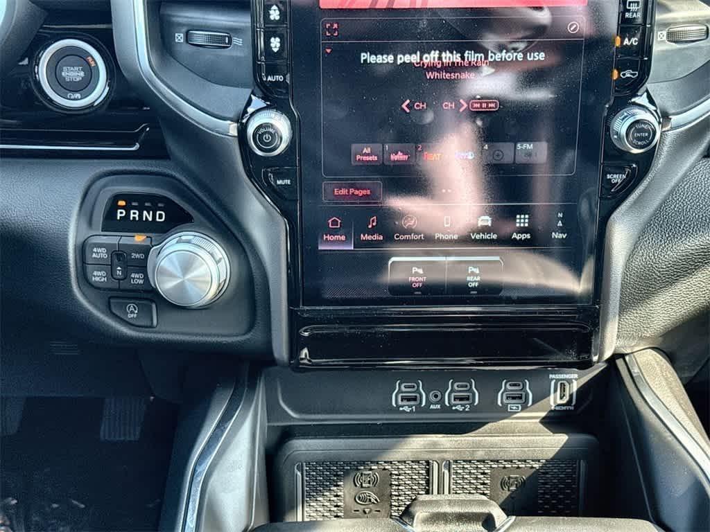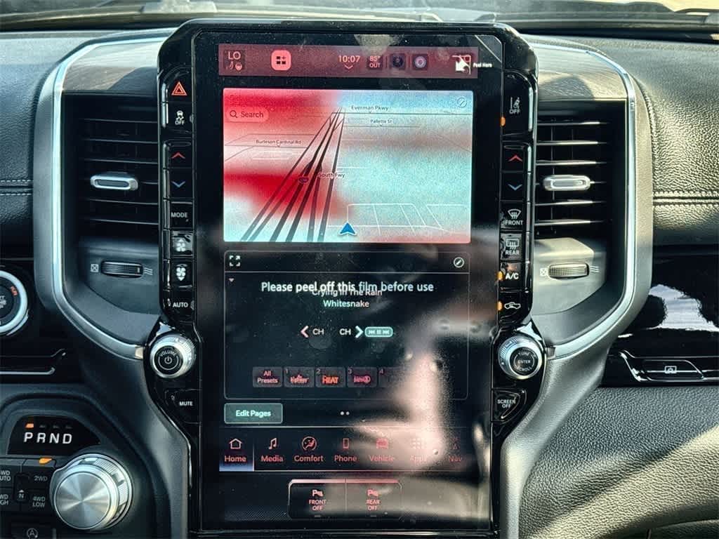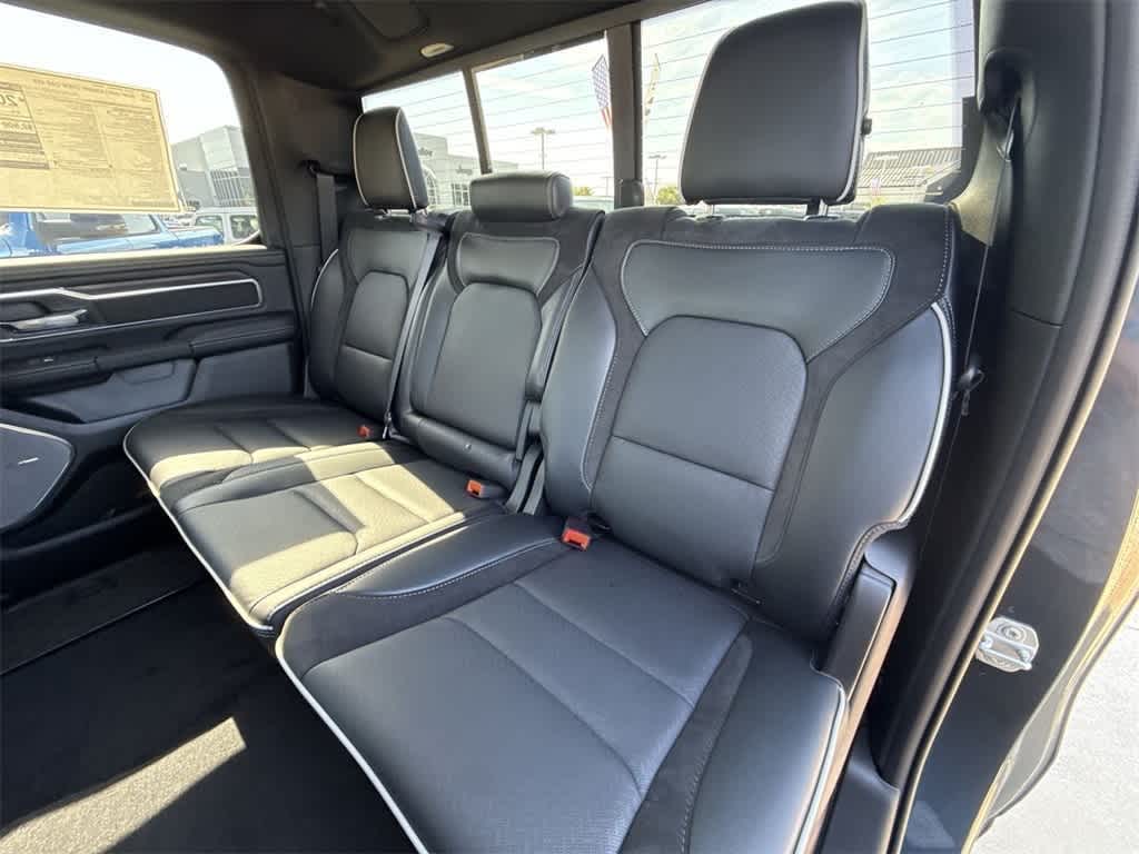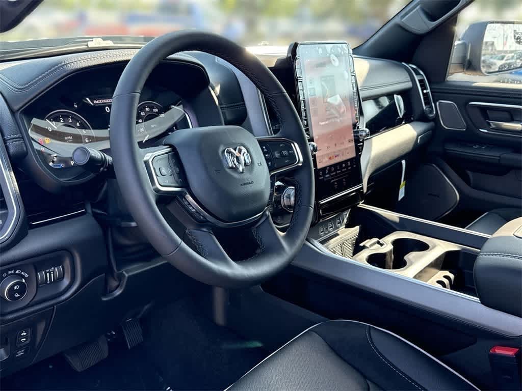 NIGHT EDITION Black Headlamp Bezels, Wheels: 22 x 9 Forged Aluminum, Tires: 285/45R22XL BSW All Season, Pirelli Brand Tires, Proximity Approach/Departure Lamps, Anti-Spin Differential Rear Axle, Accent Color Door Handles, Black Interior Accents, Body Color Front Bumper, Grille Surround 3 Black Texture 2 Black, Body Color Rear Bumper w/Step Pads, RAM Grille Badge - Black, Black Painted Exterior Mirrors Caps, Exterior Mirrors Approach Lamps, Accent Color Premium Power Mirrors, Sport Performance Hood, Black Exterior Truck Badging, Accent Color Tailgate Handle, Dual Exhaust w/Black Tips, Black Tail Lamp Bezels, LARAMIE LEVEL 2 EQUIPMENT GROUP Rain Sensitive Windshield Wipers, 14.4 Touchscreen Display, Front Passenger Interactive Display, Radio: Uconnect 5 Nav w/14.4 Display, harman/kardon® 19 Speaker Premium Sound, Cluster 12 TFT Color Display, Power Tailgate, BED UTILITY GROUP MOPAR Spray In Bedliner, MOPAR 4 Adjustable Cargo Tie-Down Hooks, Exterior 115V AC Outlet, TRANSMISSION: 8-SPEED AUTOMATIC (8HP75) (STD), ENGINE: 3.0L I6 HURRICANE SO TWIN TURBO ESS (STD). Ram Laramie with Forged Blue Metallic exterior and Black interior features a Straight 6 Cylinder Engine with 420 HP at 5200 RPM*.