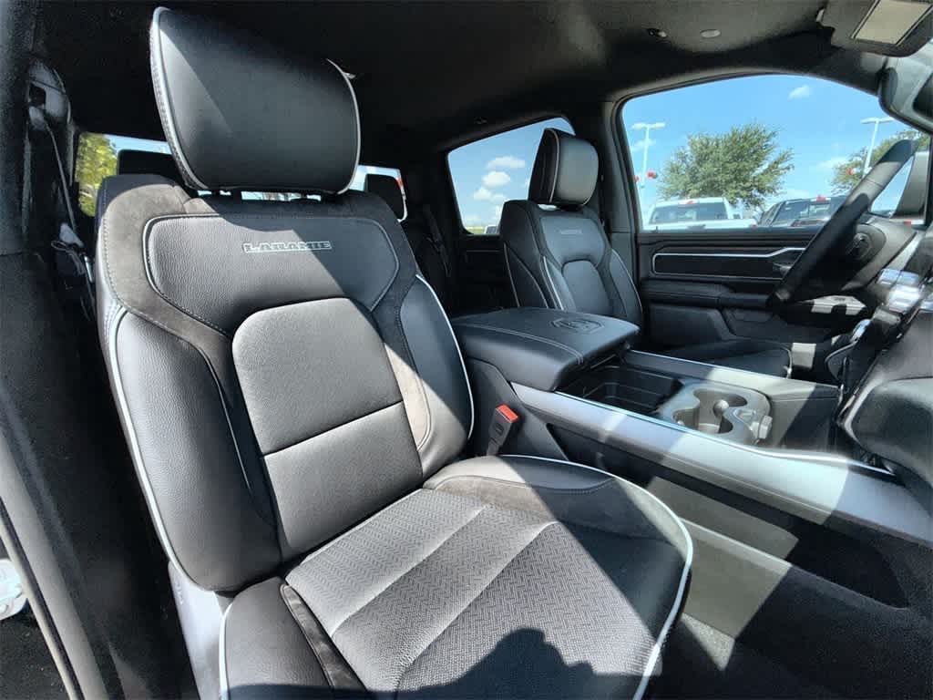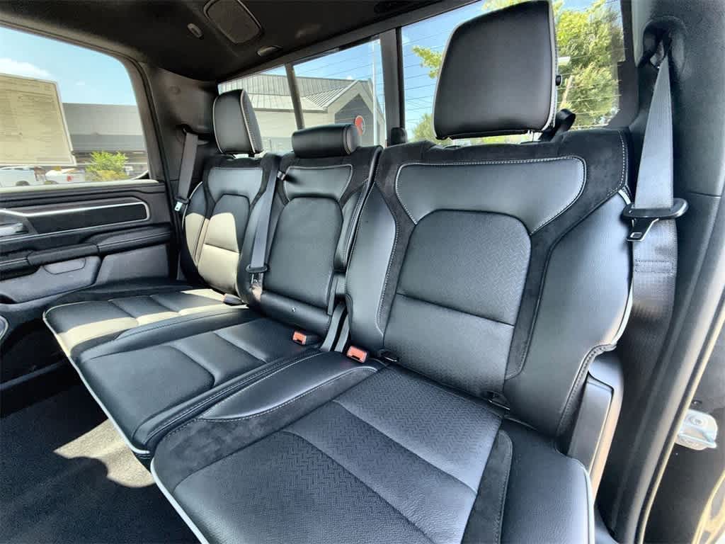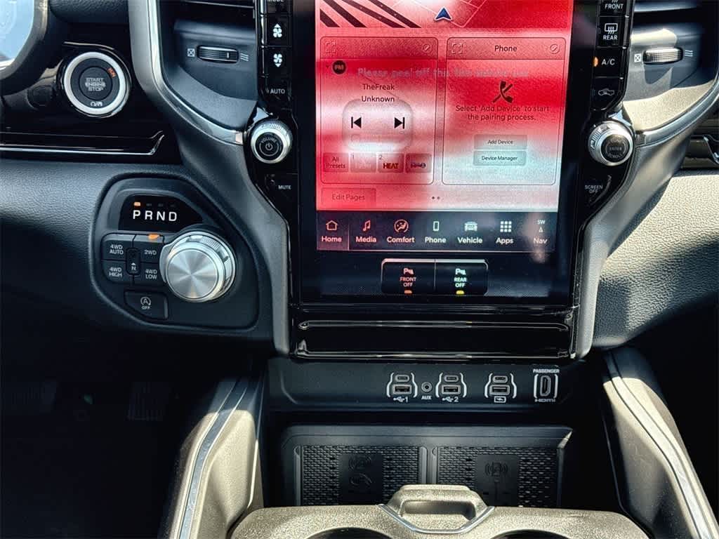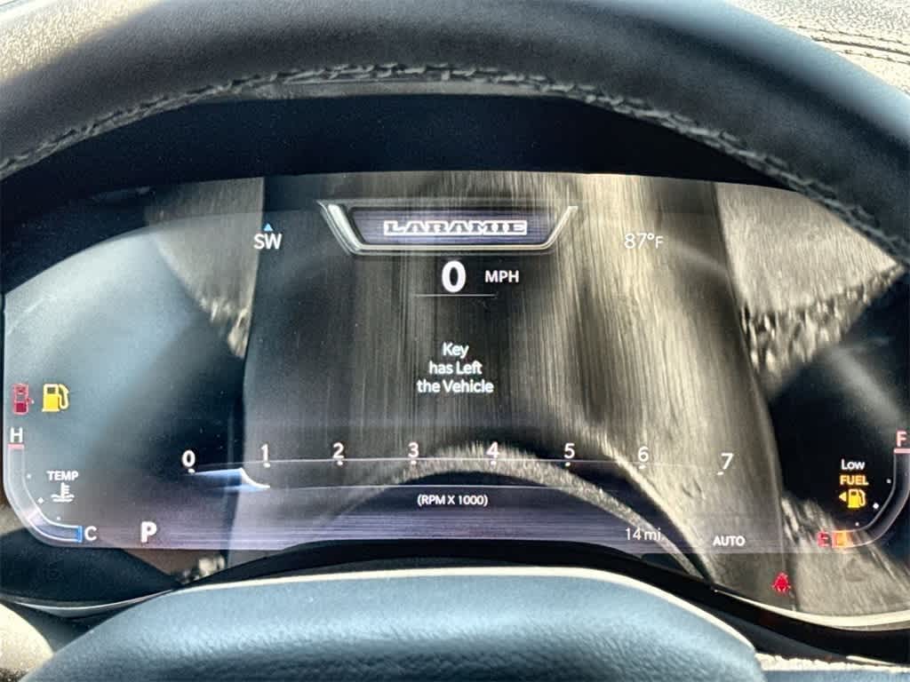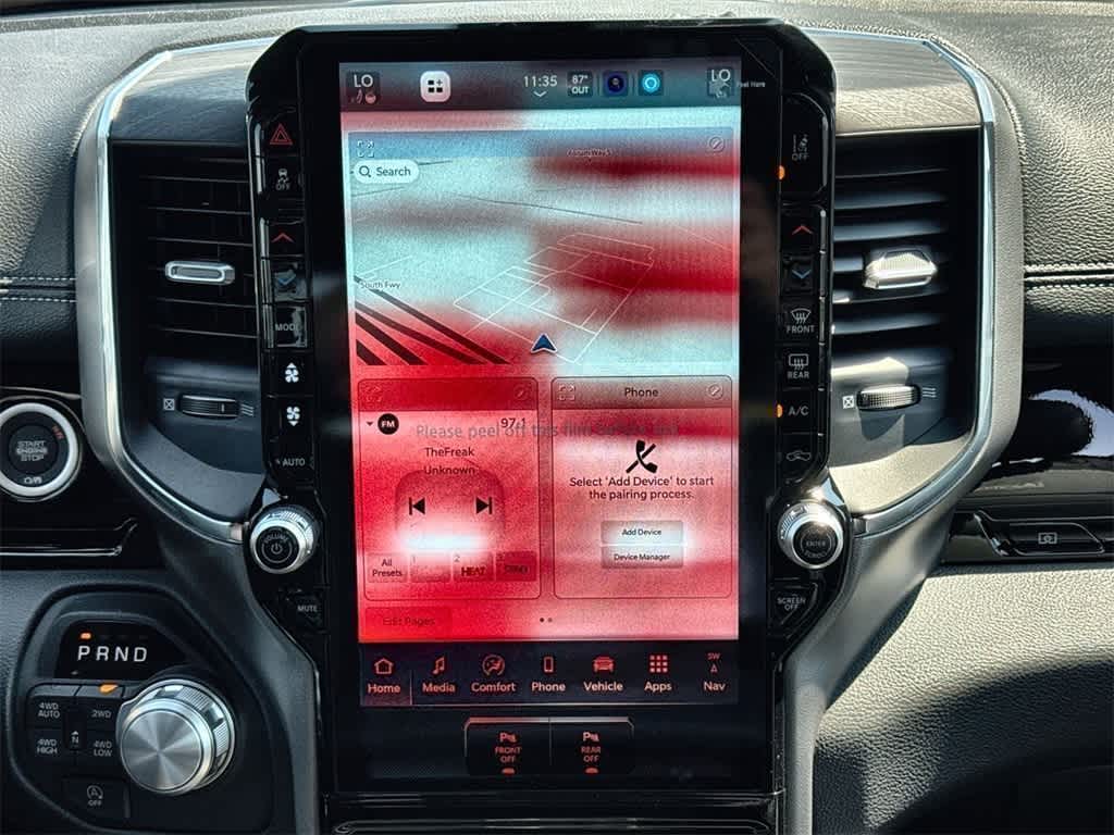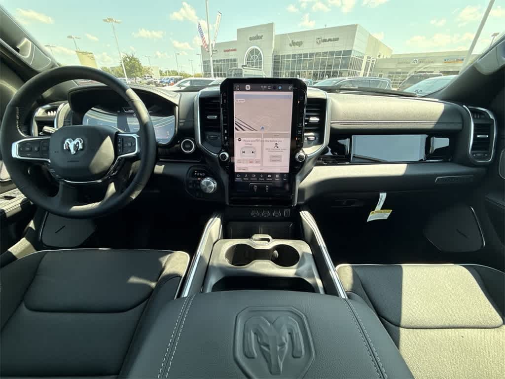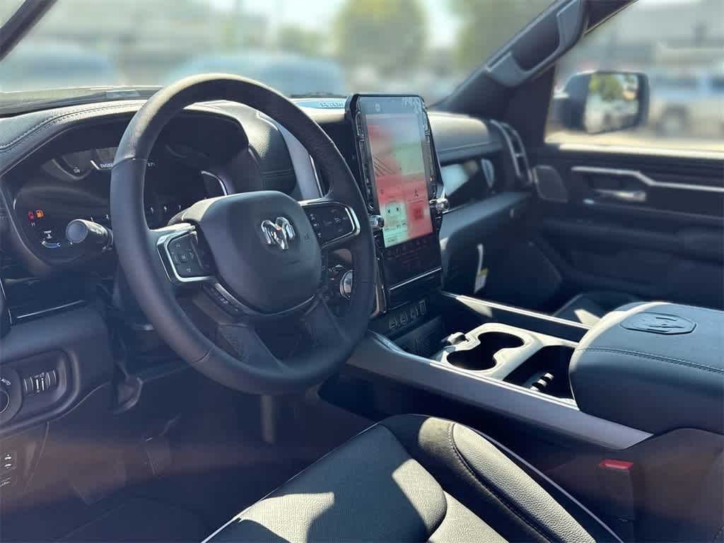 NIGHT EDITION Black Headlamp Bezels, Wheels: 22 x 9 Forged Aluminum, Tires: 285/45R22XL BSW All Season, Pirelli Brand Tires, Proximity Approach/Departure Lamps, Anti-Spin Differential Rear Axle, Accent Color Door Handles, Black Interior Accents, Body Color Front Bumper, Grille Surround 3 Black Texture 2 Black, Body Color Rear Bumper w/Step Pads, RAM Grille Badge - Black, Black Painted Exterior Mirrors Caps, Exterior Mirrors Approach Lamps, Accent Color Premium Power Mirrors, Sport Performance Hood, Black Exterior Truck Badging, Accent Color Tailgate Handle, Dual Exhaust w/Black Tips, Black Tail Lamp Bezels, LARAMIE LEVEL 2 EQUIPMENT GROUP Rain Sensitive Windshield Wipers, 14.4 Touchscreen Display, Front Passenger Interactive Display, Radio: Uconnect 5 Nav w/14.4 Display, harman/kardon® 19 Speaker Premium Sound, Cluster 12 TFT Color Display, Power Tailgate, BED UTILITY GROUP MOPAR Spray In Bedliner, MOPAR 4 Adjustable Cargo Tie-Down Hooks, Exterior 115V AC Outlet, MOPAR BLACK TUBULAR SIDE STEPS, TRANSMISSION: 8-SPEED AUTOMATIC (8HP75) (STD), ENGINE: 3.0L I6 HURRICANE SO TWIN TURBO ESS (STD). Ram Laramie with Diamond Black Crystal Pearlcoat exterior and Black interior features a Straight 6 Cylinder Engine with 420 HP at 5200 RPM*.