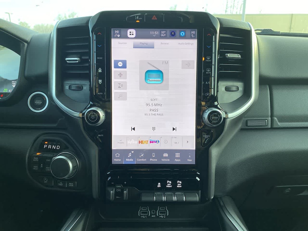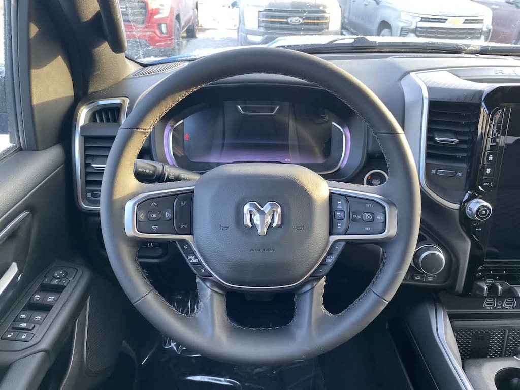 ENGINE: 5.7L V8 HEMI MDS VVT ETORQUE Active Noise Control System, Heavy Duty Engine Cooling, Passive Tuned Mass Damper, GVWR: 7,100 lbs, Dual Rear Exhaust w/Bright Tips, G/T Exhaust, 18 Aluminum Spare Wheel, BIG HORN LEVEL 2 EQUIPMENT GROUP SiriusXM Radio Service, Power Adjustable Pedals, Leather Wrapped Steering Wheel, 12 Touchscreen Display, Glove Box Lamp, Auto Power-Folding Mirrors, 115V Auxiliary Rear Power Outlet, Media Hub w/2 Charge Only USBs, Heated Front Seats, Security Alarm, Black Premium Power Mirrors, Premium Overhead Console, 9 Amplified Speakers w/Subwoofer, Disassociated Touchscreen Display, Body Color Fender Flares, Remote Tailgate Release, 115V Auxiliary Power Outlet, LED Dome Lamp w/On/Off Switch, Universal Garage Door Opener, 2nd Row In Floor Storage Bins, Sun Visors w/Illuminated Vanity Mirrors, LED Footwell Lighting, Rear Window Defroster, Rear View Auto Dim Mirror, Rear Power Sliding Window, GPS Navigation, Overhead LED Lamps, Wheels: 20 x 9 Aluminum Chrome Clad, NIGHT EDITION Tires: 275/55R20 OWL All Season, Bridgestone Brand Tires, Accent Color Premium Power Mirrors, Exterior Mirrors w/Supplemental Signals, Black Headlamp Bezels, Exterior Mirrors Courtesy Lamps, Grille Black Surround Black Mesh, Auto Power-Folding Mirrors, Wheels: 20 x 9.0 Aluminum Painted Clad, Auto Dim Exterior Driver Mirror, Black Exterior Truck Badging, Anti-Spin Differential Rear Axle, Accent Color Door Handles, Accent Color Tailgate Handle, Black Interior Accents, Dual Exhaust w/Black Tips, Body Color Front Bumper, Body Color Rear Bumper w/Step Pads, Black Tail Lamp Bezels, RAM Grille Badge - Black, Black Painted Exterior Mirrors Caps, OFF ROAD GROUP Front Extra HD Shock Absorbers, Off Road Decals, Rear Extra HD Shock Absorbers, Steering Gear Skid Plate, Tow Hooks, E-Locker Rear Axle, Transfer Case Skid Plate, Fuel Tank Skid Plate, Raised Ride Height, Selec-Speed Control, BED UTILITY GROUP MOPAR Spray In Bedliner, MOPAR 4 Adjustable Cargo Tie-Down Hooks, Pick-Up Box Lighting, Exterior 115V AC Outlet, TRANSMISSION: 8-SPEED AUTOMATIC (8HP75). Ram Big Horn with Hydro Blue Pearlcoat exterior and Black interior features a 8 Cylinder Engine with 395 HP at 5600 RPM*.