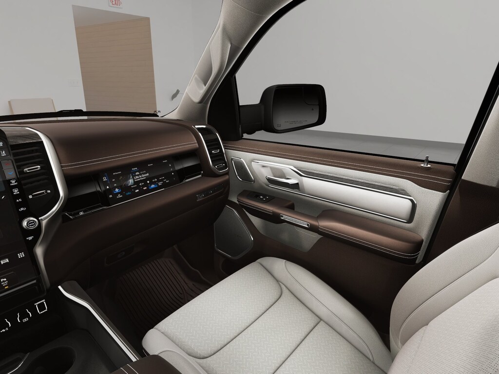 ADVANCED SAFETY GROUP II Exterior Mirrors Approach Lamps, Active Driving Assist System, Surround View Camera System, Evasive Steer Assist, Drowsy Driver Detection, Intersection Collision Assist System, Traffic Sign Recognition, 12-Way/1-Way Trailer Connector, LARAMIE LEVEL 2 EQUIPMENT GROUP Rain Sensitive Windshield Wipers, 14.4 Touchscreen Display, Front Passenger Interactive Display, Radio: Uconnect 5 Nav w/14.4 Display, harman/kardon® 19 Speaker Premium Sound, Cluster 12 TFT Color Display, Power Tailgate, LARAMIE SOUTHWEST EDITION Accent Color Premium Power Mirrors, Power Deployable Running Boards, Grille Surround 3 Body Color Tex 4 Chrome, Trailer Brake Control, Tow Hooks, MOPAR Lockable Console Storage, Body Color Front Bumper, Dual-Pane Panoramic Sunroof, LED Dome/Reading Lamp, Dome Dual LED Reading Lamp, Body Color Rear Bumper w/Step Pads, Black Painted Exterior Mirrors Caps, WHEELS: 22 X 9 FORGED ALUMINUM Tires: 285/45R22XL BSW All Season, Pirelli Brand Tires, TECHNOLOGY GROUP Head Up Display, LED CHMSL Lamp, 12-Way/1-Way Trailer Connector, ANTI-SPIN DIFFERENTIAL REAR AXLE, MOPAR FRONT & REAR RUBBER FLOOR MATS, TRANSMISSION: 8-SPEED AUTOMATIC (8HP75) (STD), ENGINE: 3.0L I6 HURRICANE SO TWIN TURBO ESS (STD). Ram Laramie with Forged Blue Metallic exterior and Sea Salt/Bison Brown interior features a Straight 6 Cylinder Engine with 420 HP at 5200 RPM*.