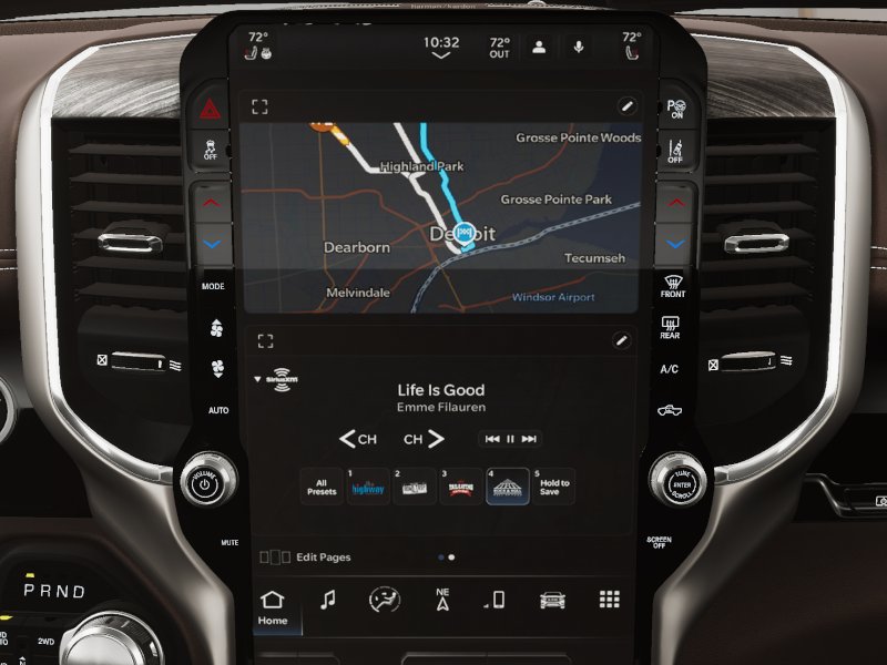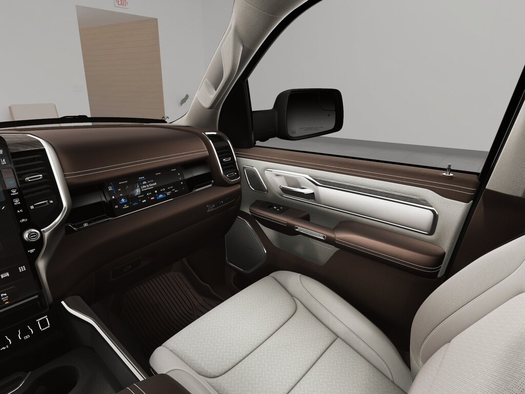 ADVANCED SAFETY GROUP II Exterior Mirrors Approach Lamps, Active Driving Assist System, Surround View Camera System, Evasive Steer Assist, Drowsy Driver Detection, Intersection Collision Assist System, Traffic Sign Recognition, 12-Way/1-Way Trailer Connector, LARAMIE LEVEL 2 EQUIPMENT GROUP Rain Sensitive Windshield Wipers, 14.4 Touchscreen Display, Front Passenger Interactive Display, Radio: Uconnect 5 Nav w/14.4 Display, harman/kardon® 19 Speaker Premium Sound, Cluster 12 TFT Color Display, Power Tailgate, LARAMIE SOUTHWEST EDITION Accent Color Premium Power Mirrors, Power Deployable Running Boards, Grille Surround 3 Body Color Tex 4 Chrome, Trailer Brake Control, Tow Hooks, MOPAR Lockable Console Storage, Body Color Front Bumper, Dual-Pane Panoramic Sunroof, LED Dome/Reading Lamp, Dome Dual LED Reading Lamp, Body Color Rear Bumper w/Step Pads, Black Painted Exterior Mirrors Caps, WHEELS: 22 X 9 FORGED ALUMINUM Tires: 285/45R22XL BSW All Season, Pirelli Brand Tires, TECHNOLOGY GROUP Head Up Display, LED CHMSL Lamp, 12-Way/1-Way Trailer Connector, ANTI-SPIN DIFFERENTIAL REAR AXLE, MOPAR FRONT & REAR RUBBER FLOOR MATS, TRANSMISSION: 8-SPEED AUTOMATIC (8HP75) (STD), ENGINE: 3.0L I6 HURRICANE SO TWIN TURBO ESS (STD). Ram Laramie with Diamond Black Crystal Pearlcoat exterior and Sea Salt/Bison Brown interior features a Straight 6 Cylinder Engine with 420 HP at 5200 RPM*.