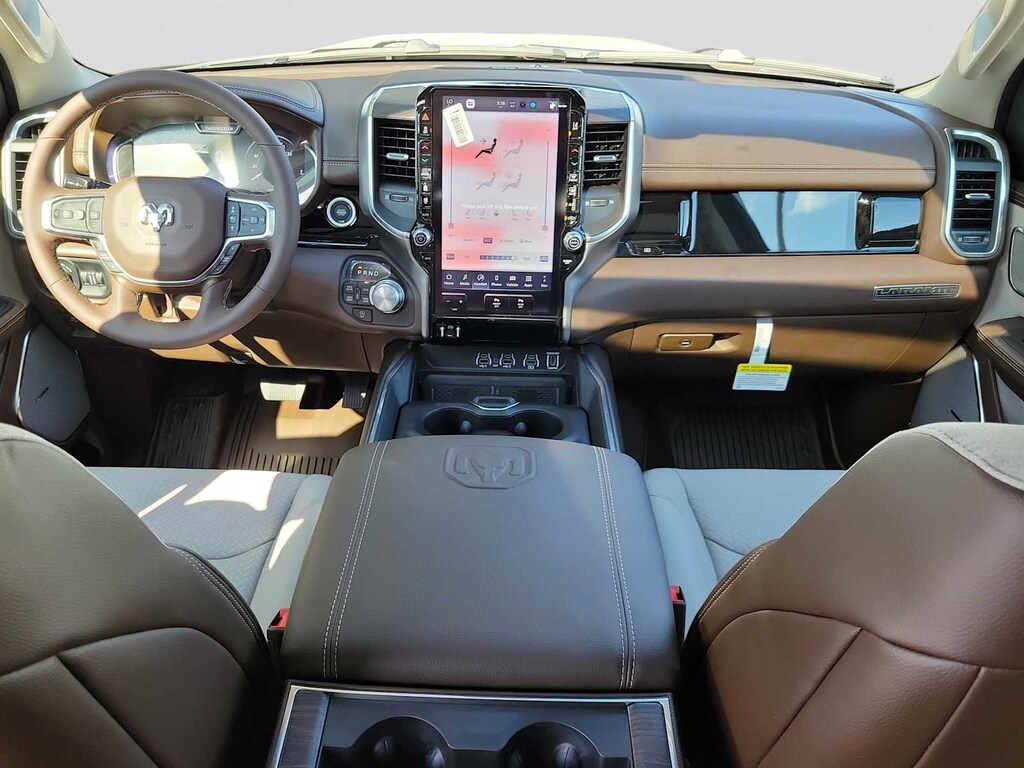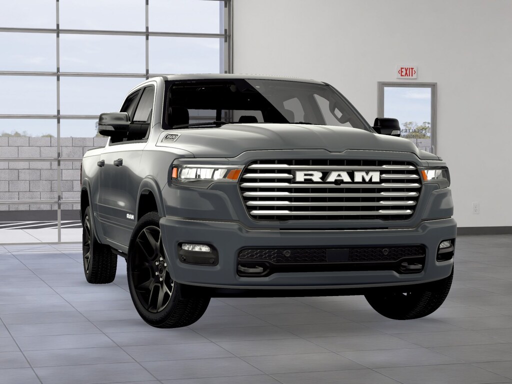 ADVANCED SAFETY GROUP II Exterior Mirrors Approach Lamps, Active Driving Assist System, Surround View Camera System, Evasive Steer Assist, Drowsy Driver Detection, Intersection Collision Assist System, Traffic Sign Recognition, 12-Way/1-Way Trailer Connector, LARAMIE LEVEL 2 EQUIPMENT GROUP Rain Sensitive Windshield Wipers, 14.4 Touchscreen Display, Front Passenger Interactive Display, Radio: Uconnect 5 Nav w/14.4 Display, harman/kardon® 19 Speaker Premium Sound, Cluster 12 TFT Color Display, Power Tailgate, LARAMIE SOUTHWEST EDITION Accent Color Premium Power Mirrors, Power Deployable Running Boards, Grille Surround 3 Body Color Tex 4 Chrome, Trailer Brake Control, Tow Hooks, MOPAR Lockable Console Storage, Body Color Front Bumper, Dual-Pane Panoramic Sunroof, LED Dome/Reading Lamp, Dome Dual LED Reading Lamp, Body Color Rear Bumper w/Step Pads, Black Painted Exterior Mirrors Caps, WHEELS: 22 X 9 FORGED ALUMINUM Tires: 285/45R22XL BSW All Season, Pirelli Brand Tires, TECHNOLOGY GROUP Head Up Display, LED CHMSL Lamp, 12-Way/1-Way Trailer Connector, ANTI-SPIN DIFFERENTIAL REAR AXLE, MOPAR FRONT & REAR RUBBER FLOOR MATS, TRANSMISSION: 8-SPEED AUTOMATIC (8HP75) (STD), ENGINE: 3.0L I6 HURRICANE SO TWIN TURBO ESS (STD). Ram Laramie with Billet Silver Metallic Clearcoat exterior and Sea Salt/Bison Brown interior features a Straight 6 Cylinder Engine with 420 HP at 5200 RPM*.