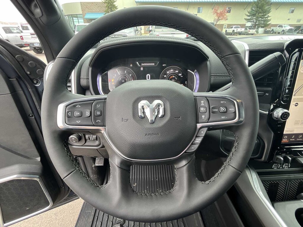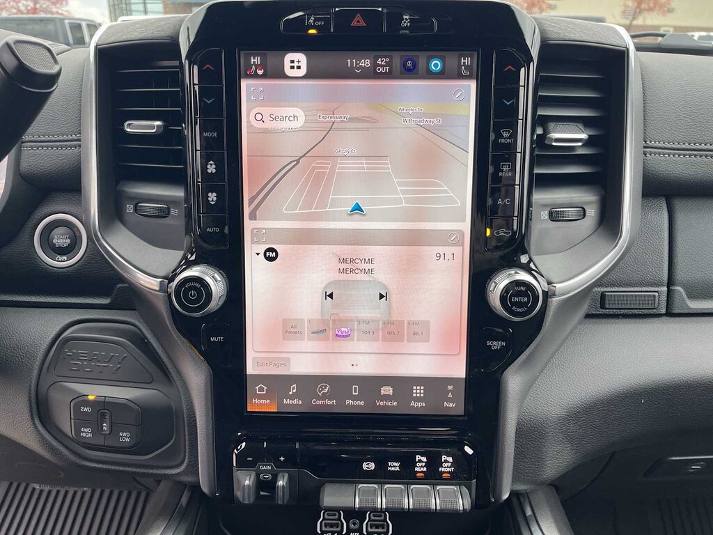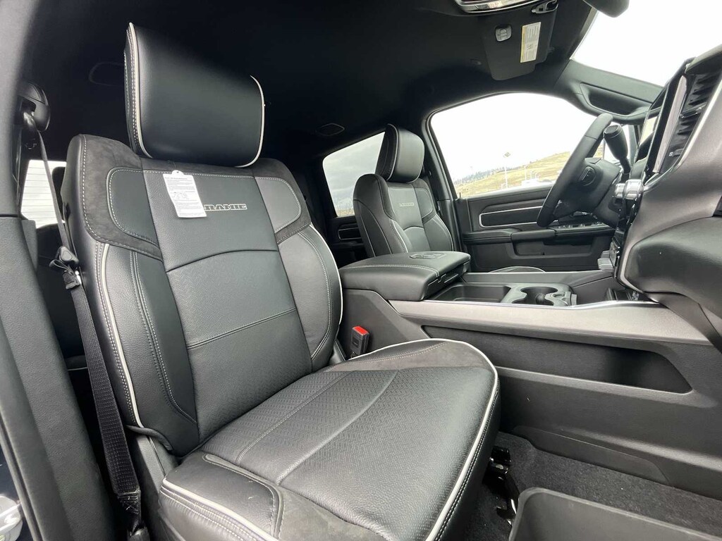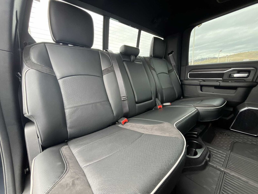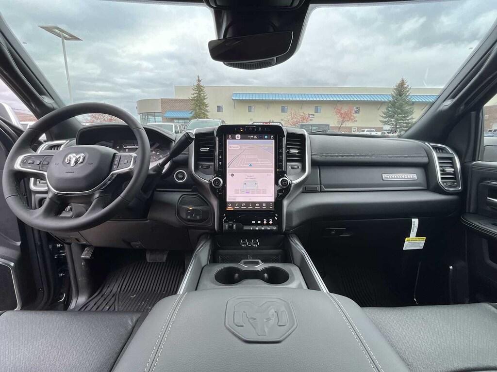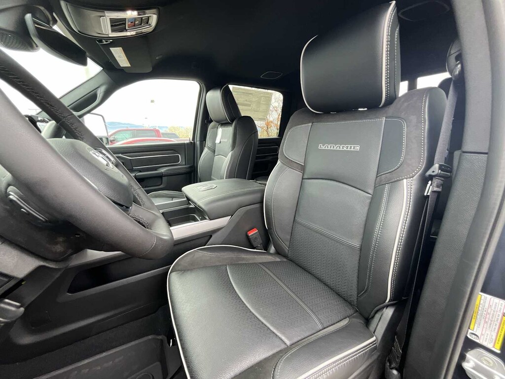 ENGINE: 6.7L I6 CUMMINS HO TURBO DIESEL Selective Catalytic Reduction (Urea), Dual 730 Amp Maintenance Free Batteries, Cummins Turbo Diesel Badge, Heavy Duty Engine Cooling, Diesel Exhaust Brake, Supplemental Heater, 3.42 Axle Ratio, Front Bumper Sight Shields, Capless Fuel Fill w/o Discriminator, GVWR: 11,040 lbs, LARAMIE LEVEL 1 PLUS EQUIPMENT GROUP CTR Stop Lamp w/Cargo View Camera, Rain Sensitive Windshield Wipers, Power Adjustable Pedals w/Memory, LED Bed Lighting, Traffic Sign Recognition, Adaptive Steering System, Auto Dim Exterior Mirror, Anti-Spin Differential Rear Axle, Heated Second Row Seats, Drowsy Driver Detection, MOPAR Deployable Bed Step, Foam Bottle Insert (Door Trim Panel), Active Lane Management System, Power Heated Fold Telescopic Mirrors w/Memory, MOPAR Spray In Bedliner, Remote Tailgate Release, Auto High Beam Headlamp Control, Exterior Mirrors w/Memory, 2nd Row In Floor Storage Bins, Auto Dim Exterior Passenger Mirror, Auto Adjust In Reverse Exterior Mirrors, MOPAR FRONT & REAR RUBBER FLOOR MATS, TRANSMISSION: 8-SPEED TORQUEFLITE HD AUTOMATIC, BLACK, LEATHER TRIMMED BUCKET SEATS Bucket Seats, Dual Wireless Charging Pad, Ventilated Front Seats, Radio/Driver Seat/Mirrors/Pedals Memory, Full Length Upgraded Floor Console. Ram Laramie with Forged Blue Metallic exterior and Black interior features a Straight 6 Cylinder Engine with 430 HP at 2800 RPM*. Approx. Original Base Sticker Price: $84,200*.