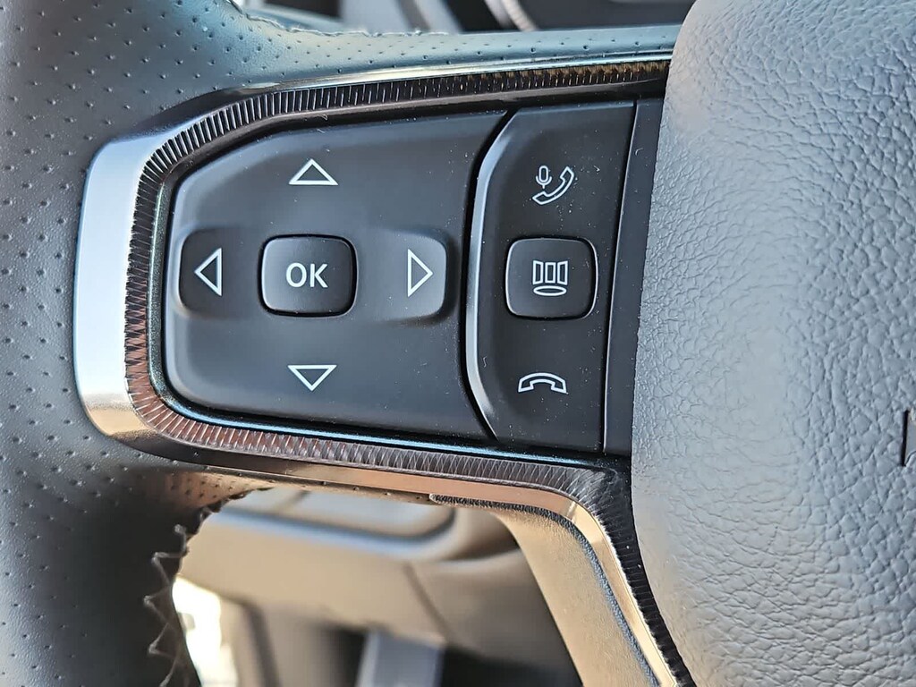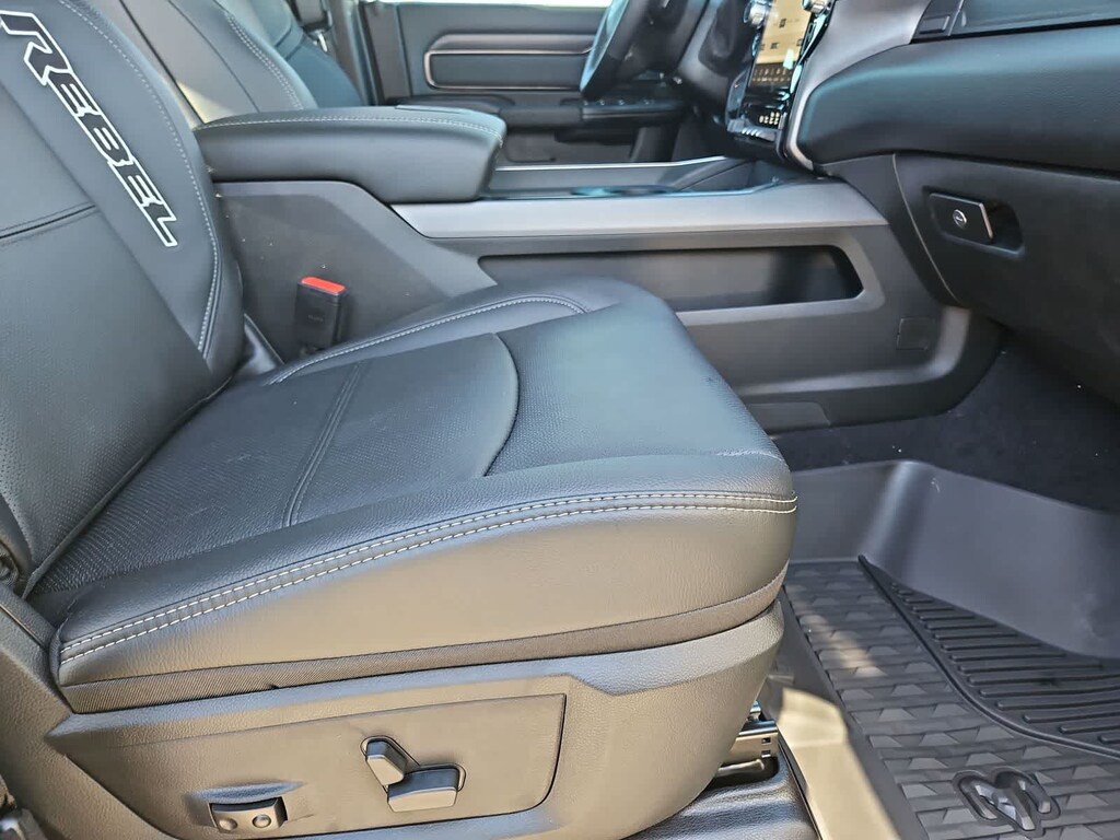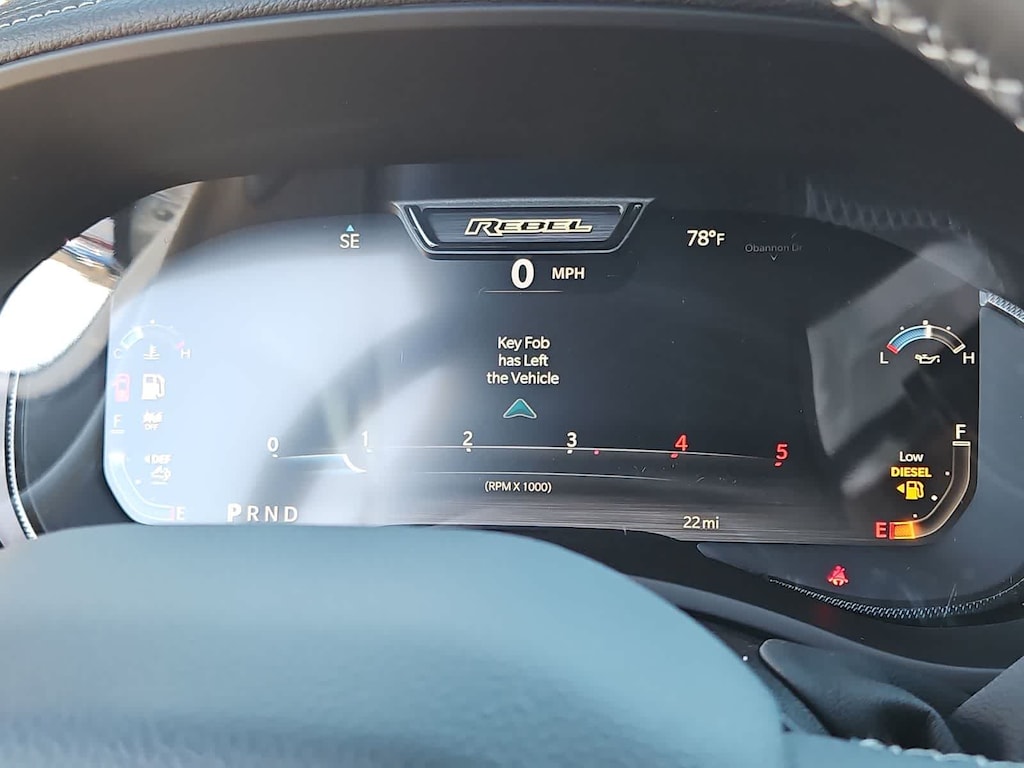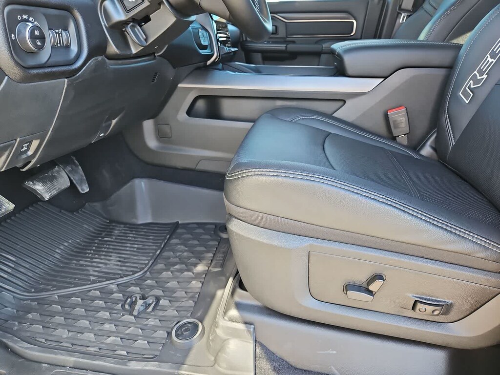 Highlighting our Rebel cabin are heated power cloth front seats embossed with distinctive tread-pattern designs. You can also enjoy a heated and wrapped steering wheel, dual-zone automatic climate control, keyless access and ignition, remote start, and power-adjustable pedals. A 12-inch driver display and an 8.4-inch touchscreen help create a high-tech environment with Off-Road Info Pages, full-color navigation, Wi-Fi compatibility, Alexa Built-in, Android Auto/Apple CarPlay, voice command, Bluetooth, and six-speaker audio.