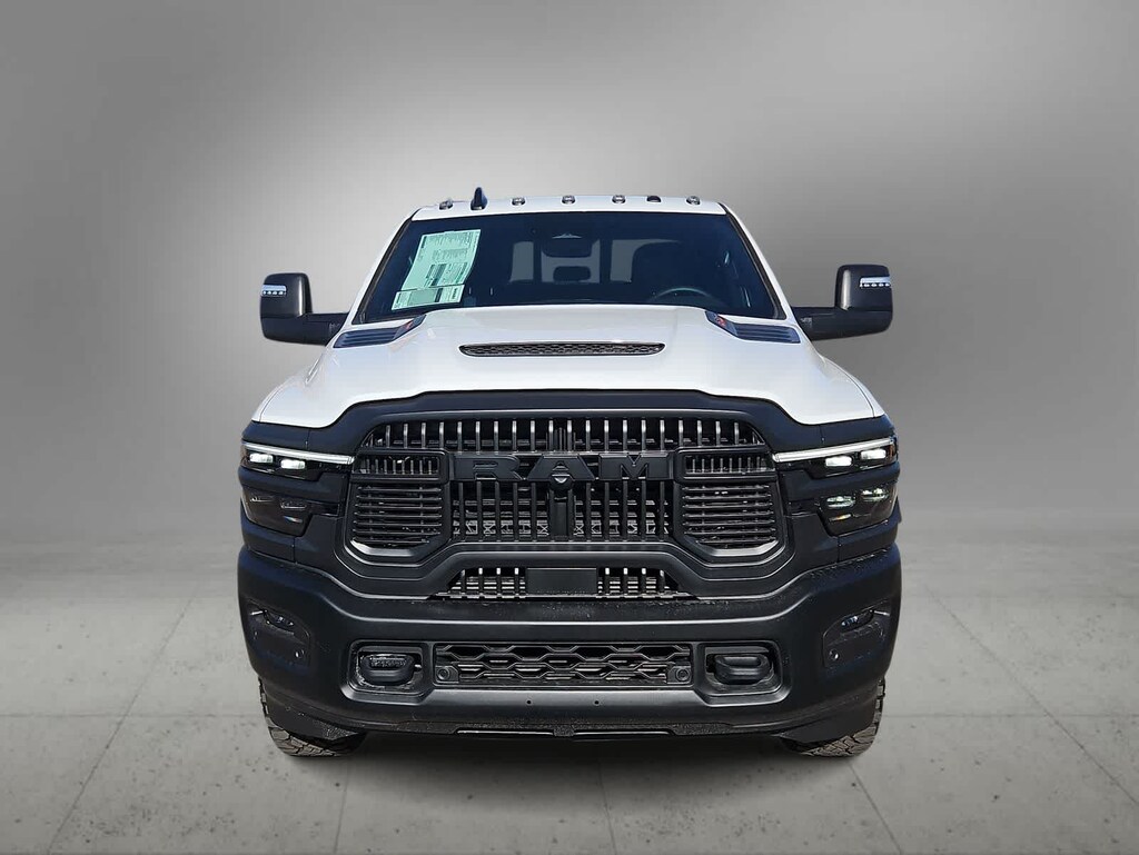 With diesel muscle and off-road tuning, our 2026 RAM 2500 Rebel Crew Cab 4X4 in Bright White delivers enhanced capability for heavy hauls. Motivated by a High-Output TurboCharged 6.7 Liter Cummins 6 Cylinder supplying 430hp and 850lb-ft of torque to an 8 Speed Automatic transmission. A rugged Rebel suspension, hill-descent control, and electronic limited-slip differential raise the bar for off-road performance in this Four Wheel Drive truck, which shows off LED lighting, fog lamps, a Mopar sport hood, powder-coated bumpers, black alloy wheels, matching fender flares, multifunction trailering mirrors, a 115V/400W outlet, and a Class V receiver hitch.