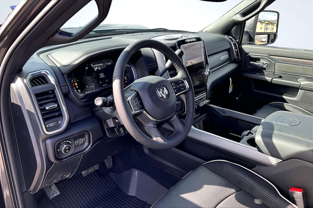 NIGHT EDITION Tires: LT285/60R20E OWL On/Off Road, Black Exterior Truck Badging, Wheels: 20 x 8.0 Black Painted Aluminum, Gloss Black Grille Billets/Accents, Body Color Grille-Surround, Sport Performance Hood, Black Exterior Mirrors, LARAMIE LEVEL 1 PLUS EQUIPMENT GROUP CTR Stop Lamp w/Cargo View Camera, Rain Sensitive Windshield Wipers, Power Adjustable Pedals w/Memory, LED Bed Lighting, Traffic Sign Recognition, Adaptive Steering System, Auto Dim Exterior Mirror, Anti-Spin Differential Rear Axle, Drowsy Driver Detection, MOPAR Deployable Bed Step, Foam Bottle Insert (Door Trim Panel), Active Lane Management System, Power Heated Fold Telescopic Mirrors w/Memory, MOPAR Spray In Bedliner, Remote Tailgate Release, Auto High Beam Headlamp Control, Exterior Mirrors w/Memory, 2nd Row In Floor Storage Bins, Auto Dim Exterior Passenger Mirror, Auto Adjust In Reverse Exterior Mirrors, TOWING TECHNOLOGY GROUP Surround View Camera System, Trailer Tire Pressure Monitoring System, Trailer Reverse Guidance, POWER SUNROOF, TRANSMISSION: 8-SPEED TORQUEFLITE HD AUTOMATIC, BLACK, LEATHER TRIMMED BUCKET SEATS Bucket Seats, Dual Wireless Charging Pad, Ventilated Front Seats, Radio/Driver Seat/Mirrors/Pedals Memory, Full Length Upgraded Floor Console. Ram Laramie with Granite Crystal Metallic Clearcoat exterior and Black interior features a Straight 6 Cylinder Engine with 405 HP at 5600 RPM*.