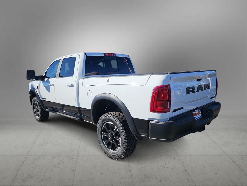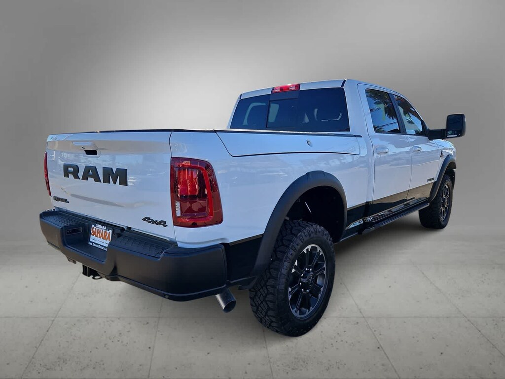 With diesel muscle and off-road tuning, our 2026 RAM 2500 Rebel Crew Cab 4X4 in Bright White delivers enhanced capability for heavy hauls. Motivated by a High-Output TurboCharged 6.7 Liter Cummins 6 Cylinder supplying 430hp and 850lb-ft of torque to an 8 Speed Automatic transmission. A rugged Rebel suspension, hill-descent control, and electronic limited-slip differential raise the bar for off-road performance in this Four Wheel Drive truck, which shows off LED lighting, fog lamps, a Mopar sport hood, powder-coated bumpers, black alloy wheels, matching fender flares, multifunction trailering mirrors, a 115V/400W outlet, and a Class V receiver hitch.