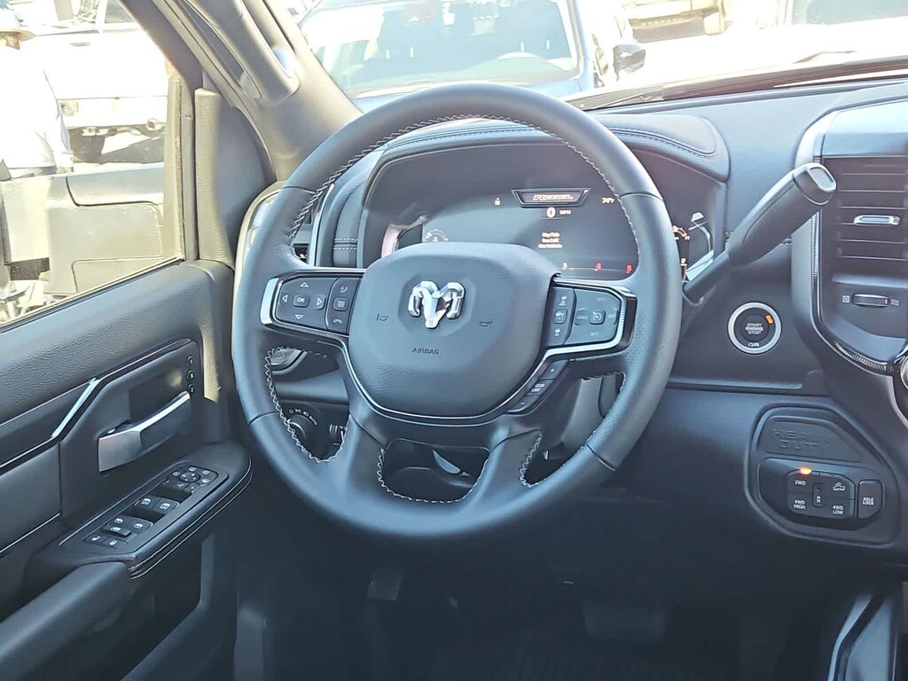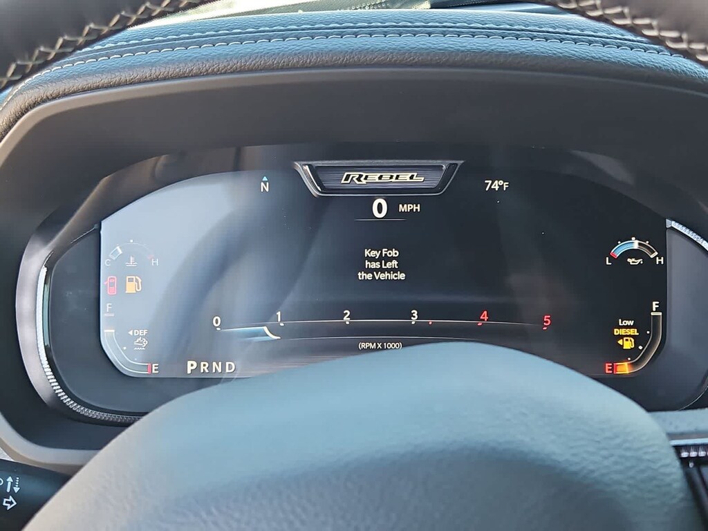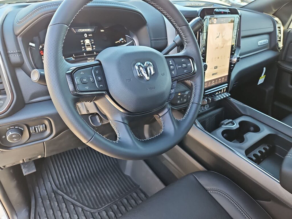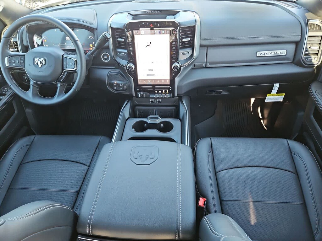 Highlighting our Rebel cabin are heated power cloth front seats embossed with distinctive tread-pattern designs. You can also enjoy a heated and wrapped steering wheel, dual-zone automatic climate control, keyless access and ignition, remote start, and power-adjustable pedals. A 12-inch driver display and an 8.4-inch touchscreen help create a high-tech environment with Off-Road Info Pages, full-color navigation, Wi-Fi compatibility, Alexa Built-in, Android Auto/Apple CarPlay, voice command, Bluetooth, and six-speaker audio.